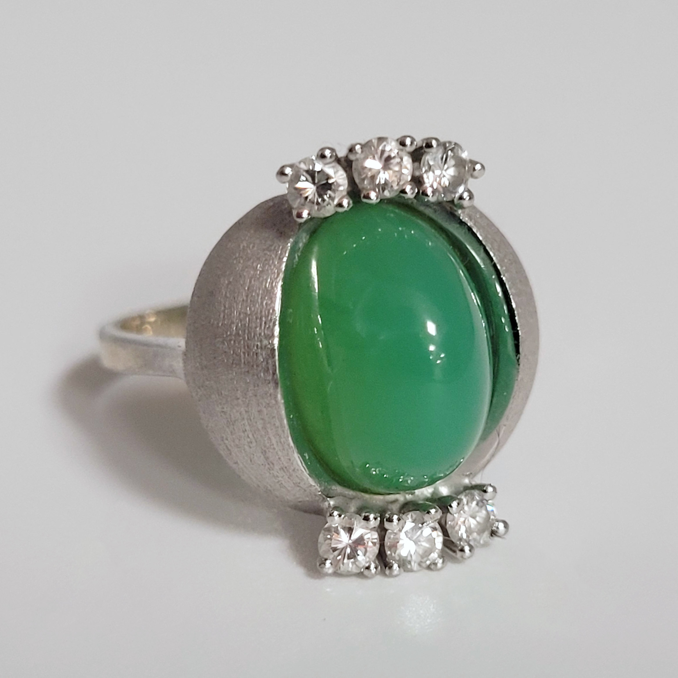 Damenring585er Weißgold, Chrysopas, 6 Brillanten (zusammen 0,42ct), Ringgröße 55, Gewicht 7g