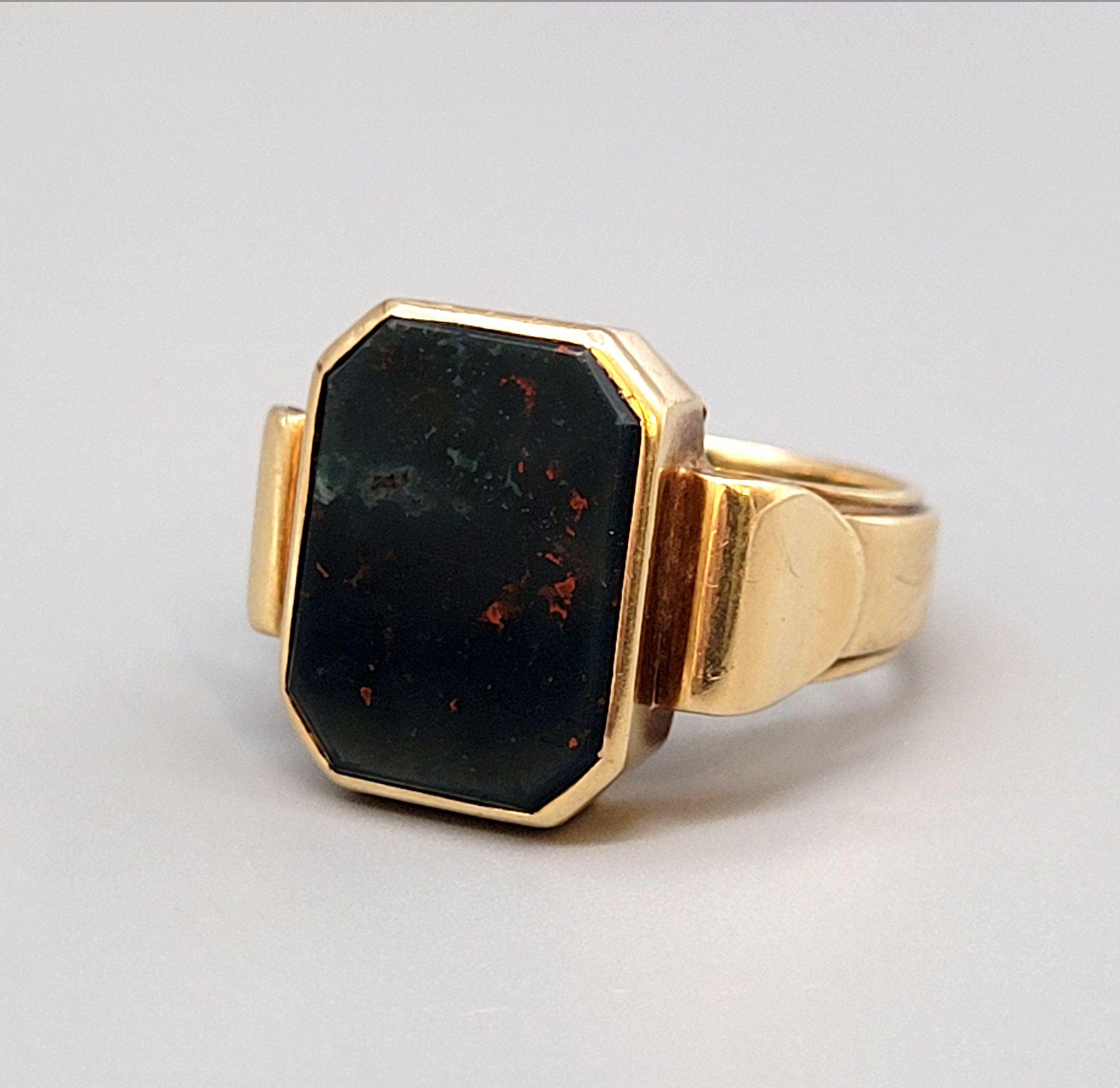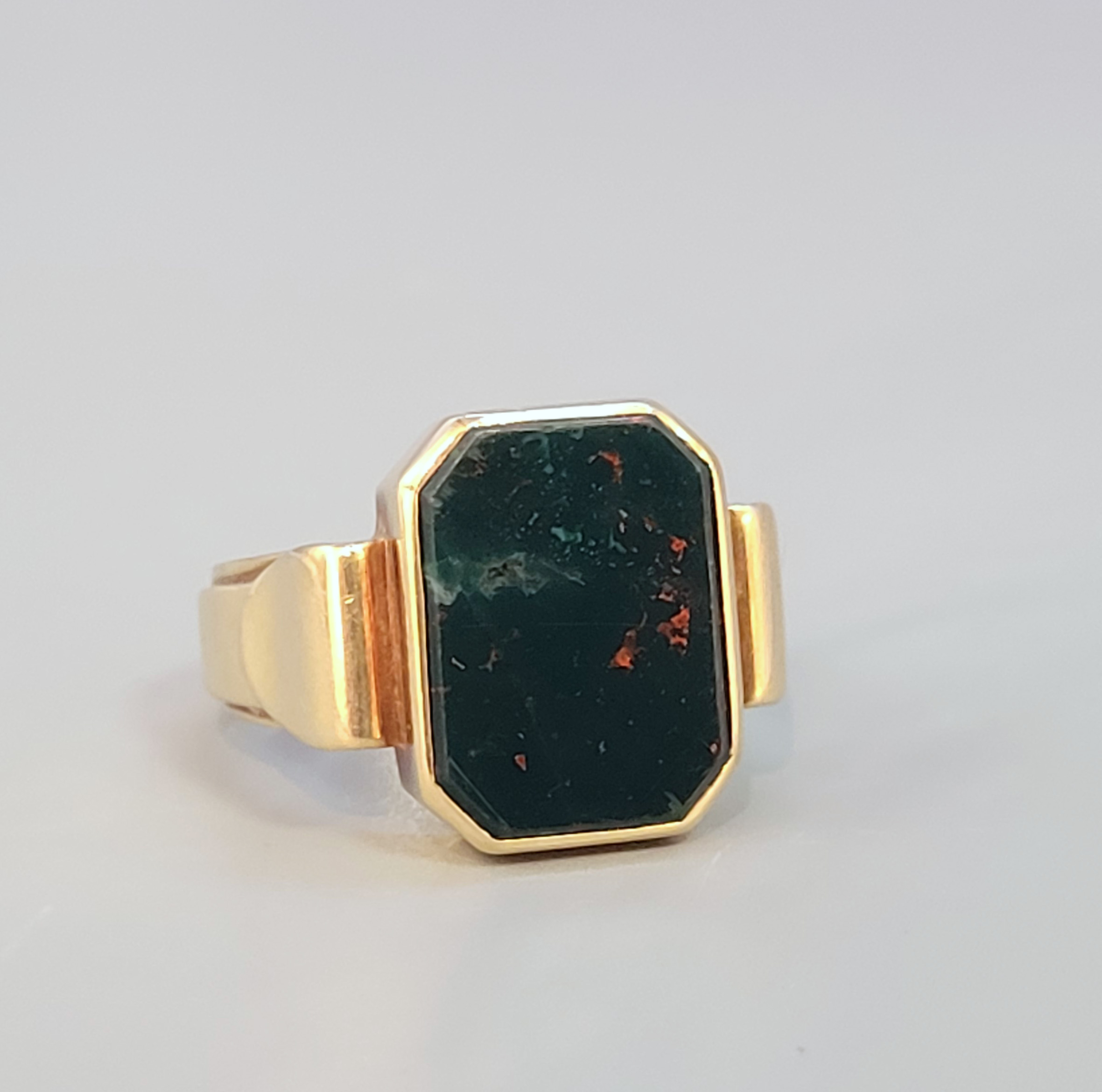 Herrenring 585er Gelbgold, achteckiger Heliotrop, Ringgröße 63,5, Gewicht ca. 13g