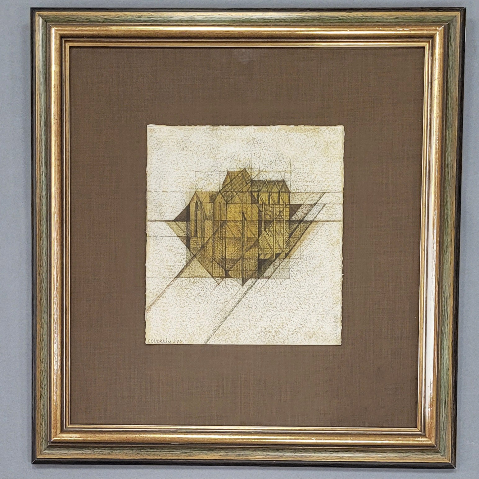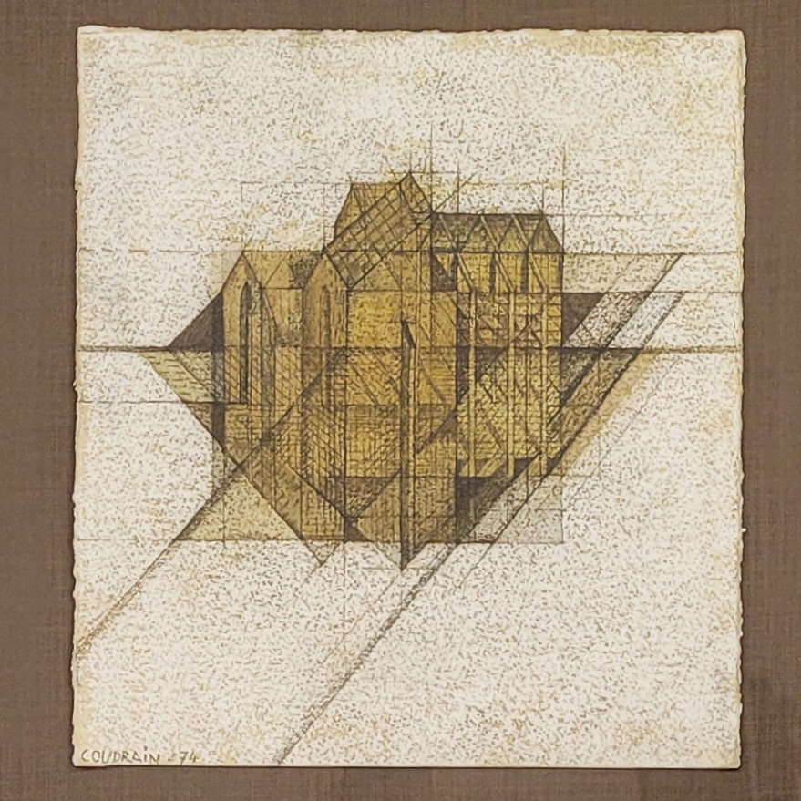 COUDRAIN, Brigitte (*1934): ArchitekturstudieMischtechnik auf Papier, signiert und datiert (19)74 unten links, 30,5 x 28 cm, gerahmt unter Glas