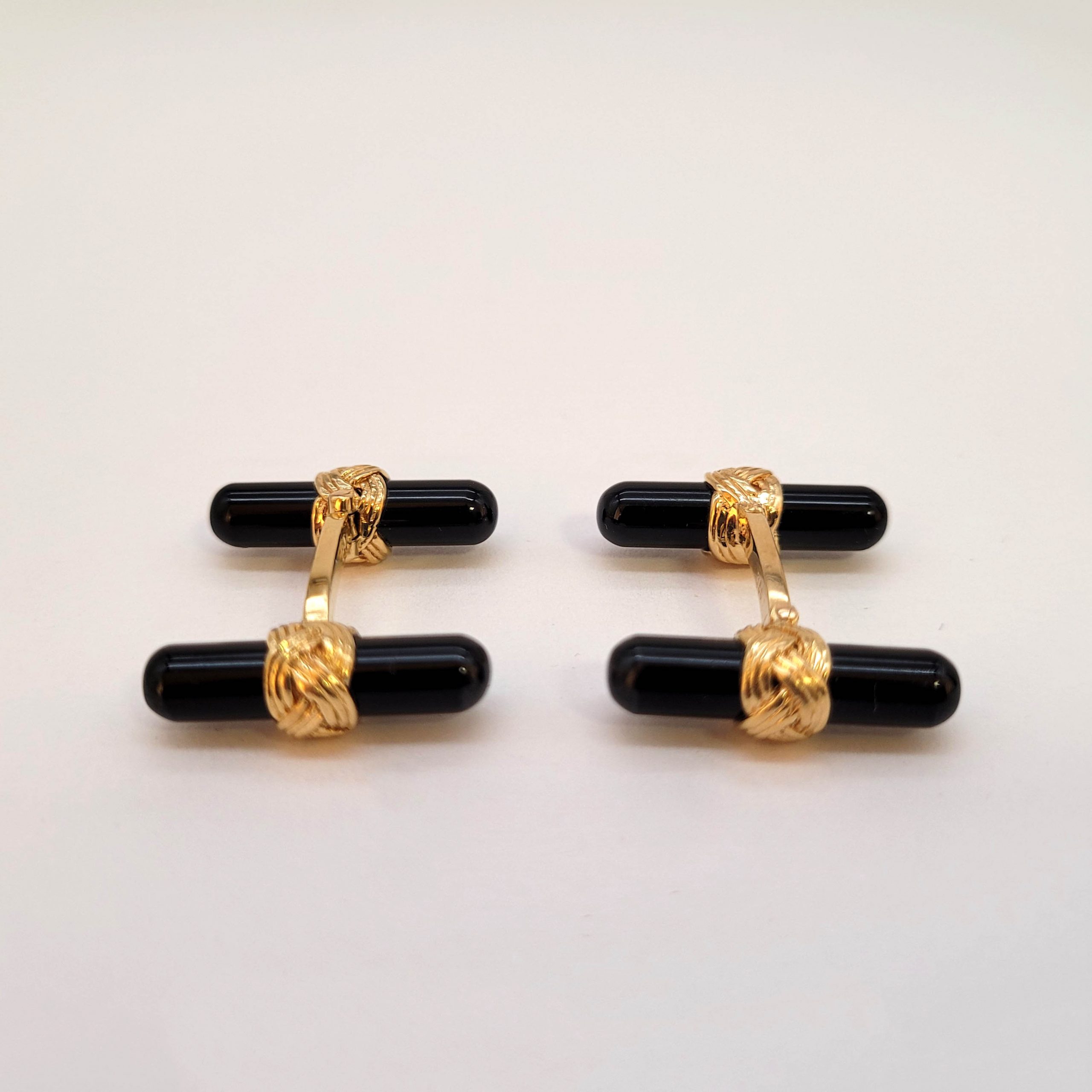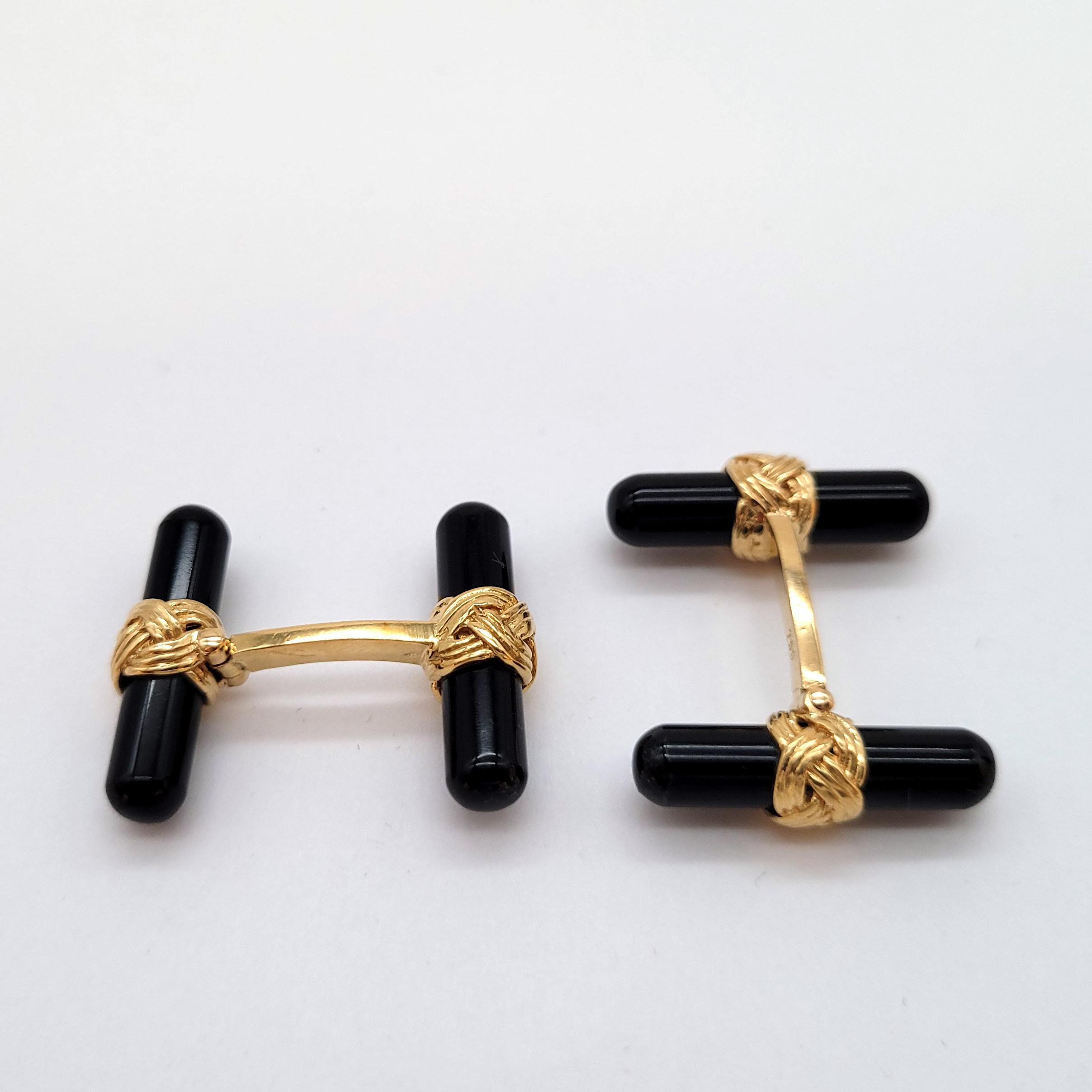 Paar Manschettenknöpfe750er Gelbgold, Onyx, 2,5 x 2 cm, Gewicht ca. 11,5g