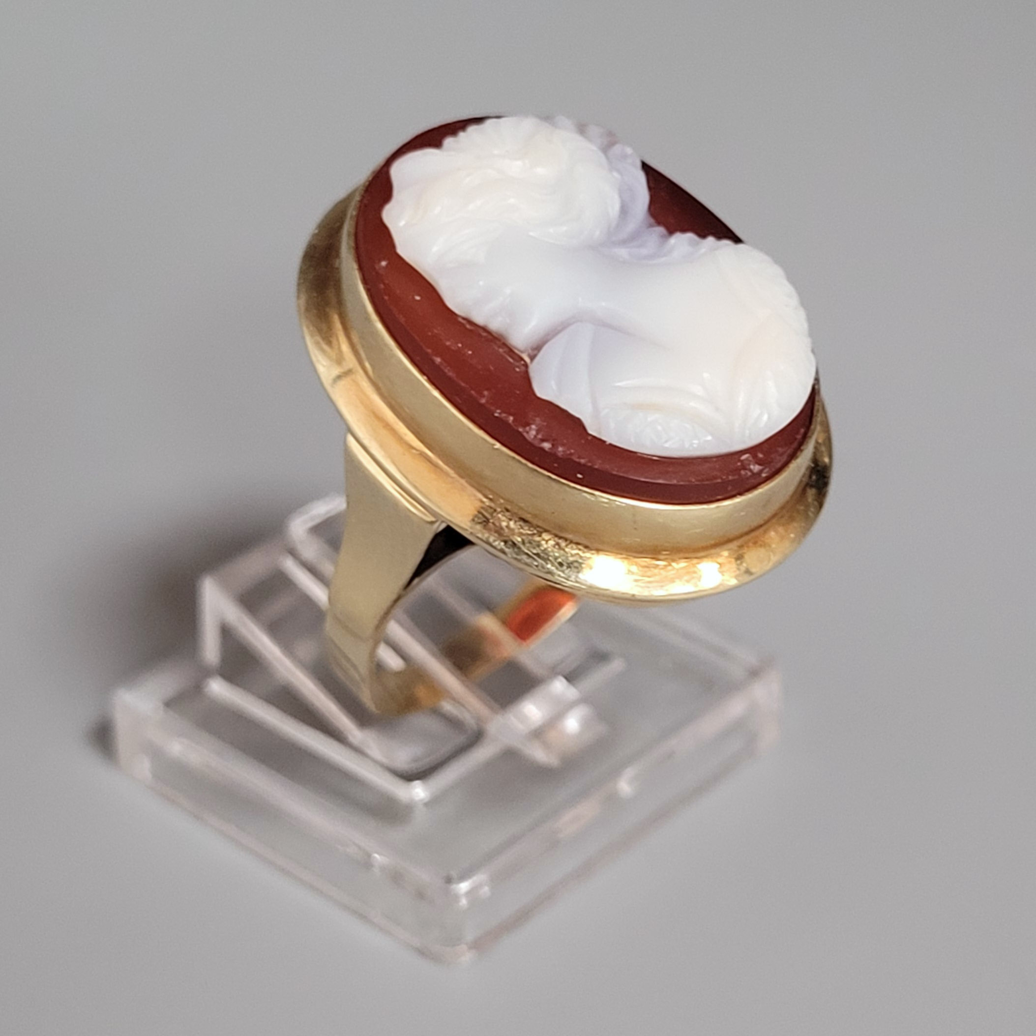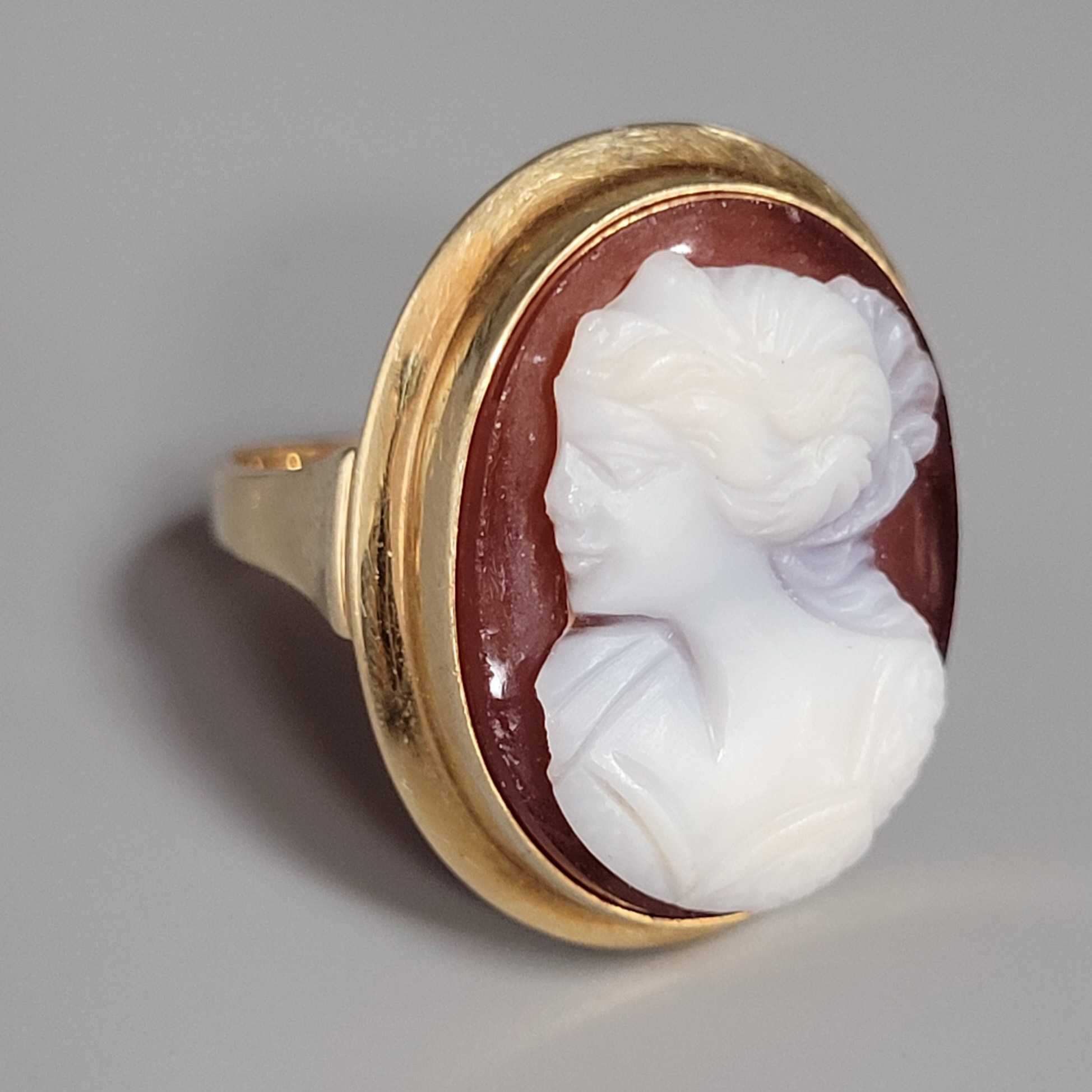750er Gelbgold, Kamee mit Brustbild einer Frau, Ringgröße ca. 54, Gewicht ca. 6,5g