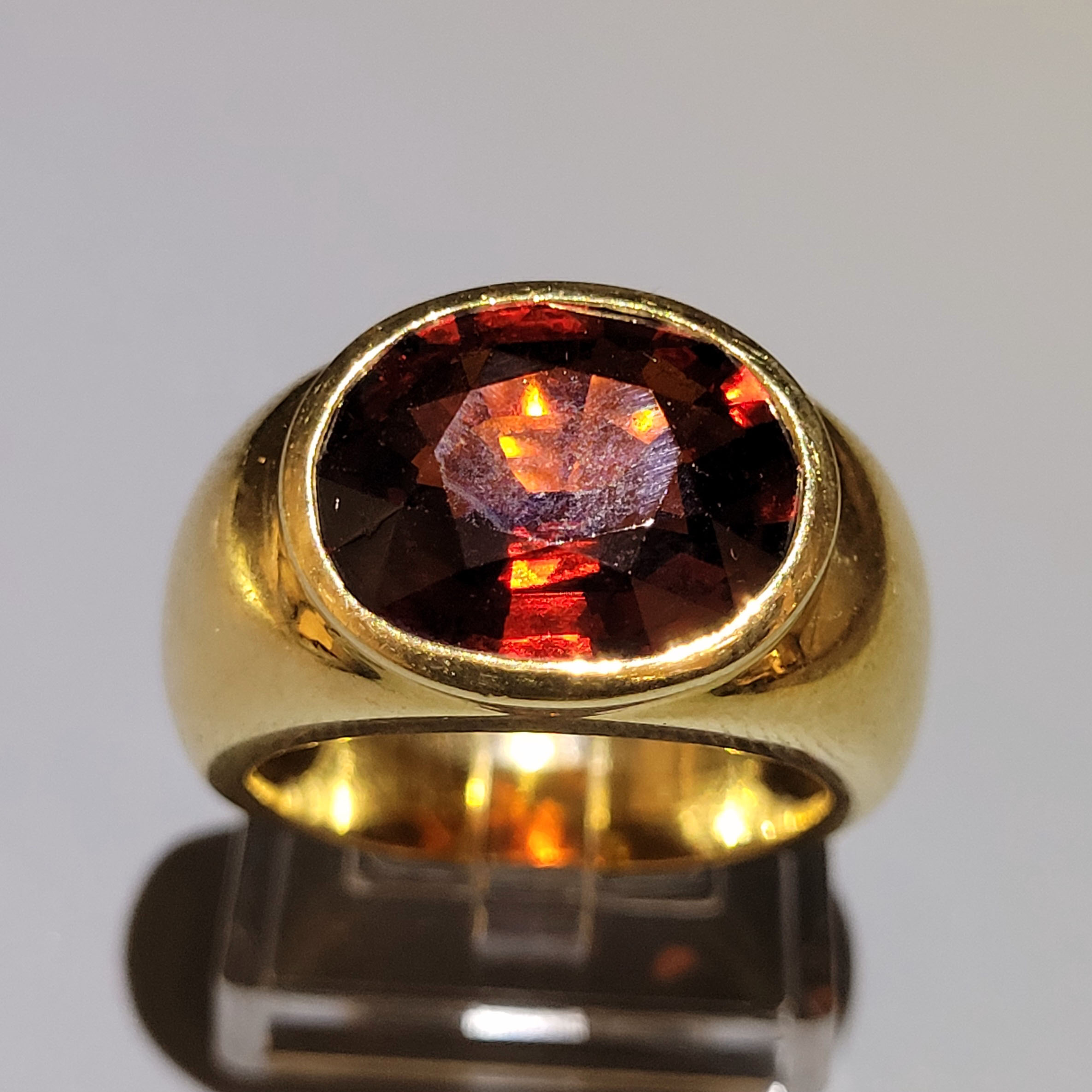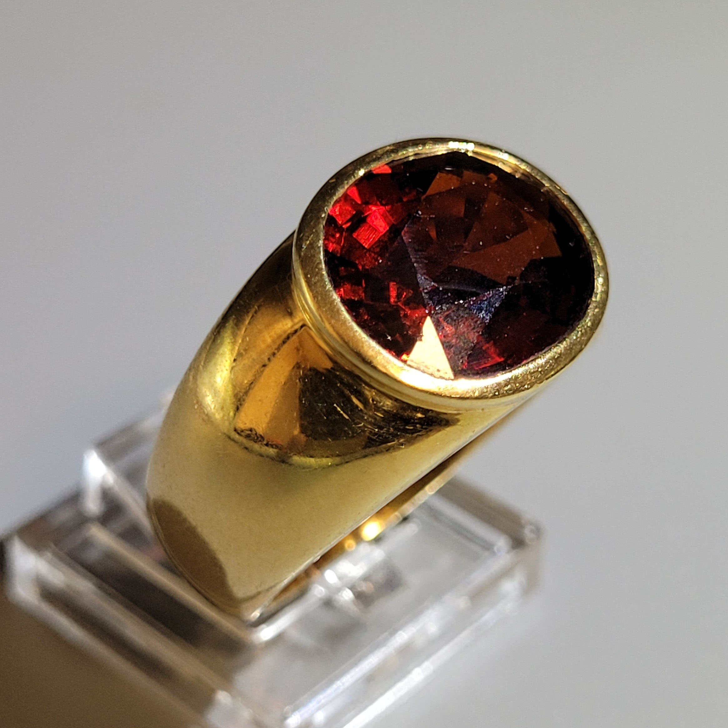 750er Gelbgold, Spessartin (beschädigt), Ringgröße ca. 58, Gewicht ca. 14g