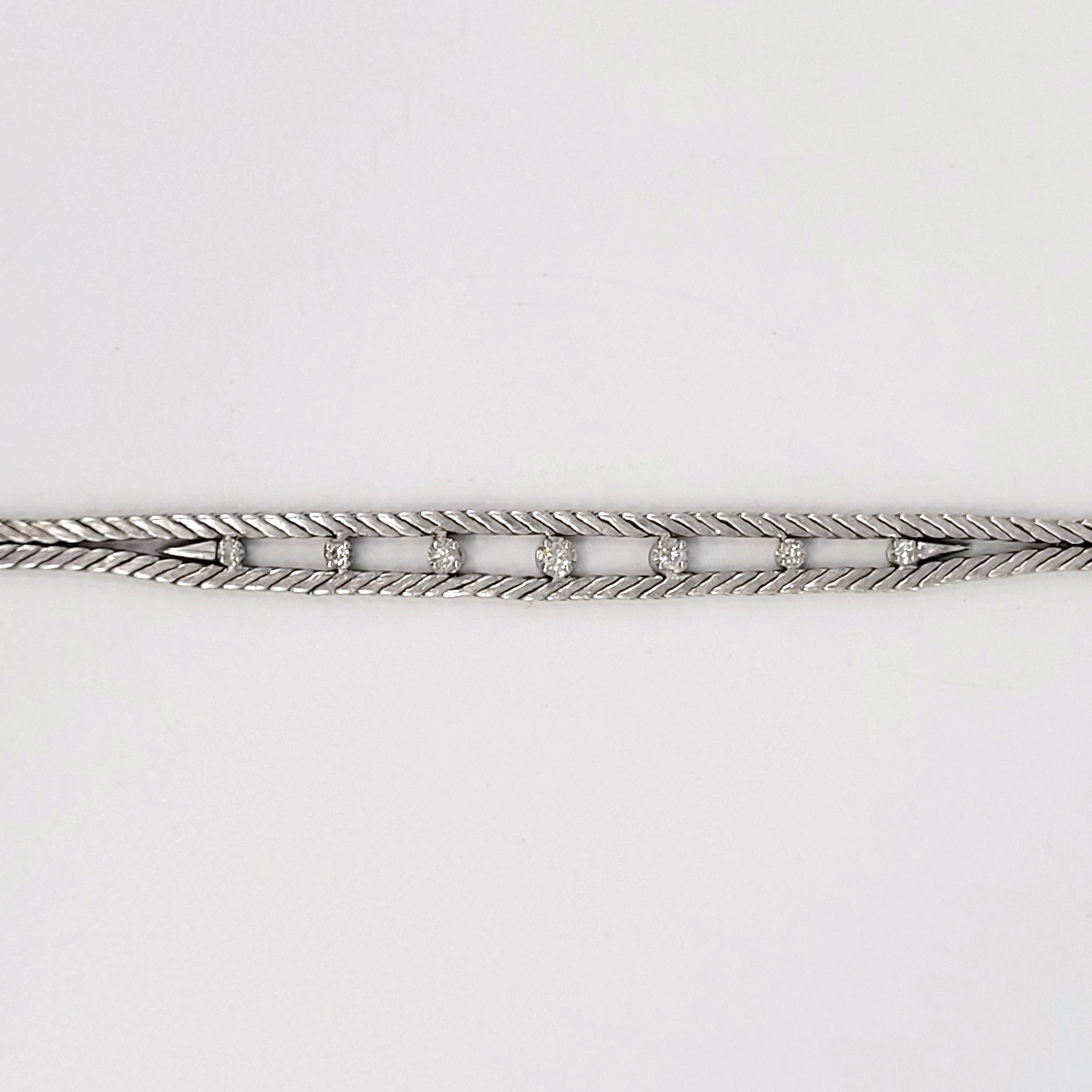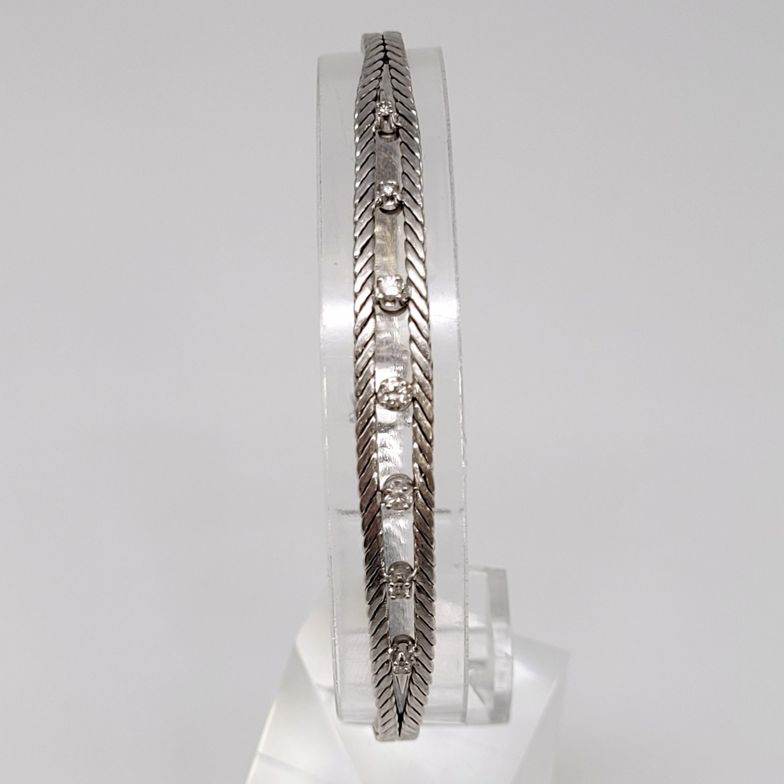 585er Weißgold, 7 Brillanten (zusammen ca. 0,30ct), Kastenschloss mit Sicherheitsbügel, Länge 19 cm, Gewicht 13,5g