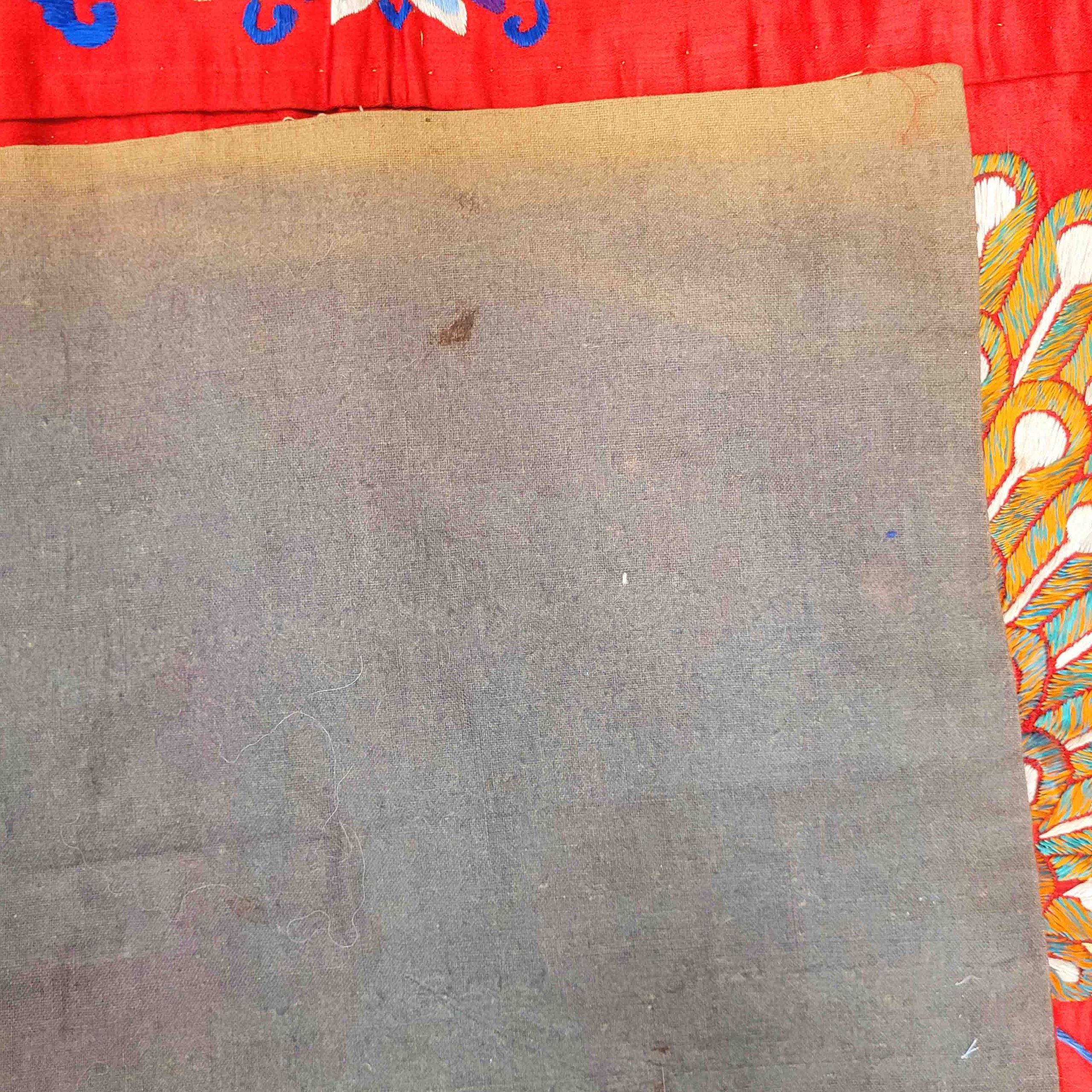 BehangSeide, Metallbroschierung, figürliche Stickerei mit Pfauenpaar, China, um 1920, 90 x 92 cm
