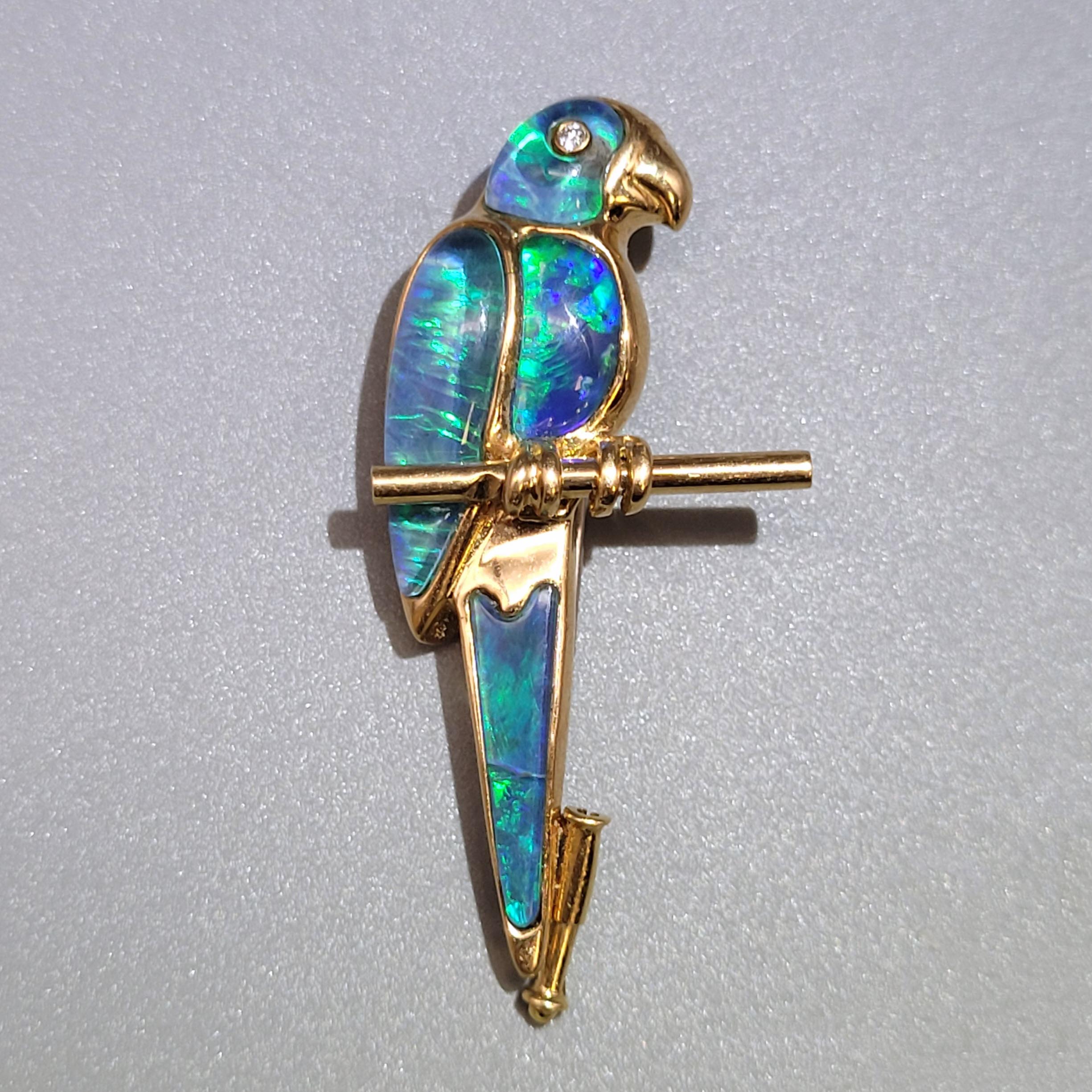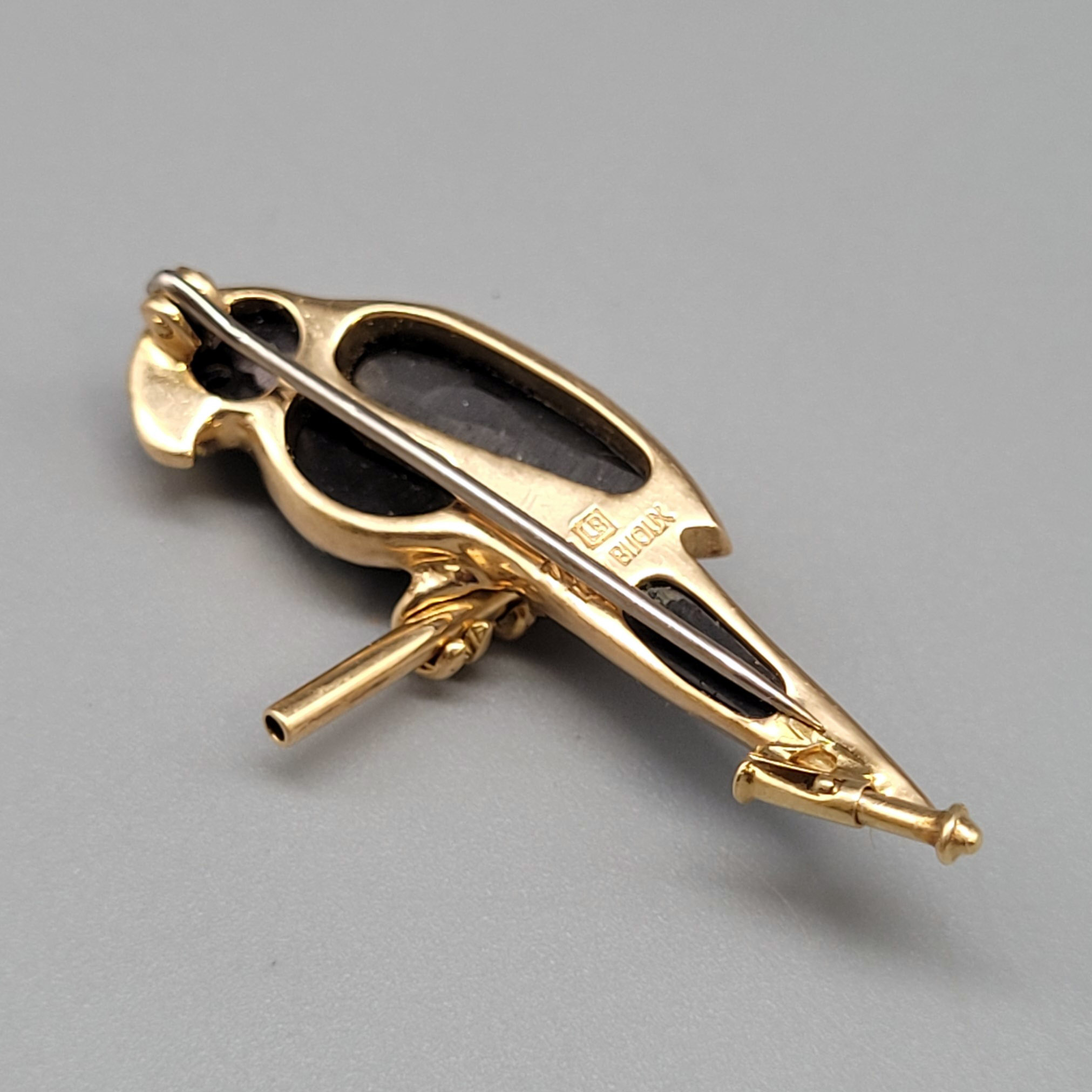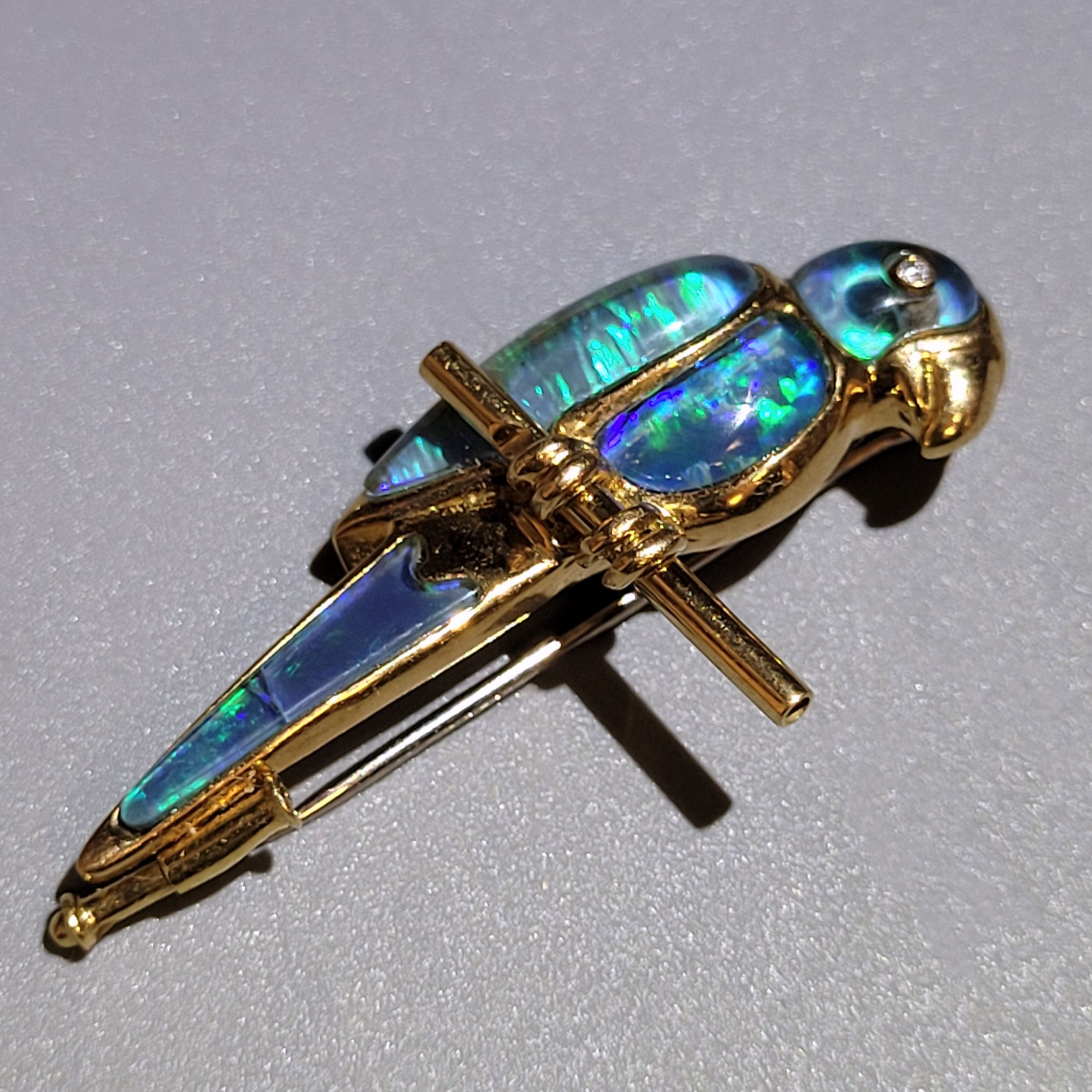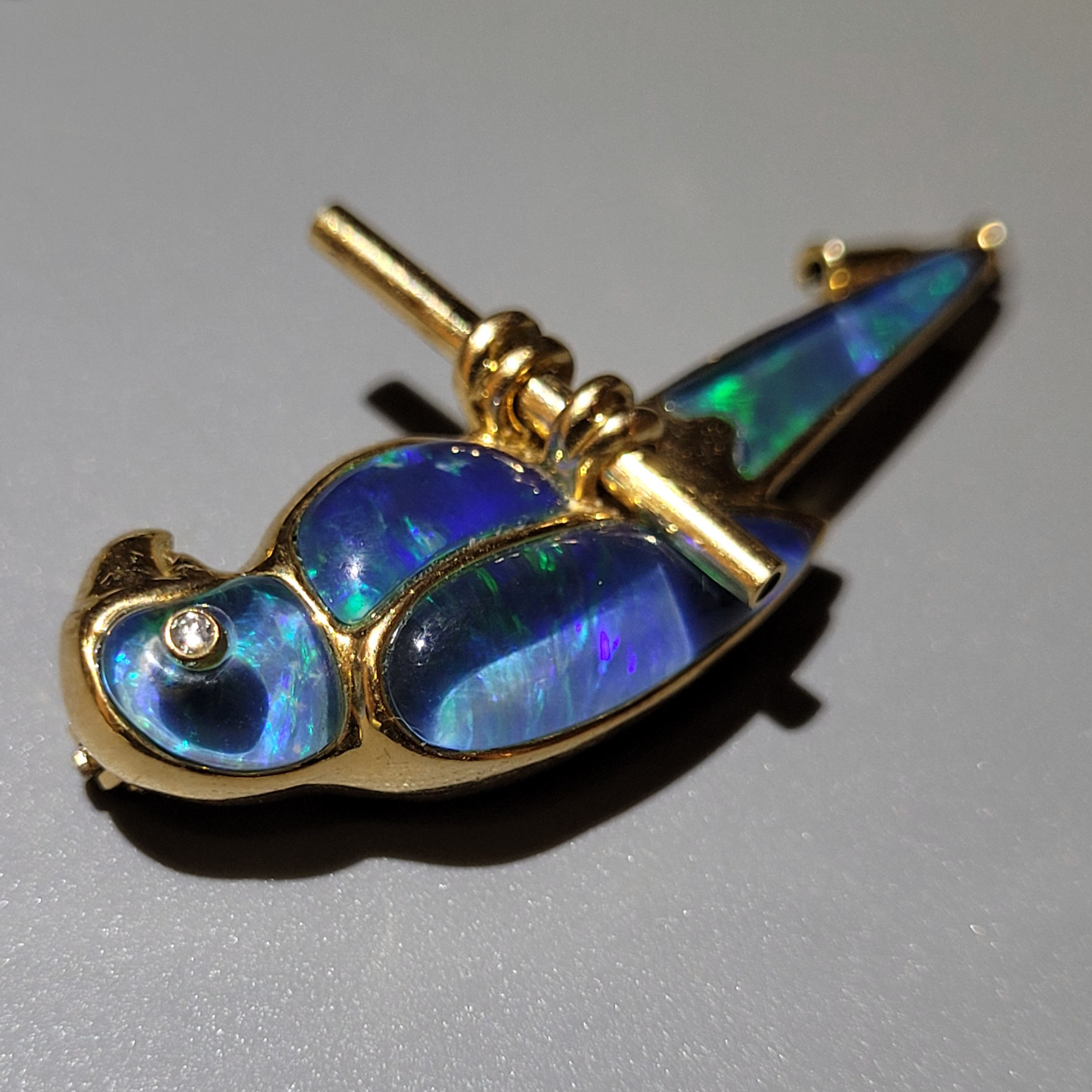 750er Gelbgold, Opale, Brillant, Lüth-Bijoux, Länge 4 cm, Gewicht ca. 8g (Nadelverschluss beschädigt)