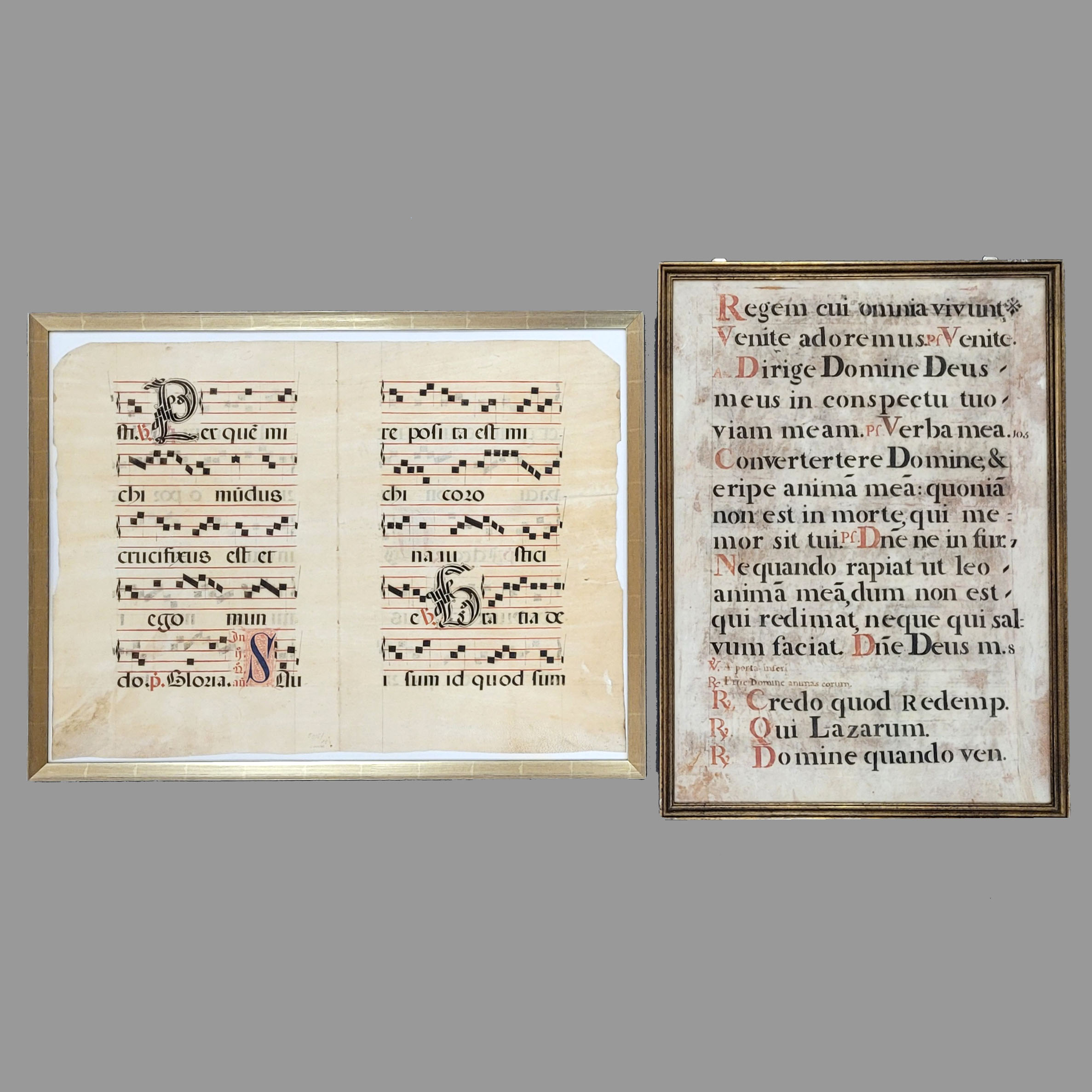Zwei AntiphonarblätterEinzelblatt, Doppelblatt, Handschrift in schwarzer und roter Tinte auf Pergament, Deutsch 16. Jahrhundert, bis zu 71 x 51 cm, gerahmt unter Glas