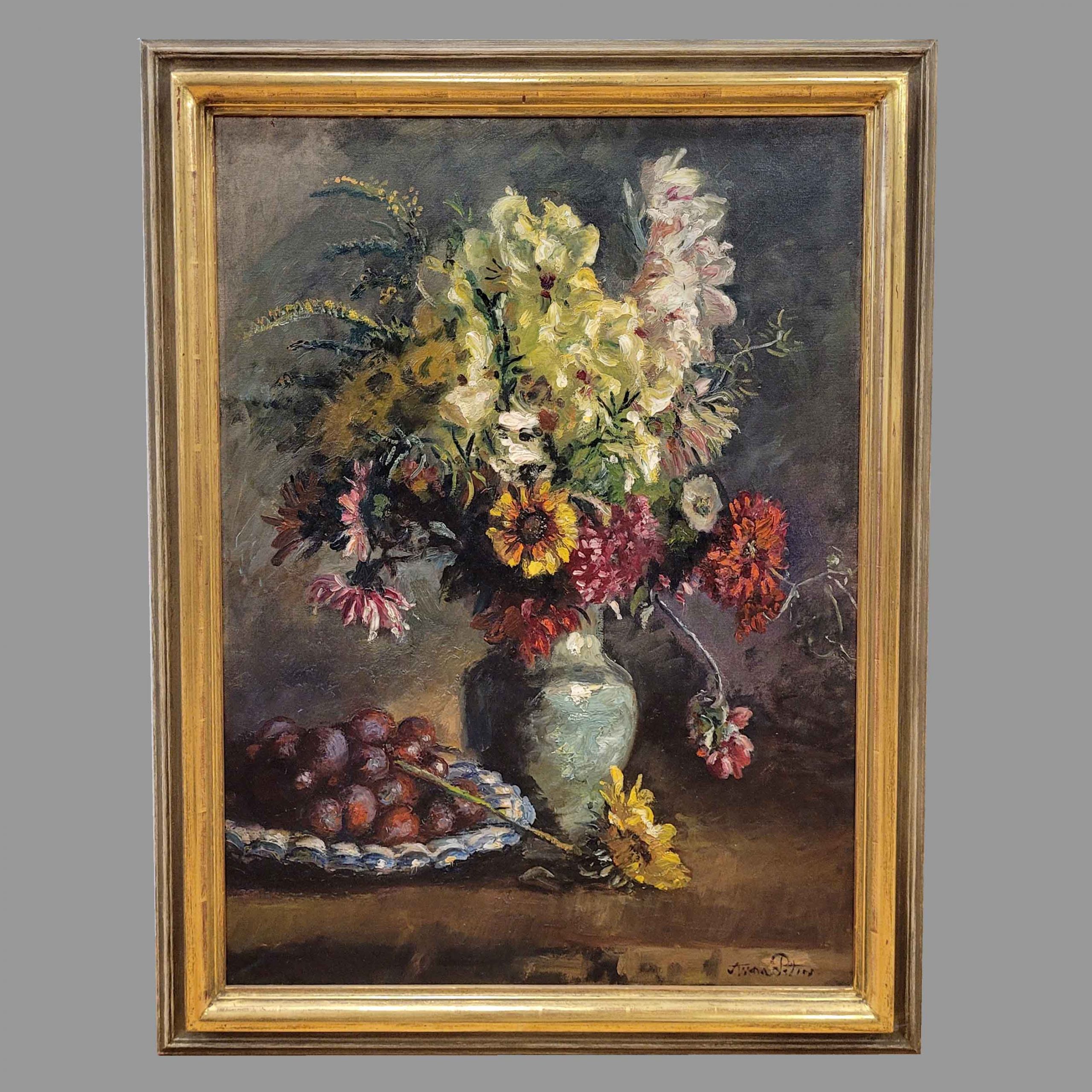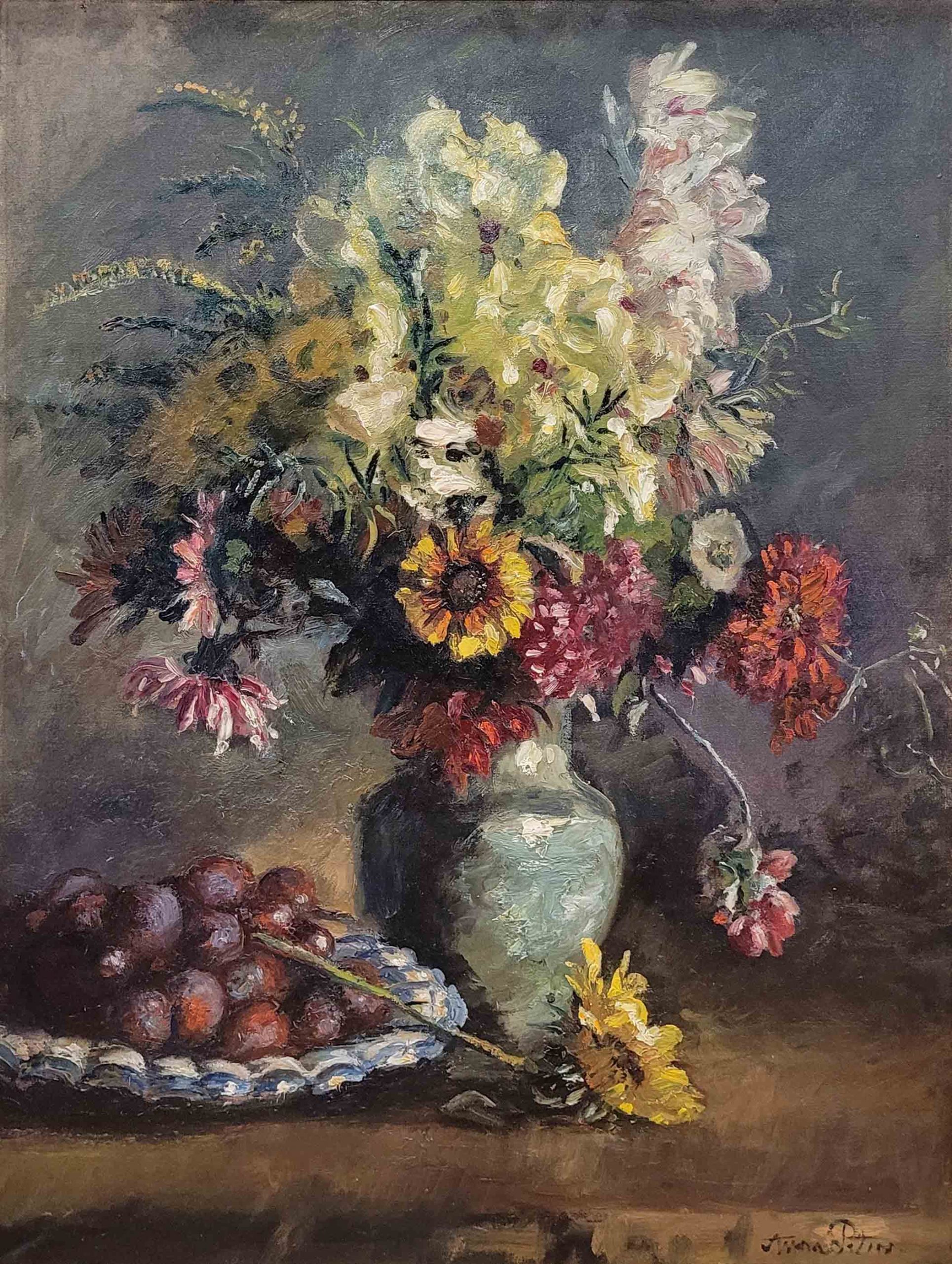 PETERS, Anna (1843-1926): Blumenstilleben mit FruchtschaleÖl auf Leinwand, signiert unten rechts, 73 x 55 cm, Rahmen