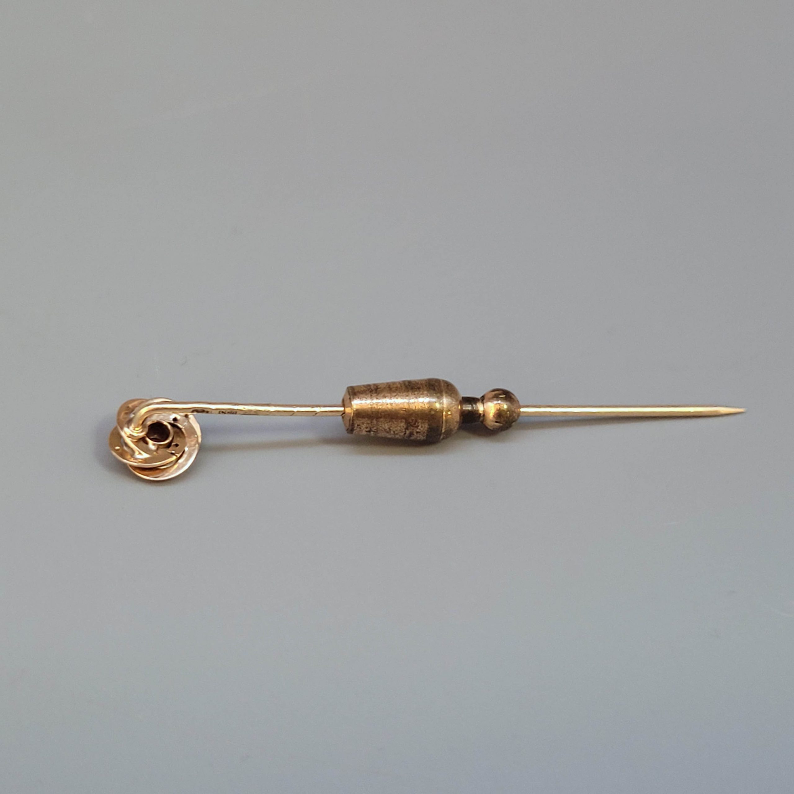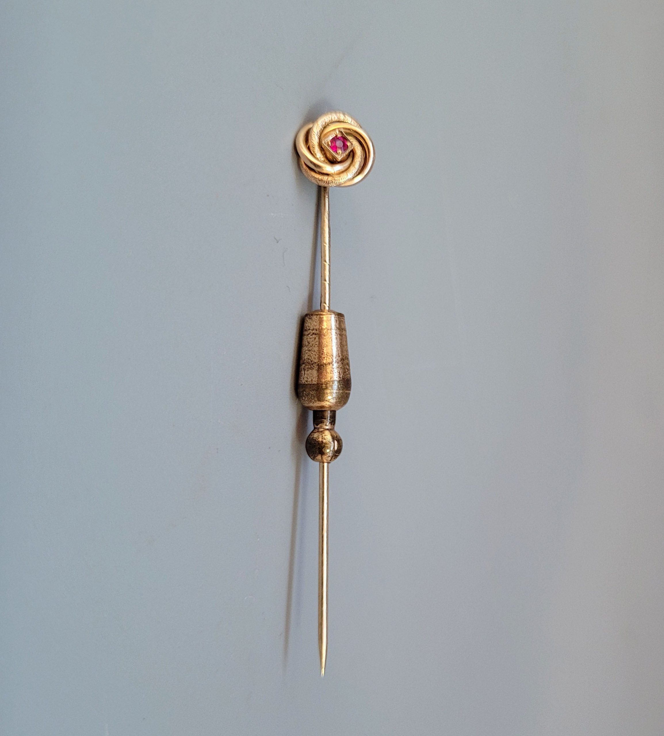 585er Roségold, wohl kleiner Rubin, Länge 5,7 cm, Gewicht (ohne Stopper) ca. 1g