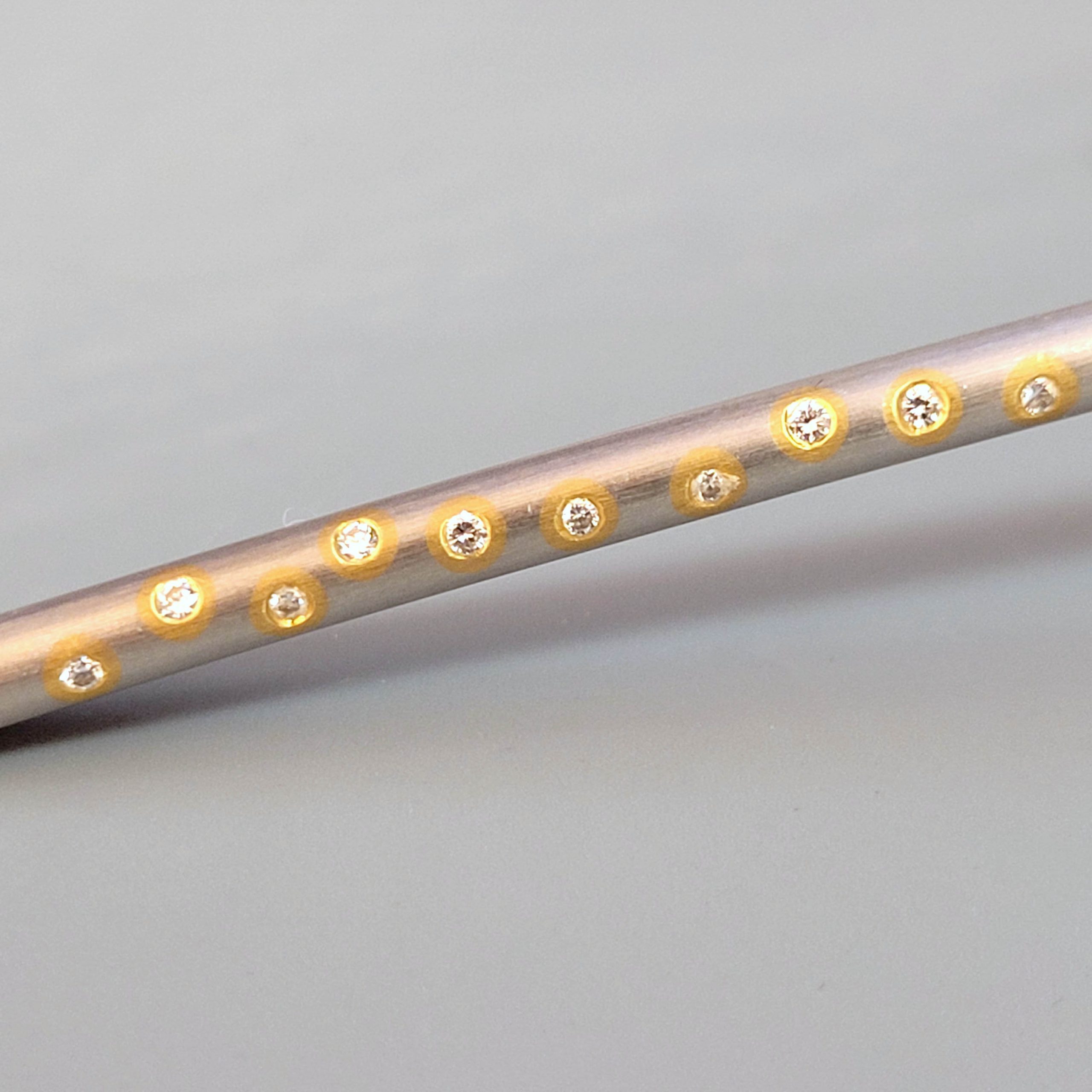 750er Gelbgold, 950er Platinüberzug, Brillantbesatz, bezeichnet „HD“ (Henrich & Denzel), Länge 10 cm, Gewicht ca. 10g
