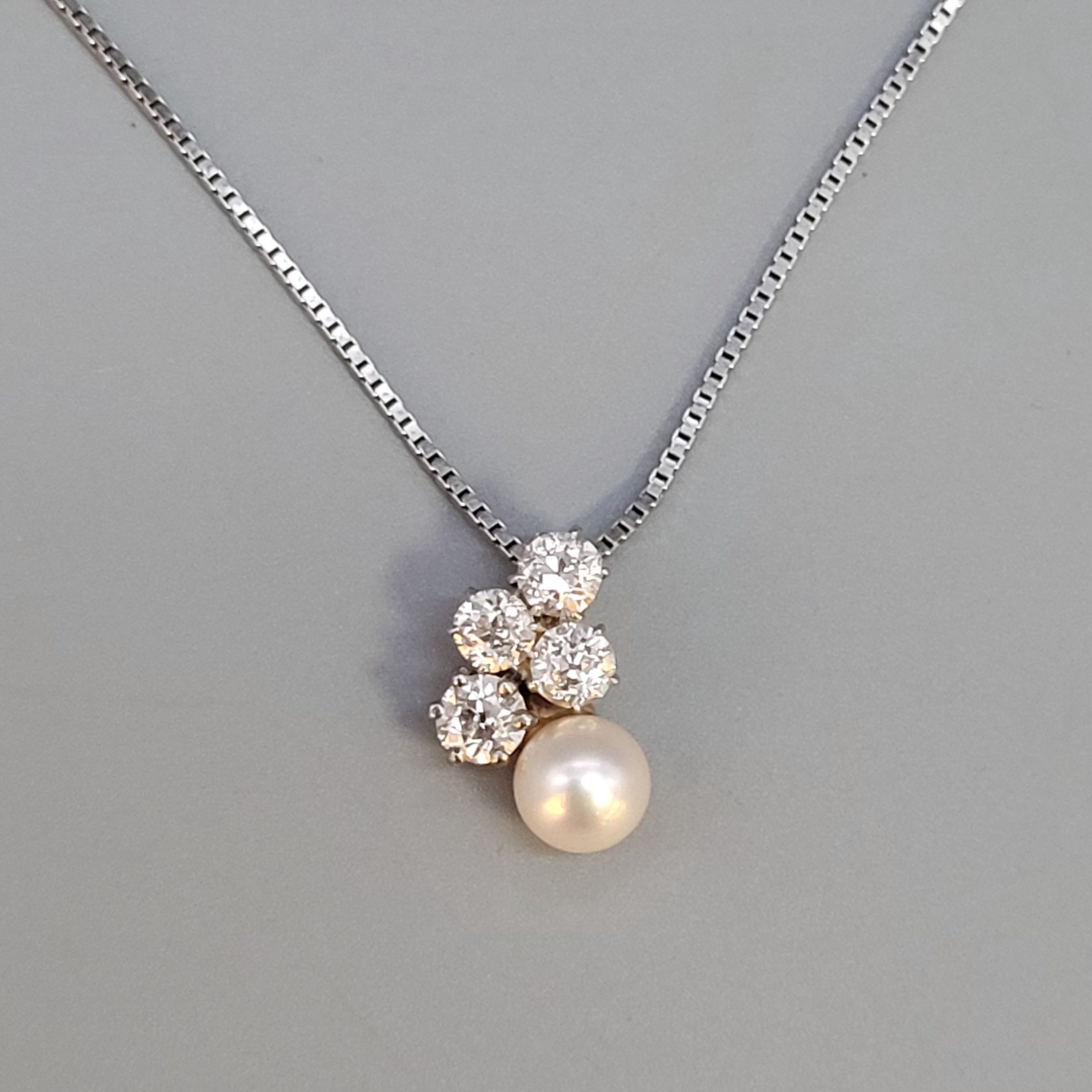 Kette mit Anhänger 585er Gelb- und Weißgold, Kette mit Hakenverschluss, Anhänger Perle und 4 Altschliffdiamanten (ca. 0,50 ct), Anhänger 1,5 x 1 cm, Kette 21 (42) cm, Gewicht ca. 5g