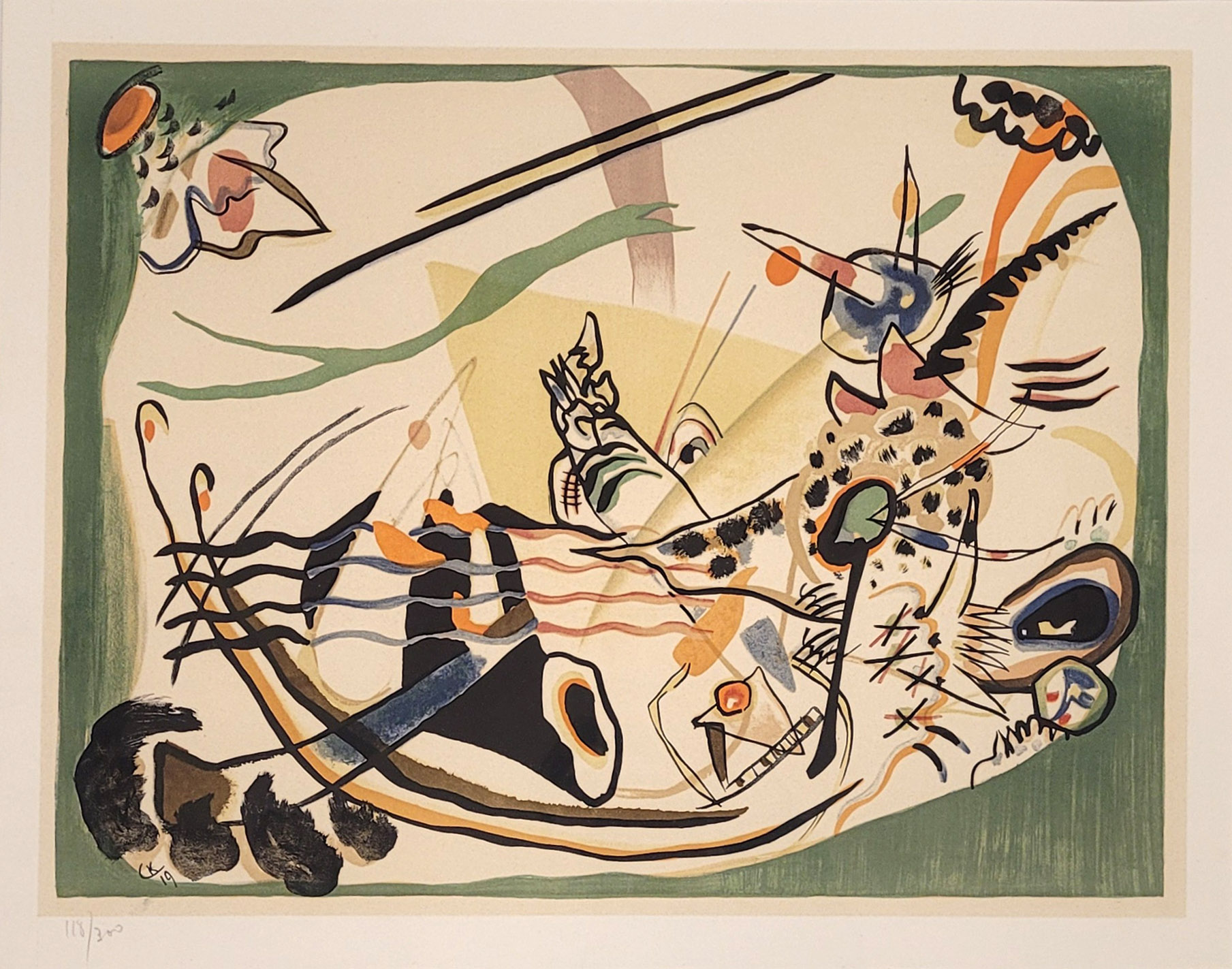 KANDINSKY, Wassily (1866-1944): Grüner RandFarblithographie, 1919, 1957, Édition Maeght, nummeriert 113/300 unten links, 39,5 x 50,5 cm, gerahmt unter Glas und Passepartout