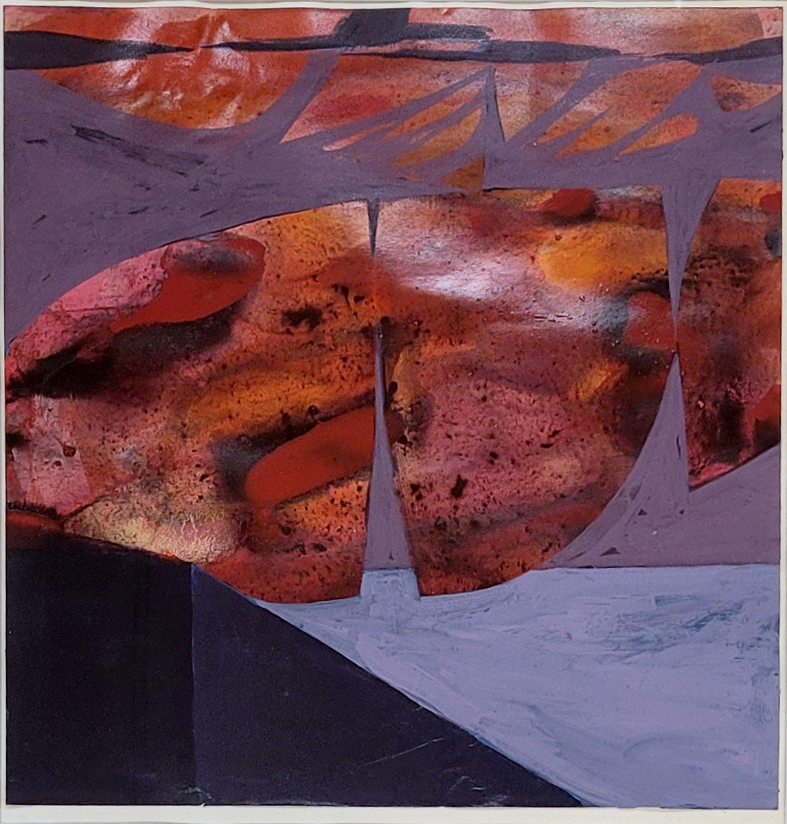 KAYSER, Tilman (1941-2014): Ohne TitelMischtechnik auf Papier, 1972, verso Zettel Galerie Marbach, Bern, 54 x 51 cm, gerahmt unter Glas und Passepartout