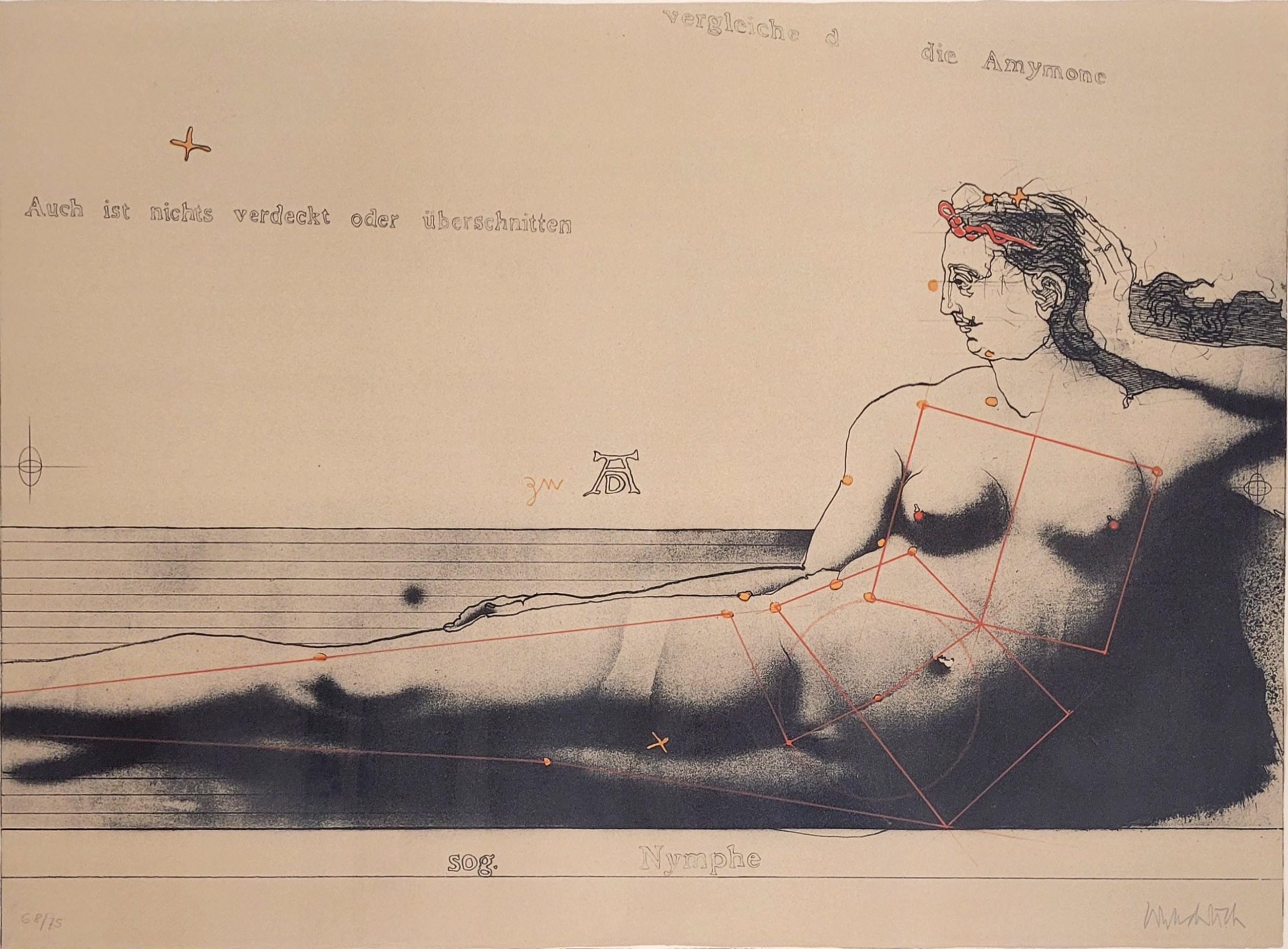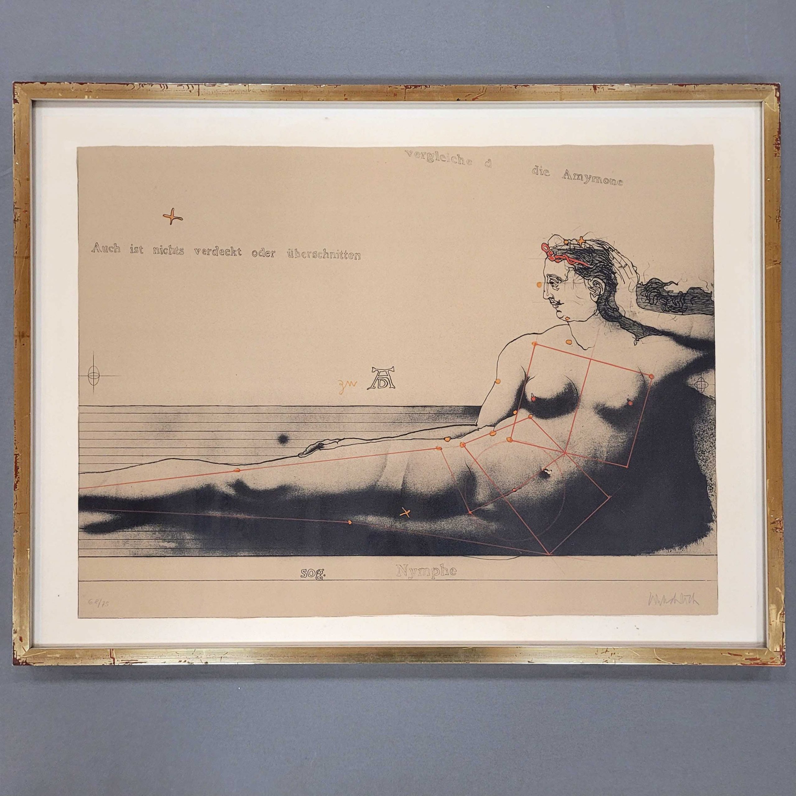 WUNDERLICH, Paul (1927-2010): Eine Nymphe aus WienFarblithographie, 1970, signiert unten rechts, nummeriert 68/75 unten links, 62,5 x 85,5 cm, gerahmt unter Glas**) Bei einem Zuschlag über 400€ werden 2% für VG Bild gemäß §26 UrHG erhoben