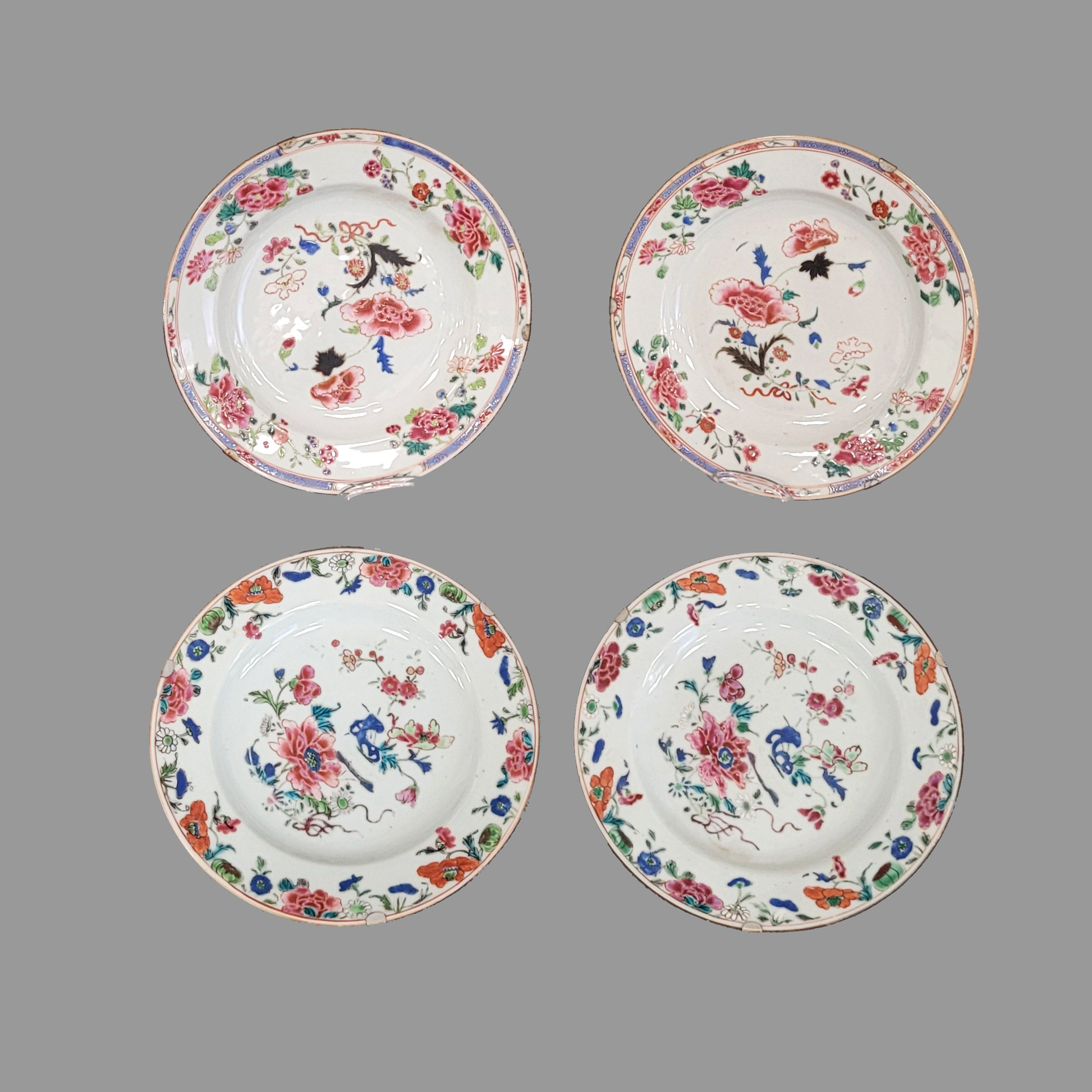 Zwei Paar TellerPorzellan, bemalt, partiell vergoldet, China 18. Jahrhundert, Durchmesser ca. 22,5 cm (alle Teller kleine Randchips, ein Teller mit Haarriss)