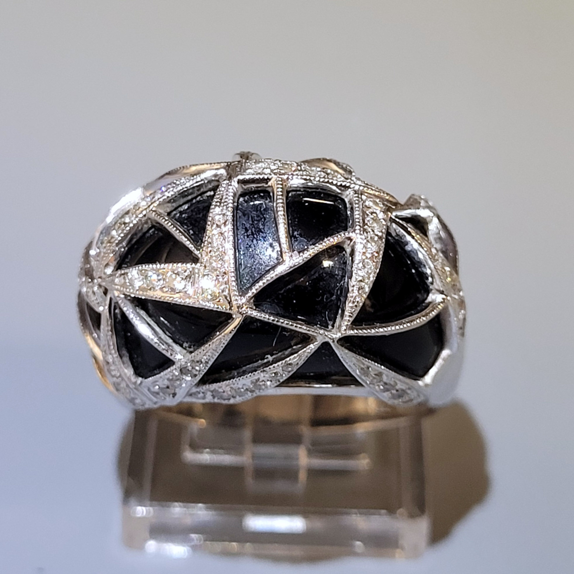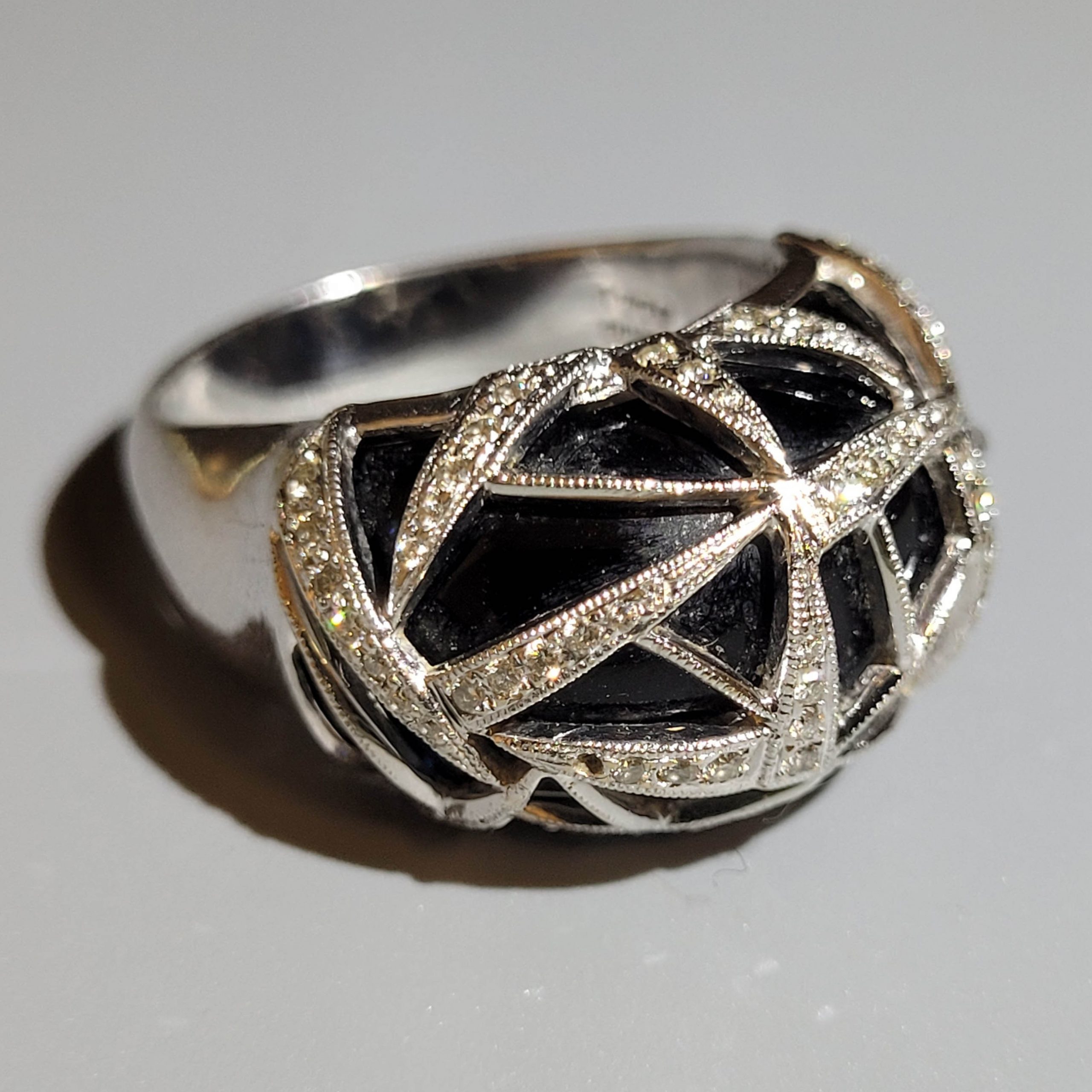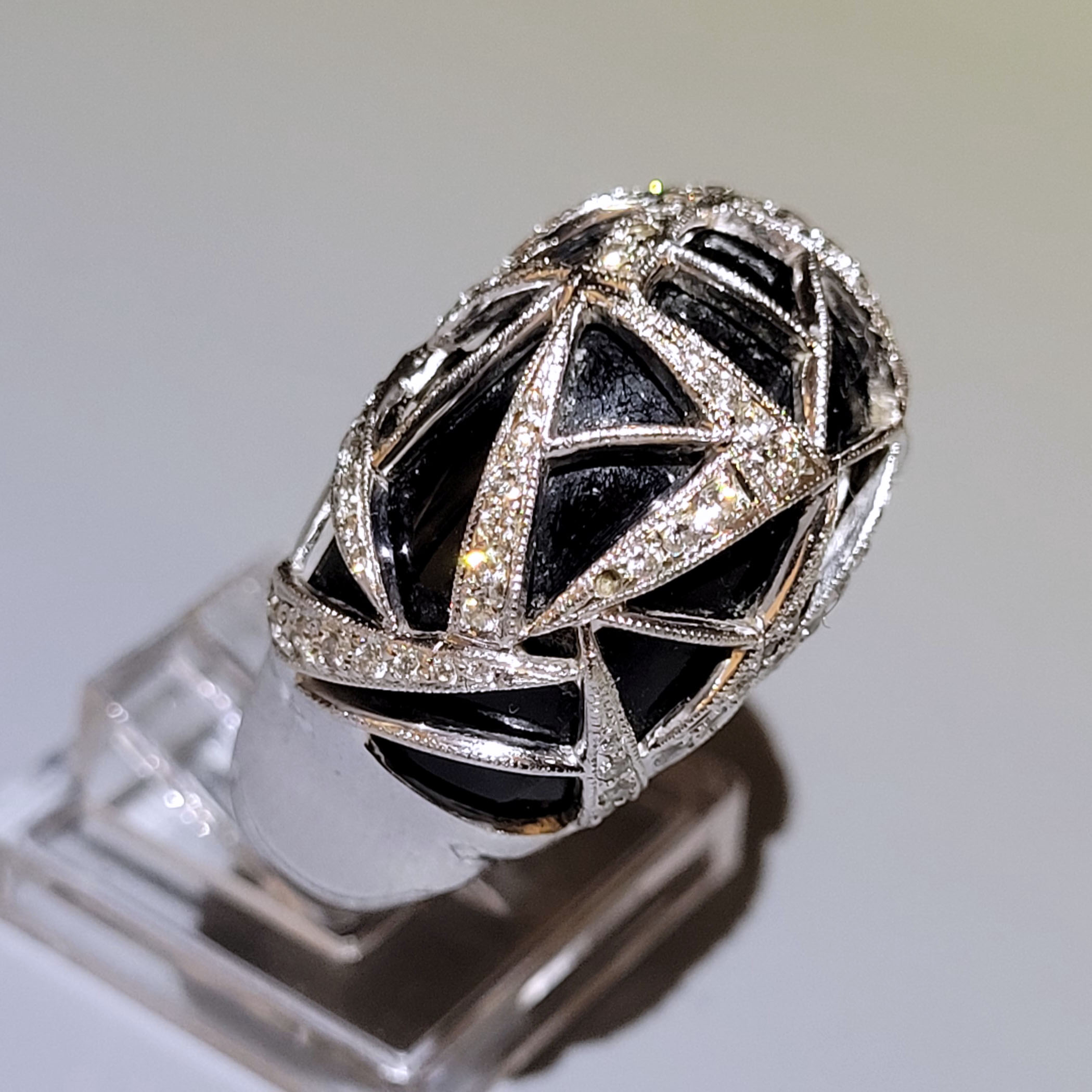 750er Weißgold, Onyx, Brillantbesatz (ein Stein fehlt), Ringgröße 59,5, Gewicht ca. 15g