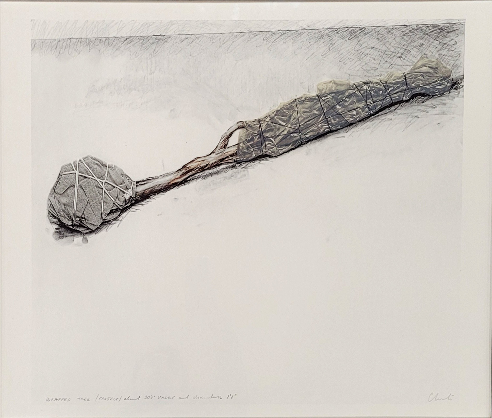 CHRISTO (1935-2020): Wrapped Tree ProjectFarbserigraphie, 1970, signiert unten rechts, 61 x 81 cm, gerahmt unter Glas**) Bei einem Zuschlag über 400€ werden 2% für VG Bild gemäß §26 UrHG erhoben