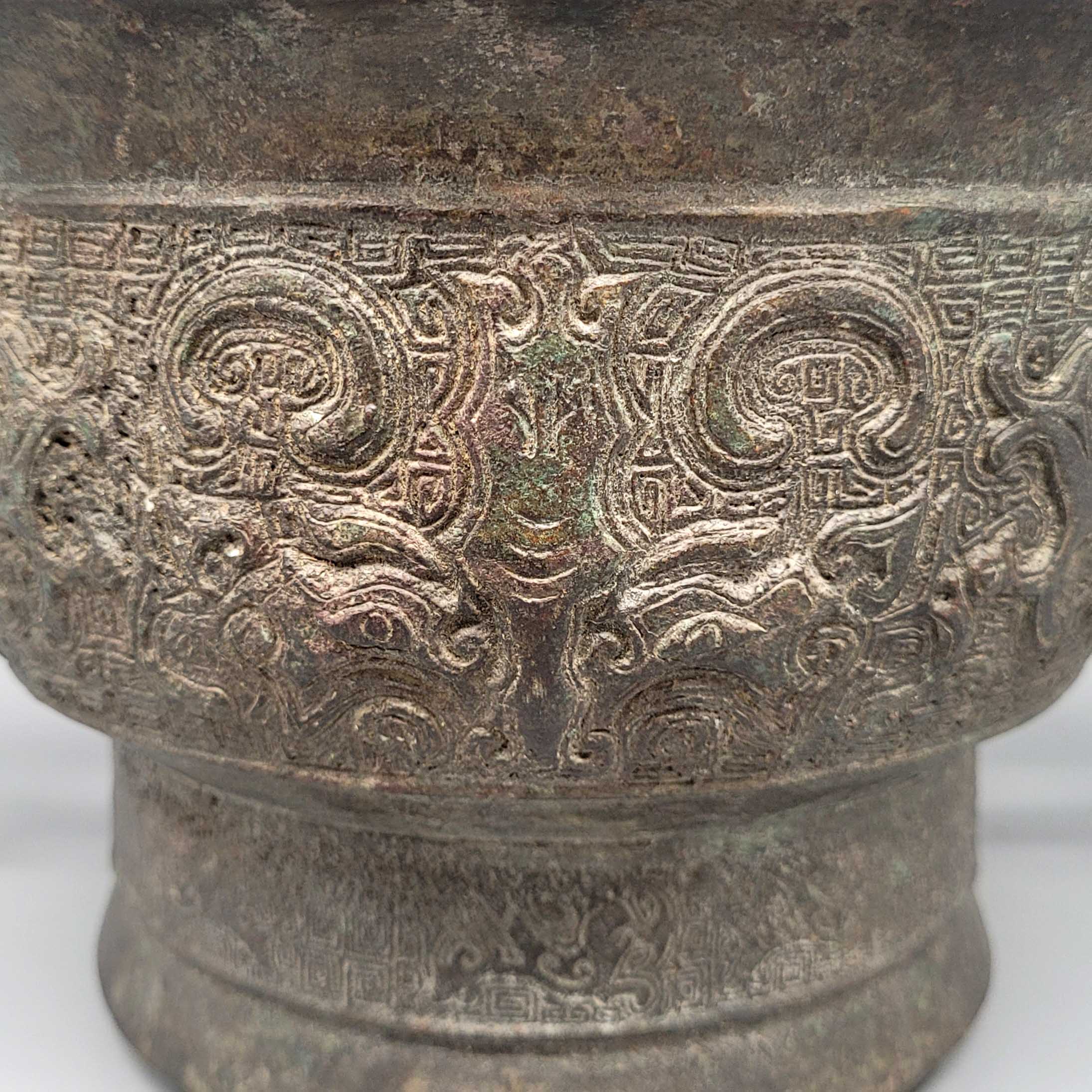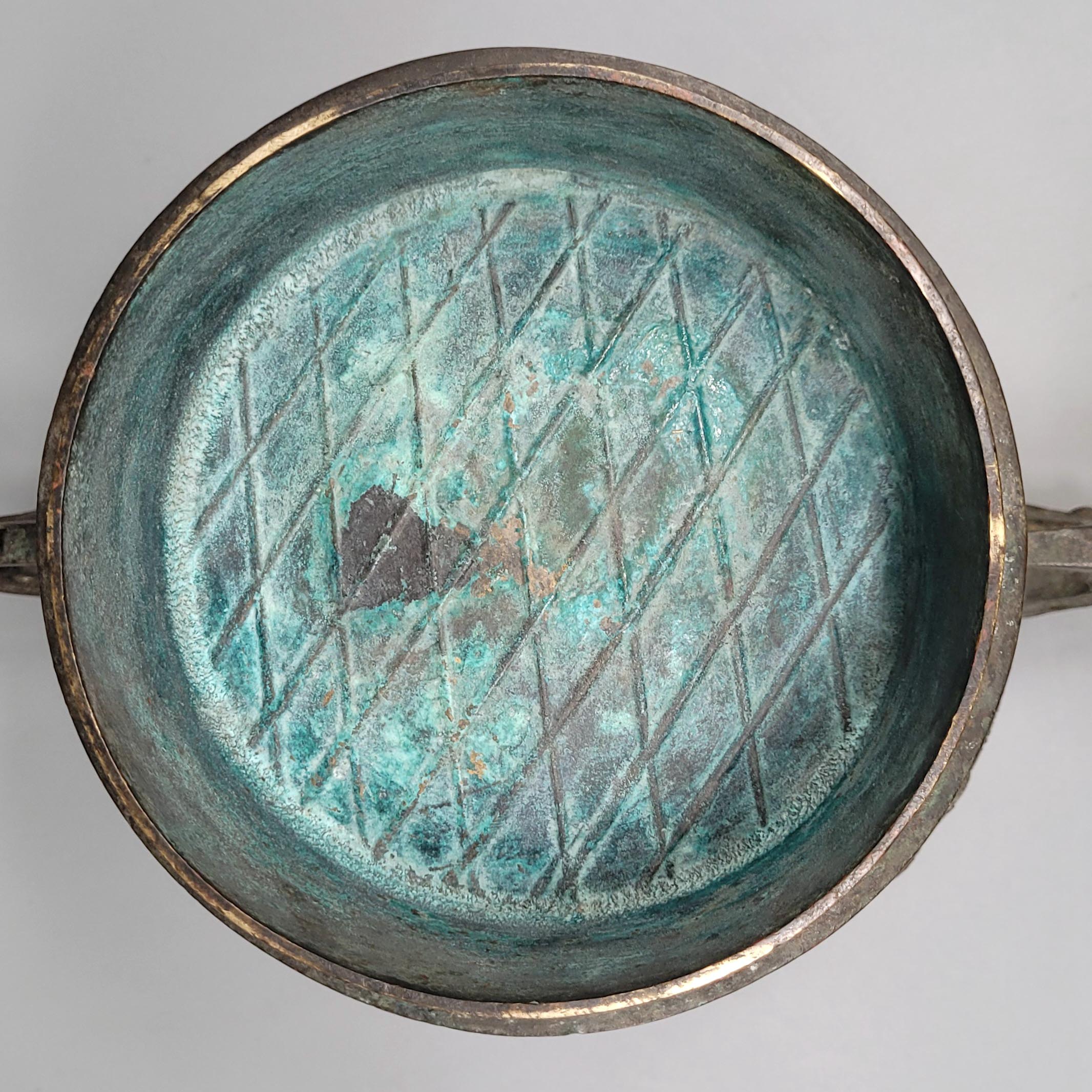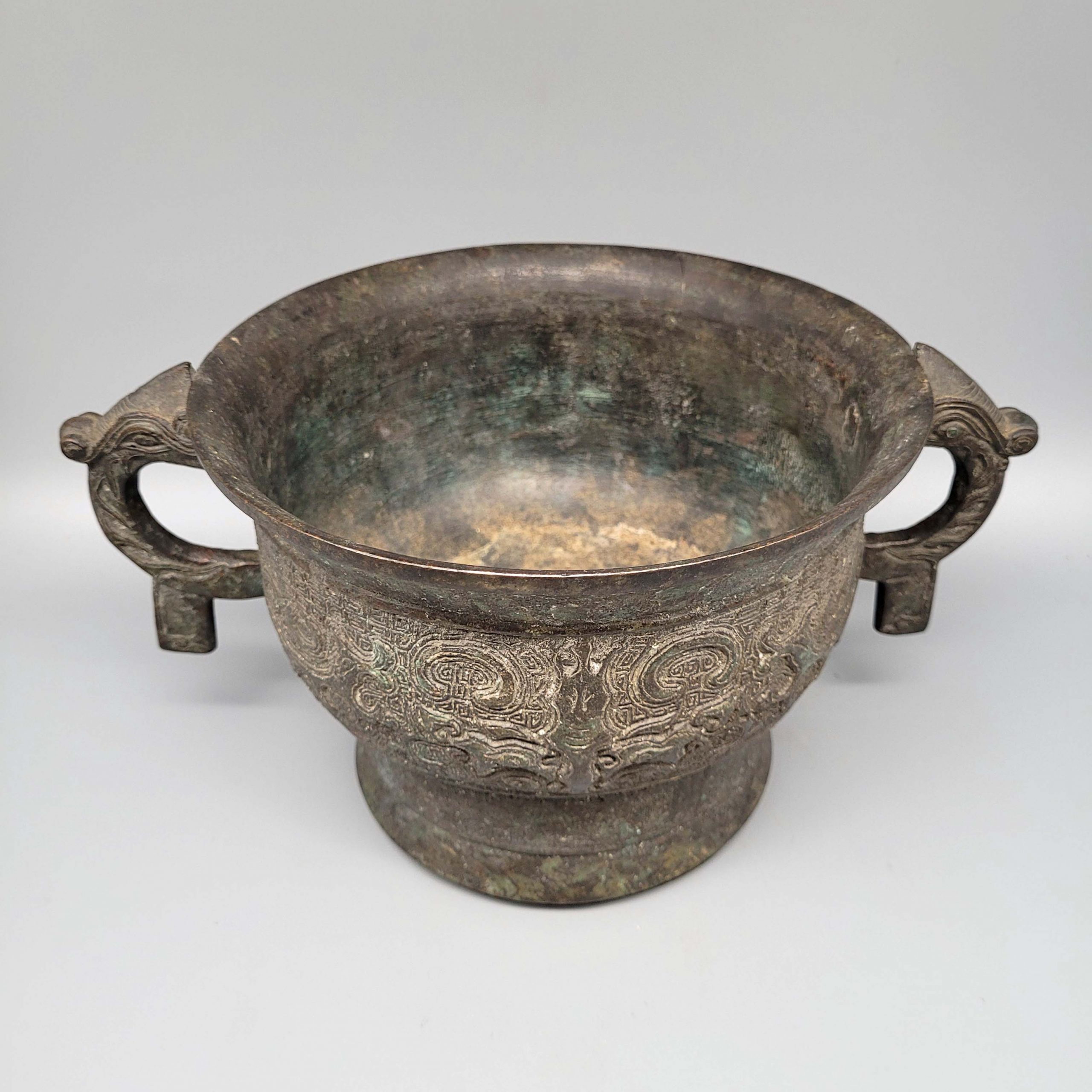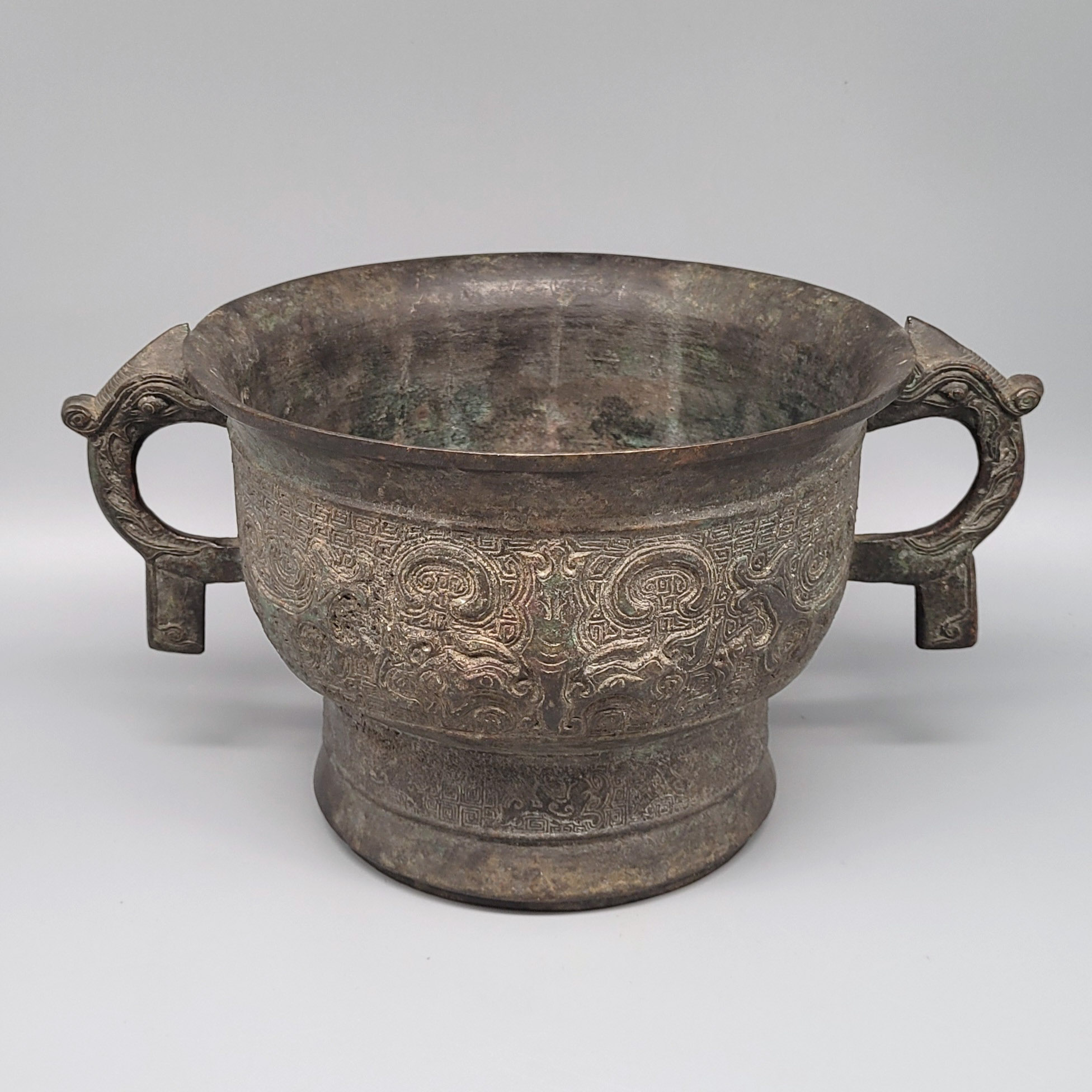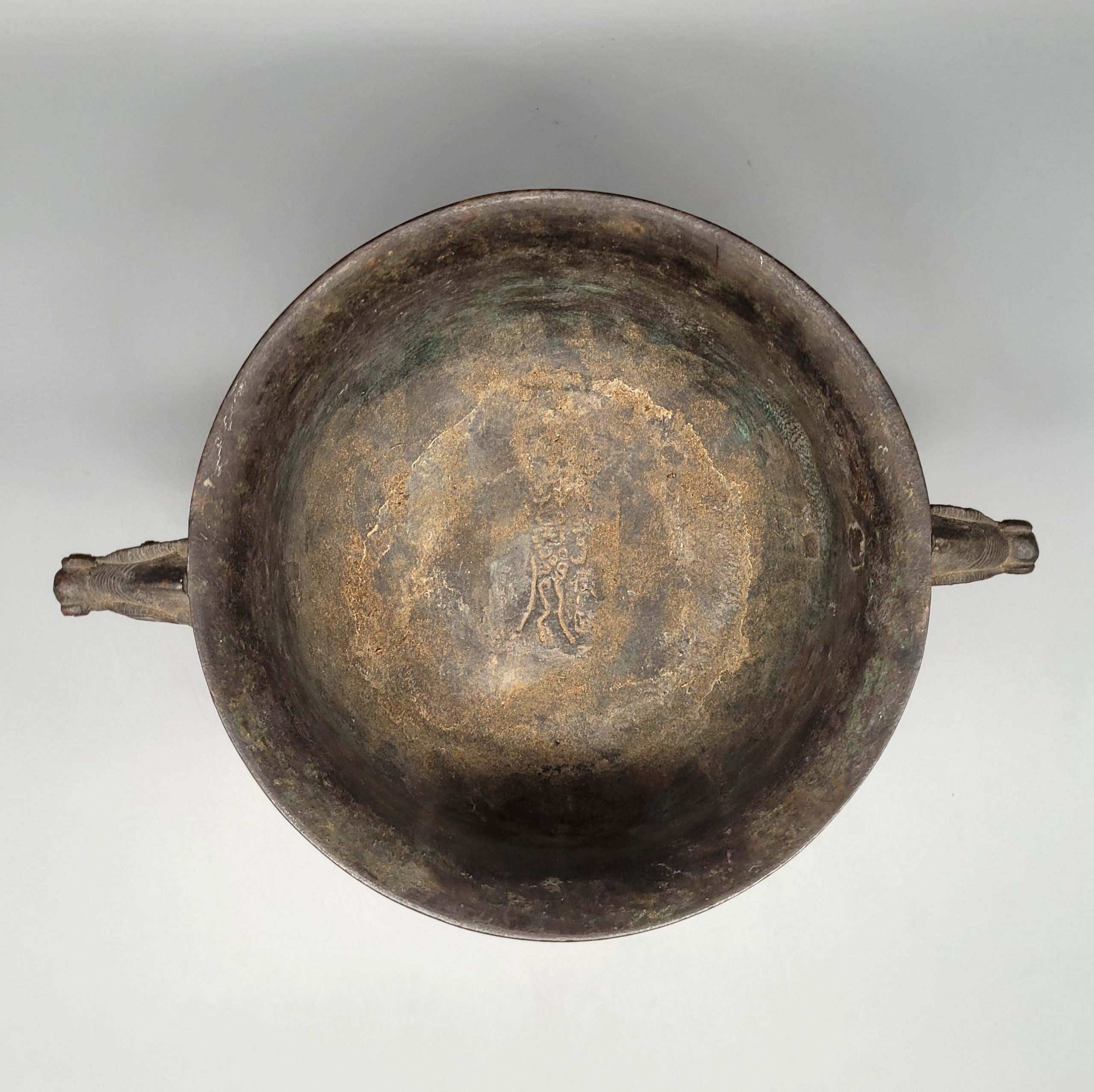 Gui WeihrauchbrennerBronze, zoomorphe Henkel, Boden mit Schraffurdekor, Wandung mit zoomorphem Dekor, China, wohl 17./18. Jahrhundert, Höhe 15 cm, Durchmesser 21 cm (ohne Henkel), Gewicht 3,5kg