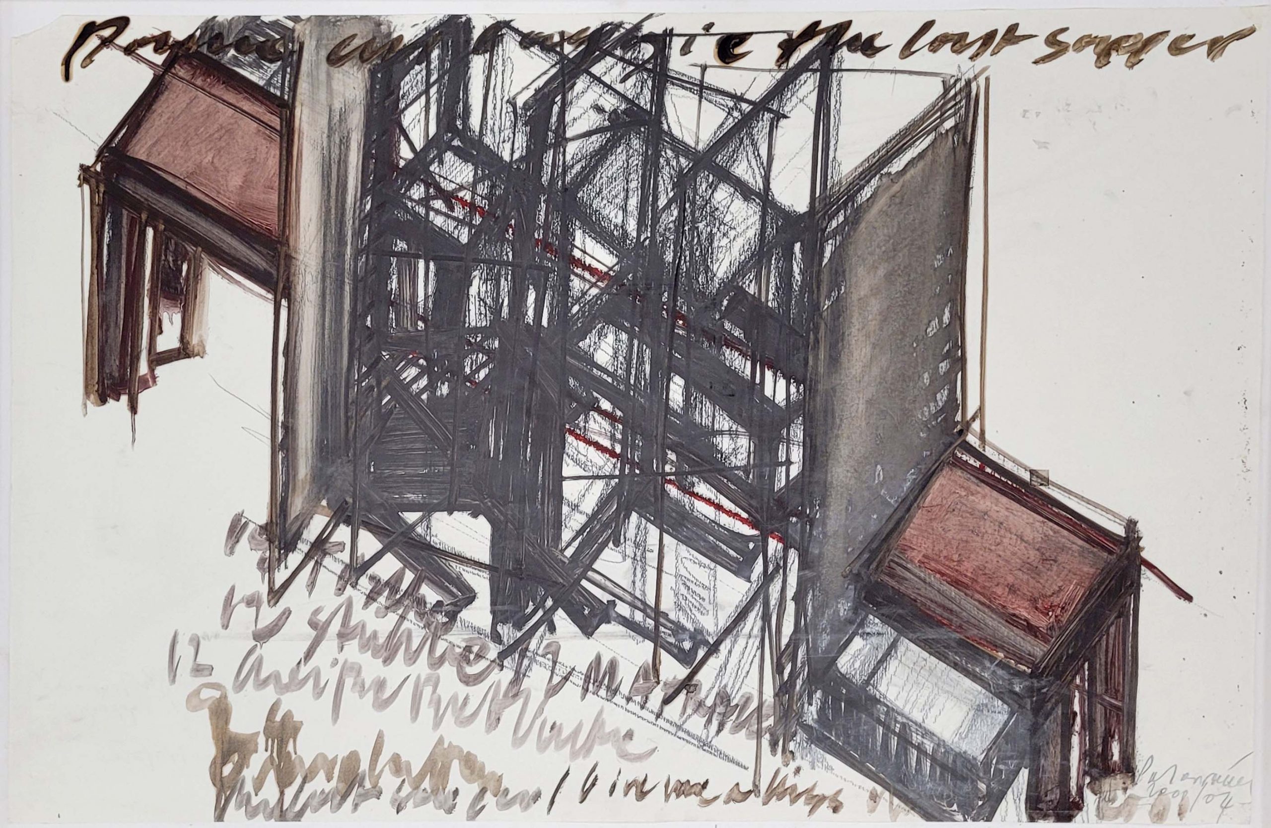 PALAVRAKIS, Apostolos (*1962): Ohne TitelMischtechnik auf Papier, signiert und datiert 2000-(20)04 unten rechts, 70 x 100 cm, montiert im Rahmen**)Bei einem Zuschlag über 400€ werden 2% für VG Bild gemäß §26 UrHG erhoben