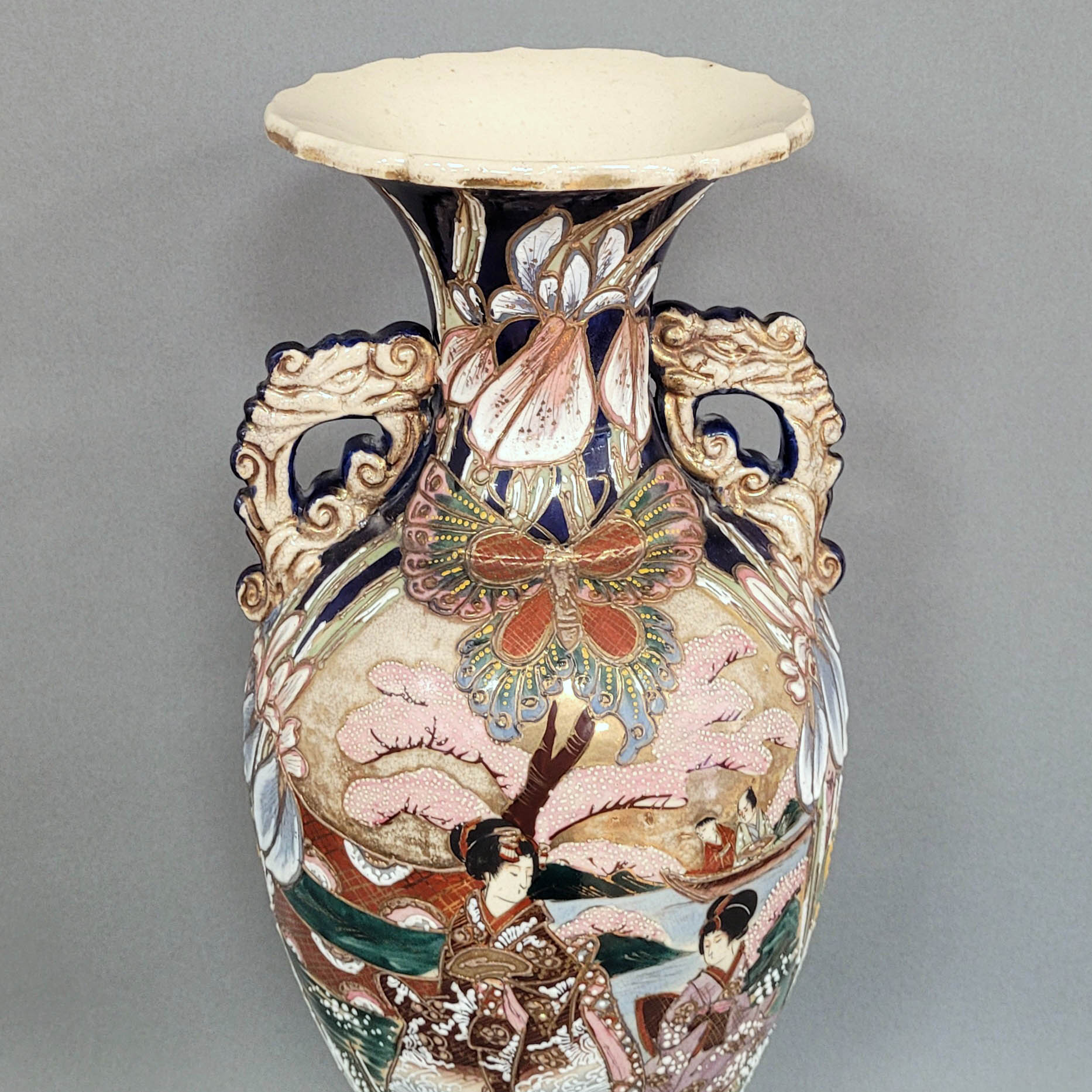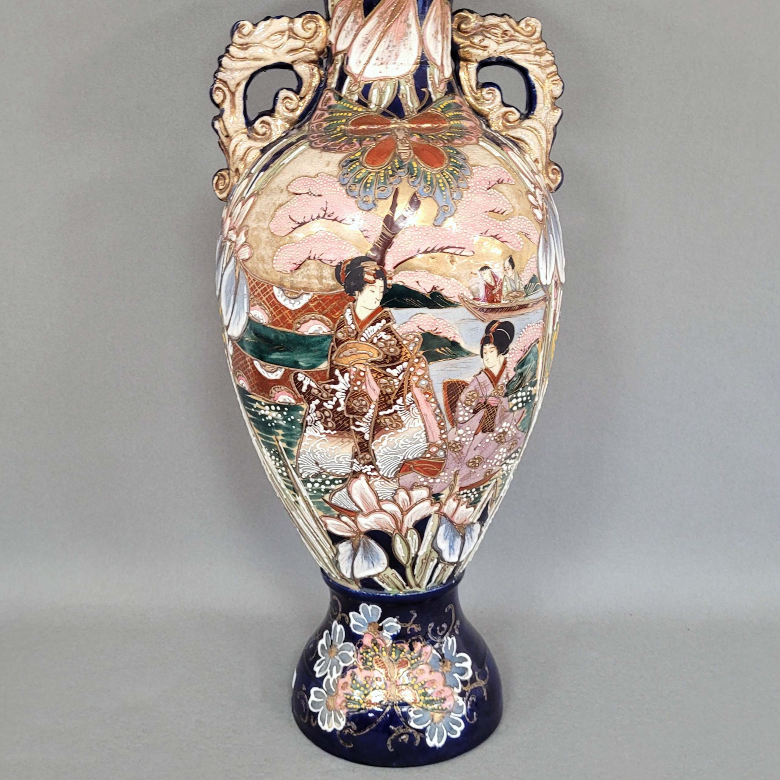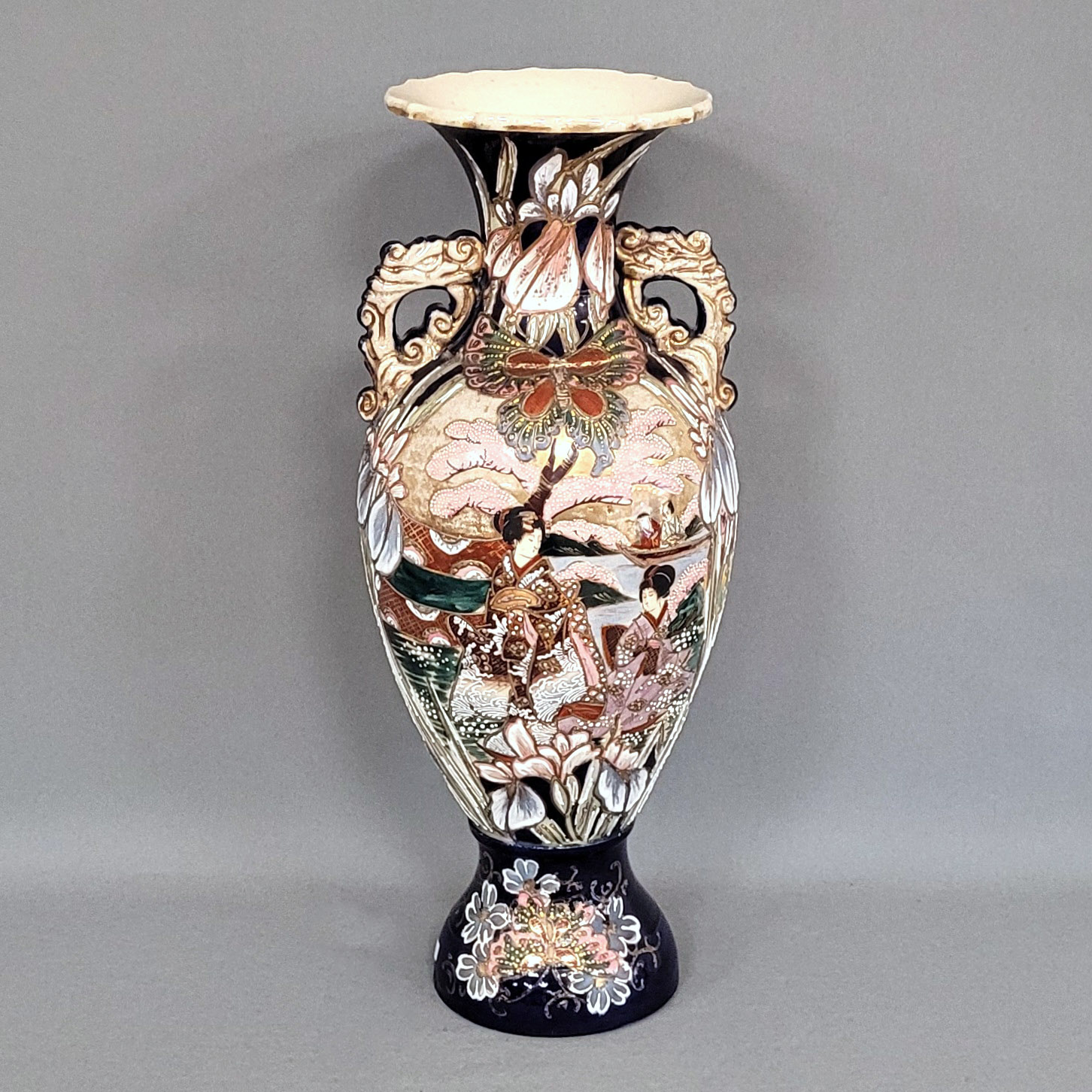 Steingut, polychrom glasiert, mit figürlichen Szenen, Satsuma, Japan, um 1920, Höhe 63 cm