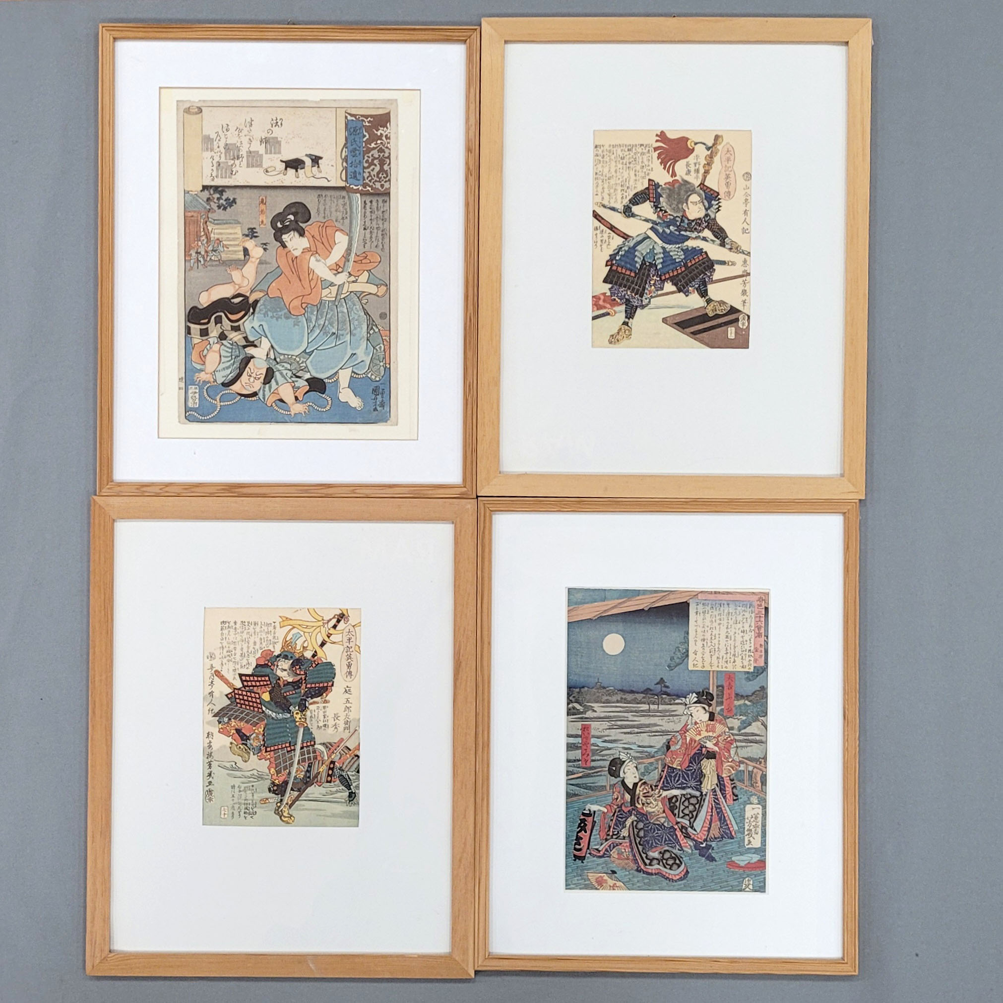 Farbholzschnitt, 36 x 24,5 cm, gerahmt im Passepartout YOSHIKU, Utagawa (1833-1904), Tänzerpaar / 2 Helden des Taiheiki, 3 Farbholzschnitte, 1867 und 1869, bis zu 33 x 22 cm, gerahmt im Passepartout