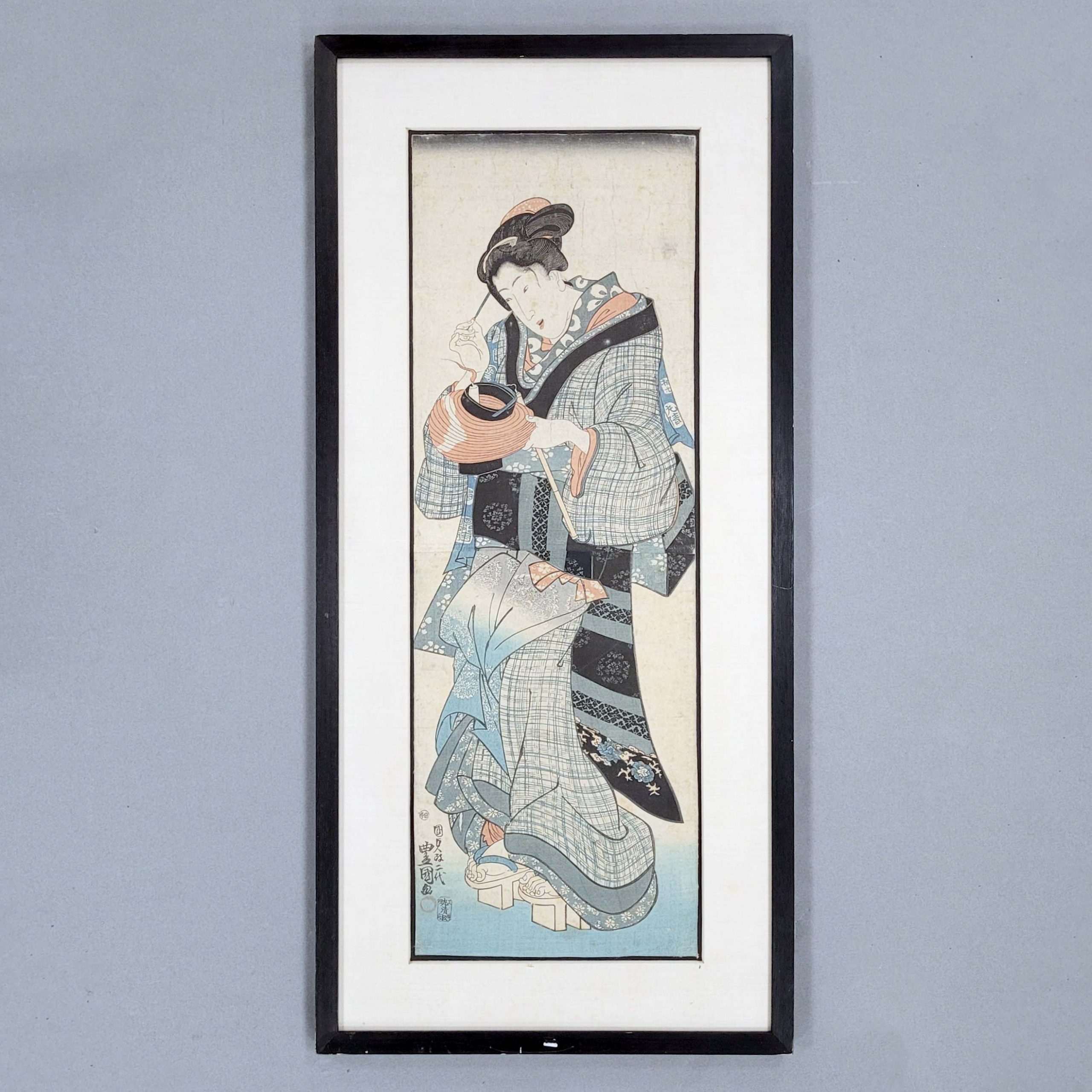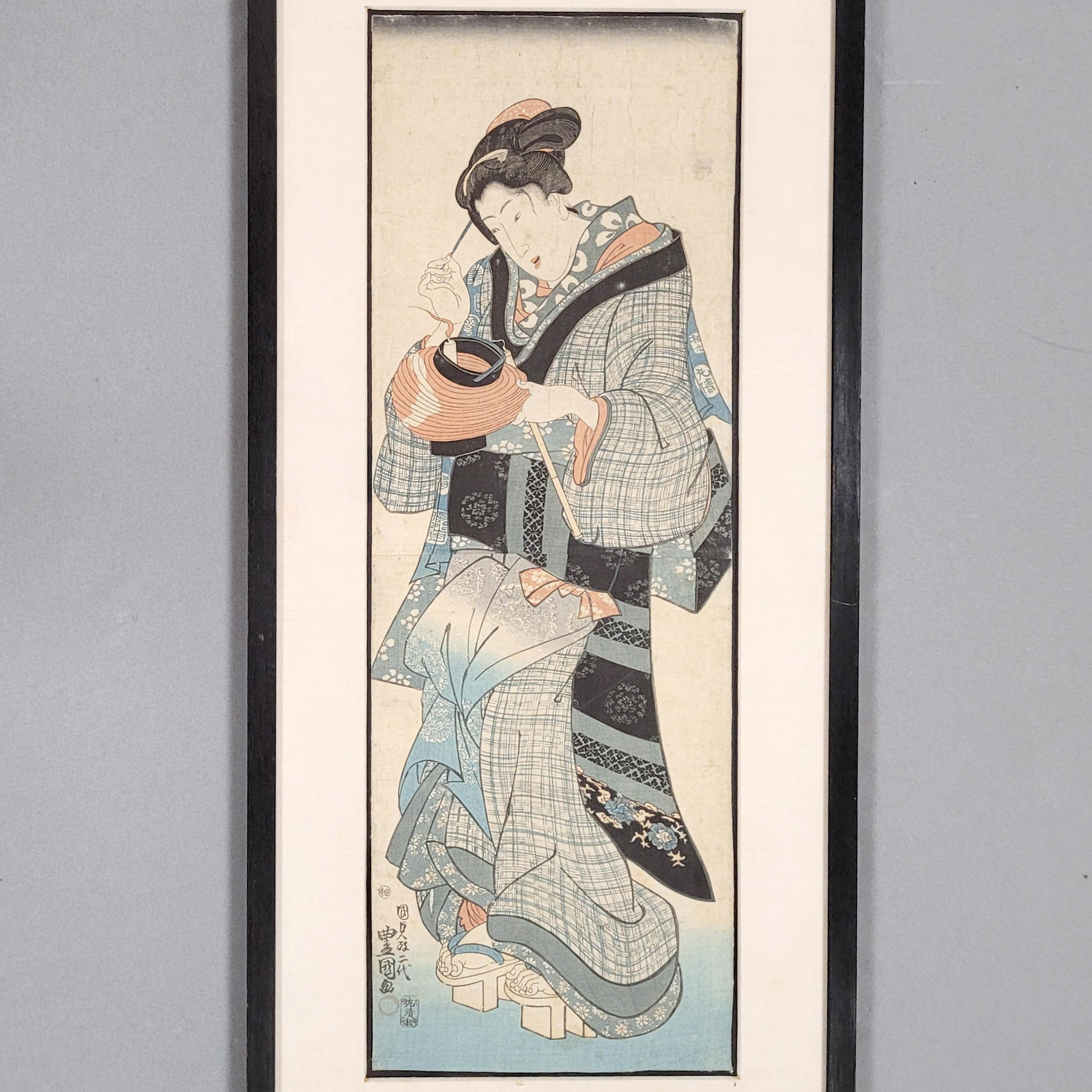 KUNISADA, Utagawa (1786-1865): Junge Frau mit LaterneFarbholzschnitt, 72 x 24,5 cm, gerahmt unter Glas und Passepartout