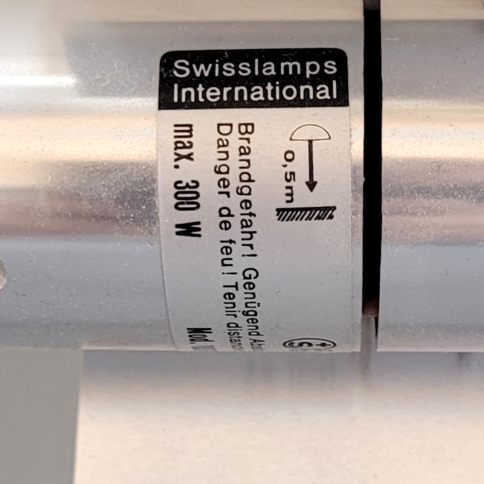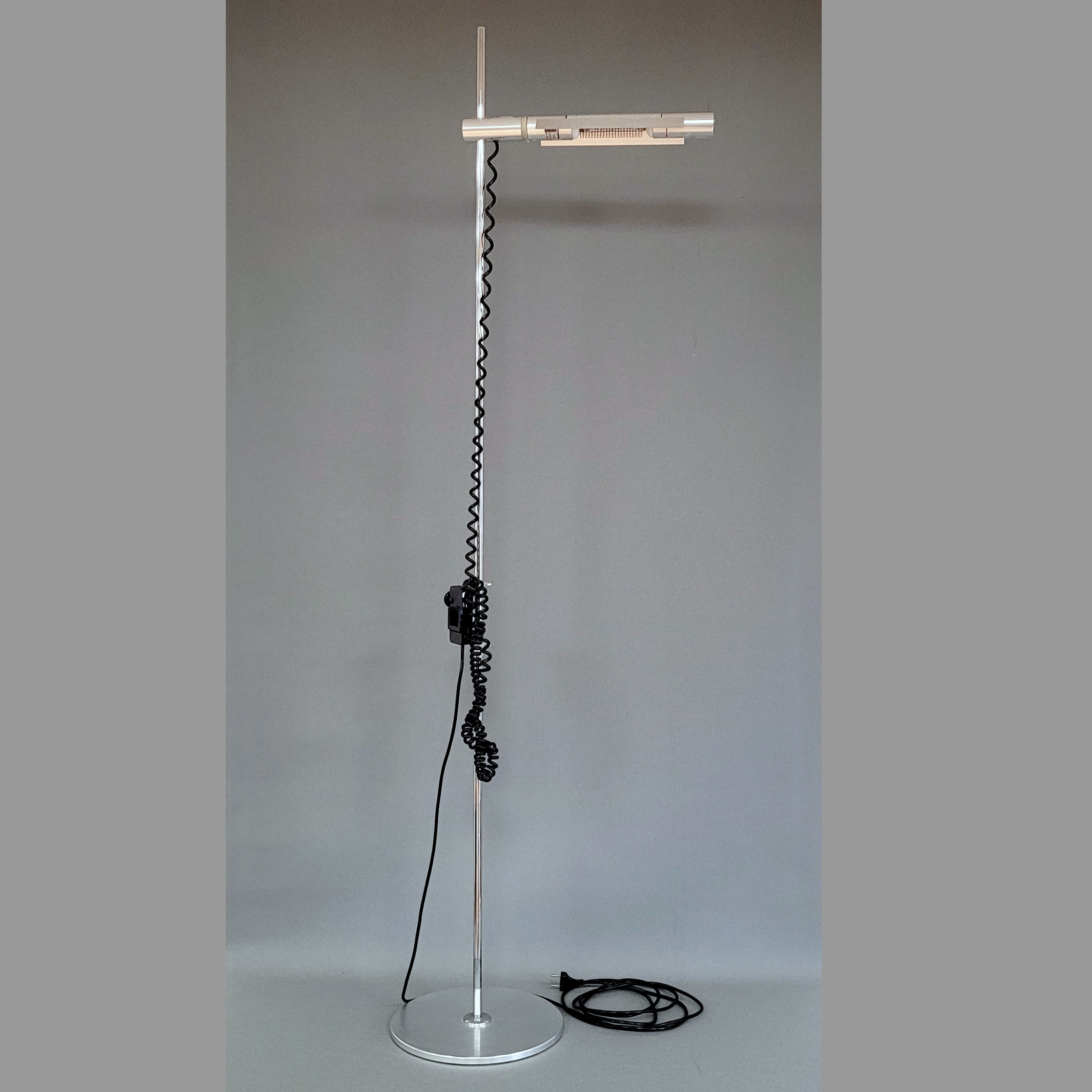 Stehlampe Modell 18503Edelstahl, gebürstet, drehbarer, höhenverstellbarer Leuchtkopf, runde Bodenplatte, Entwurf Rosemarie und Rico Baltensweiler, Ausführung Swisslamps International, Höhe 176 cm