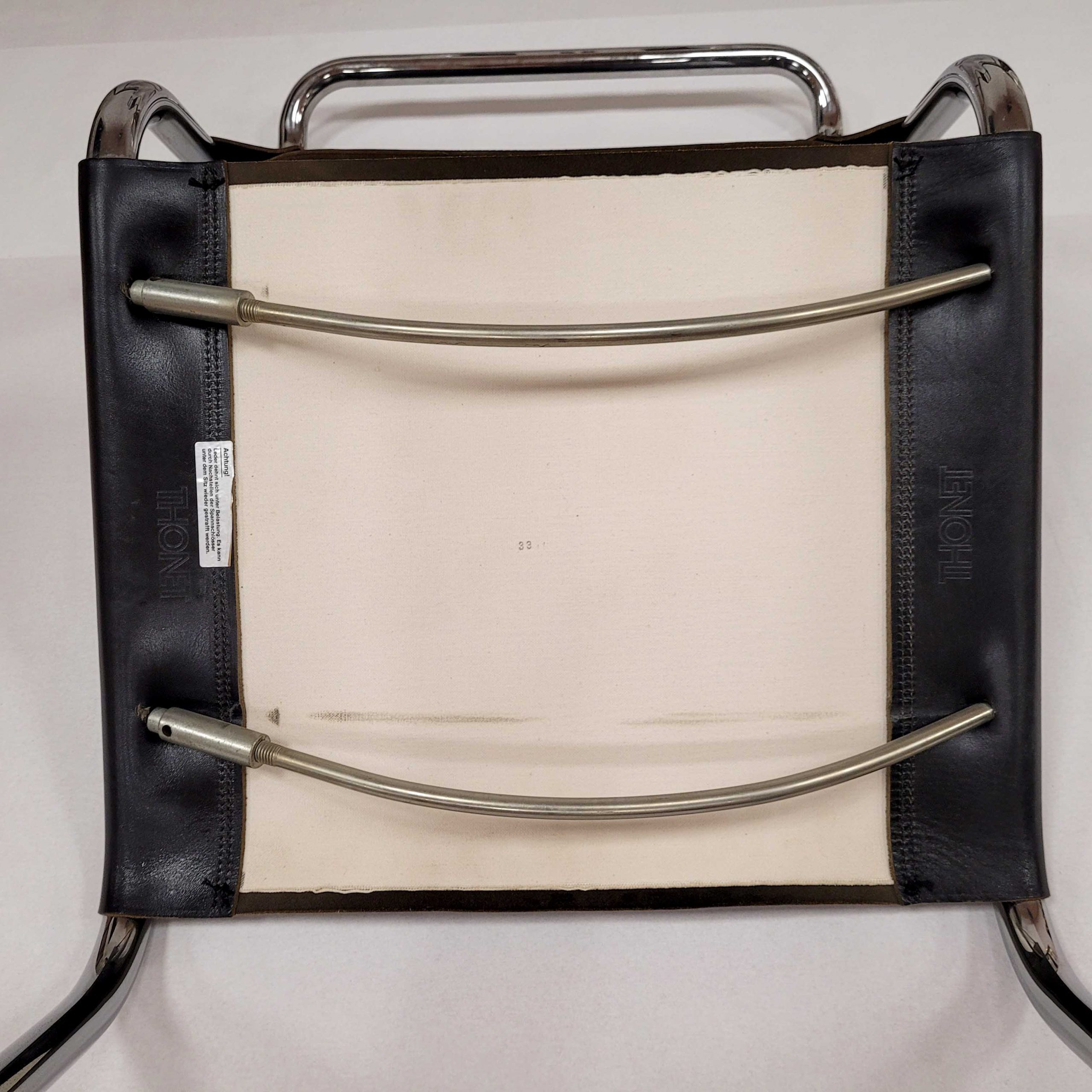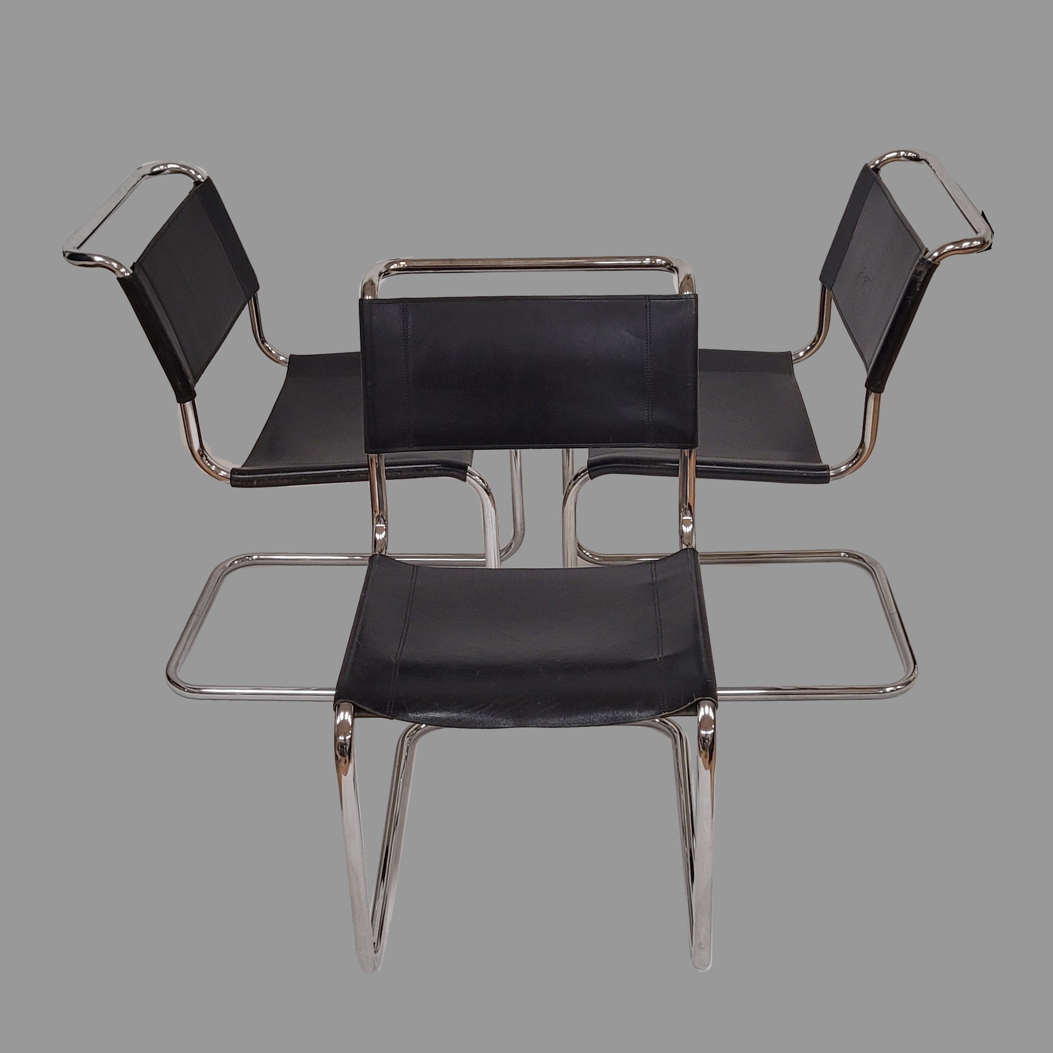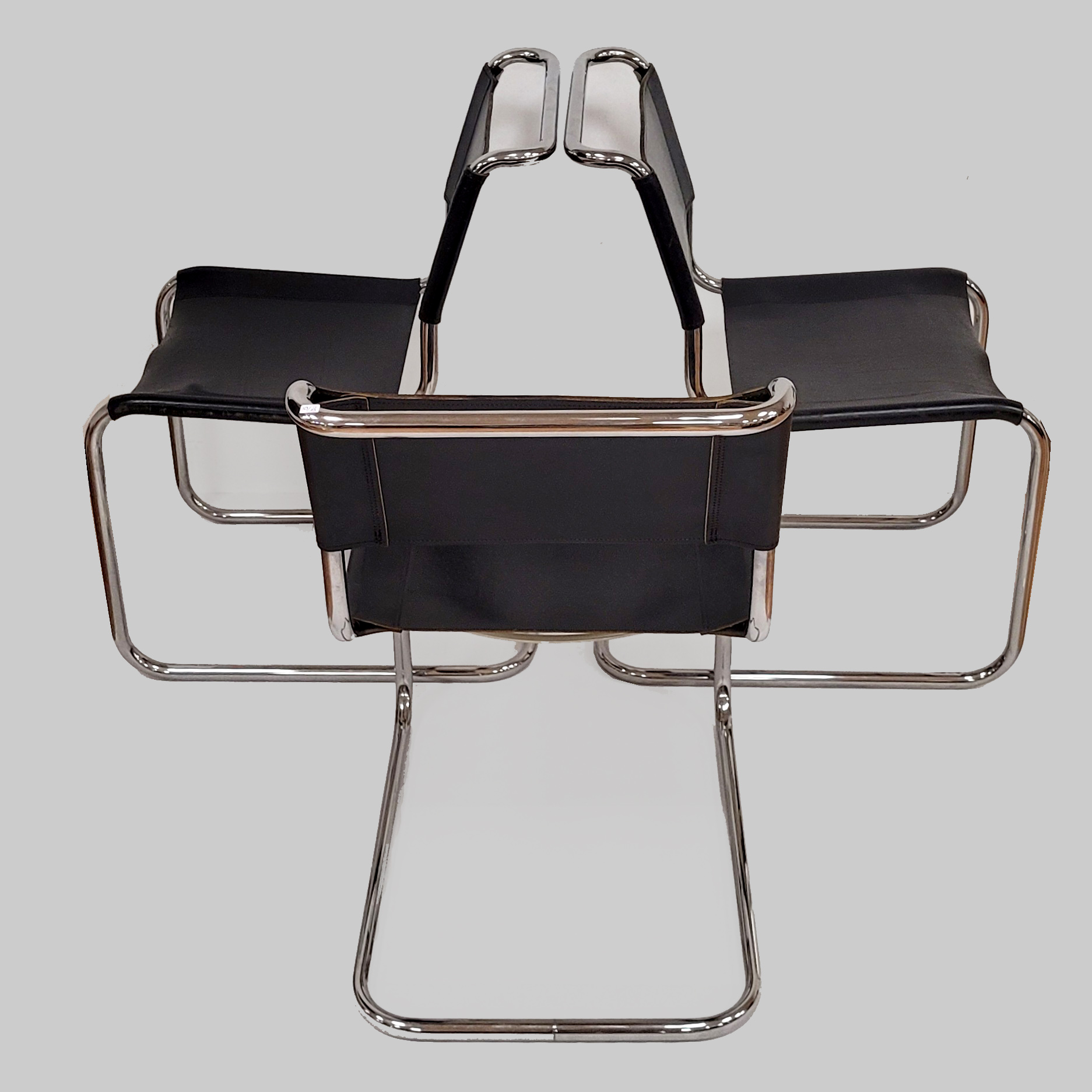 BREUER, Marcel (1902-1981): Satz von sechs Freischwingern B33Stahlrohr, verchromt, schwarzes Leder, Ausführung Thonet, Höhe 78 cm, Sitzhöhe ca. 44 cm