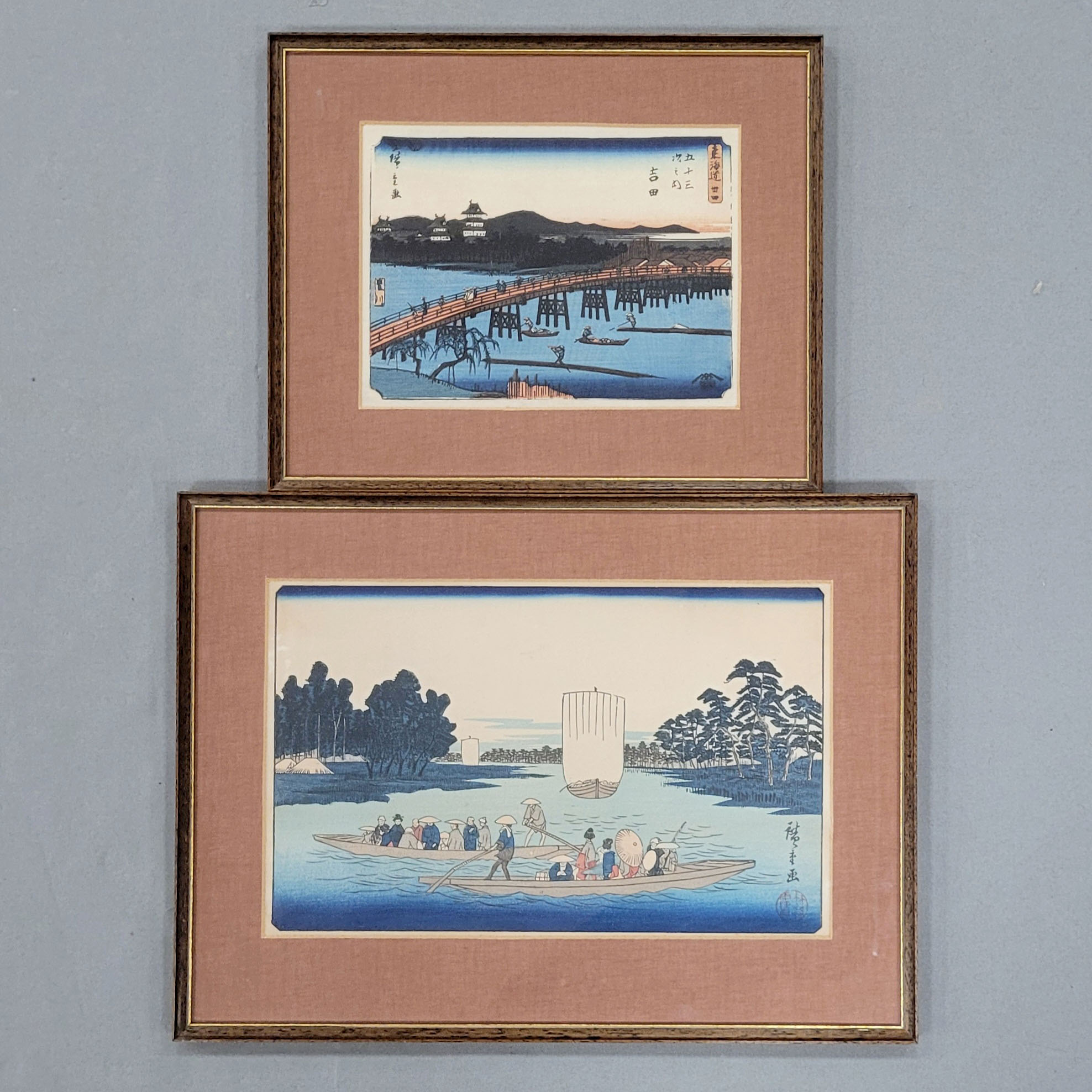 2 Farbholzschnitte, ca. 23 x 35 cm bzw. 17,5 x 23,5 cm, gerahmt unter Glas und Passepartout
