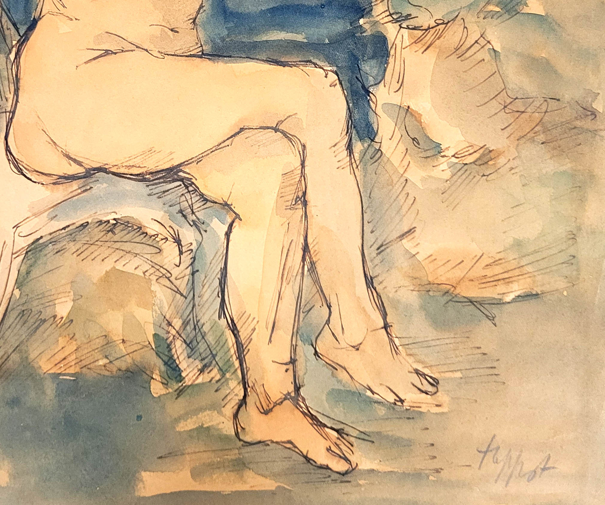 TAPPERT, Georg (1880-1957): Sitzender FrauenaktAquarell, Feder auf Papier, signiert unten rechts, 37,5 x 27 cm**) 2% für VG Bild wird gemäß §26 UrHG auf den Zugschlagpreis erhoben