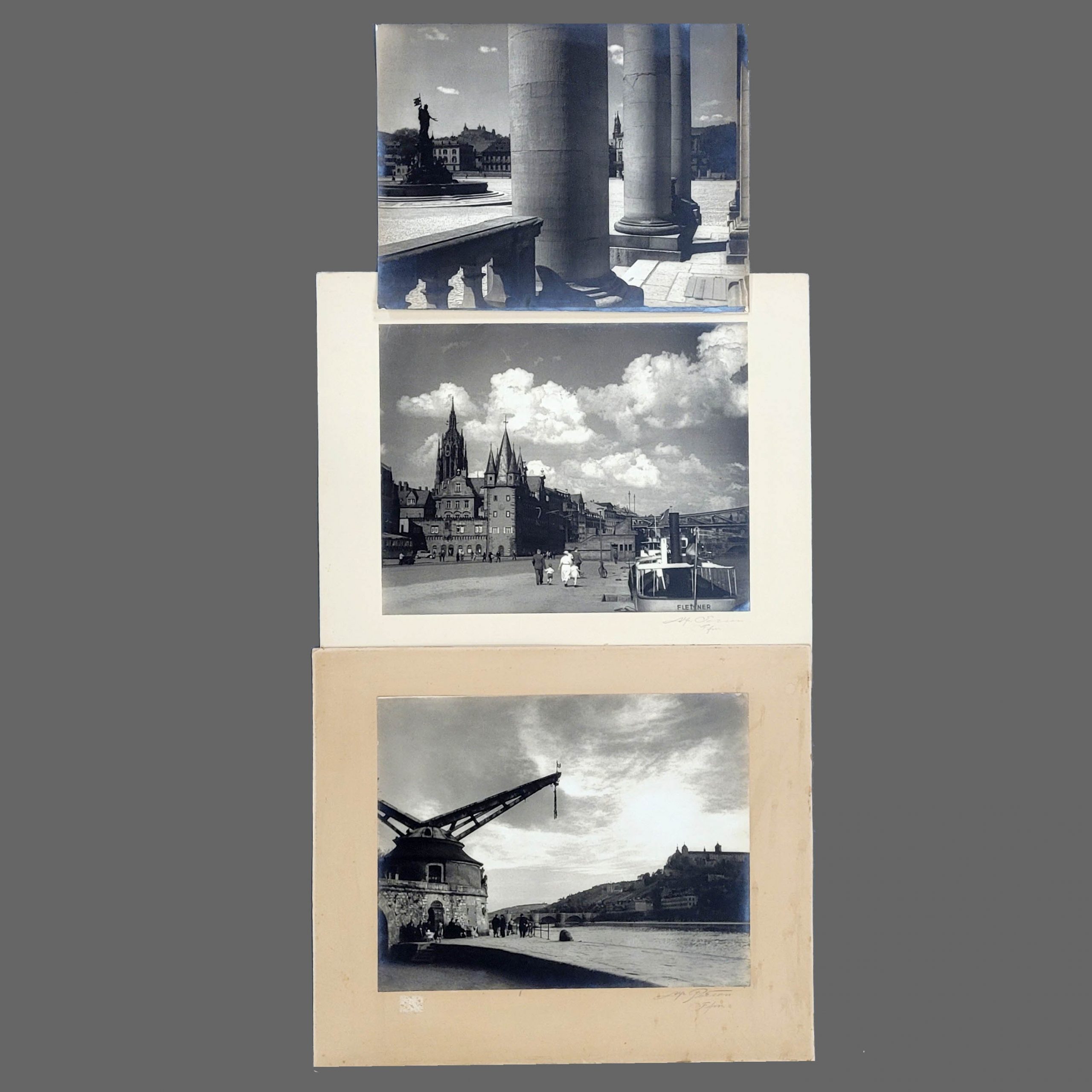 PERSON, Alfred (1885-1976): Eiserner Steg / Zwei Ansichten Festung Marienberg3 Silbergelantineabzüge, um 1930-35, aufgezogen auf Karton (2x), signiert unten rechts (2x), nummeriert 22 (1x), bis zu 48 x 61 cm (ohne Karton)