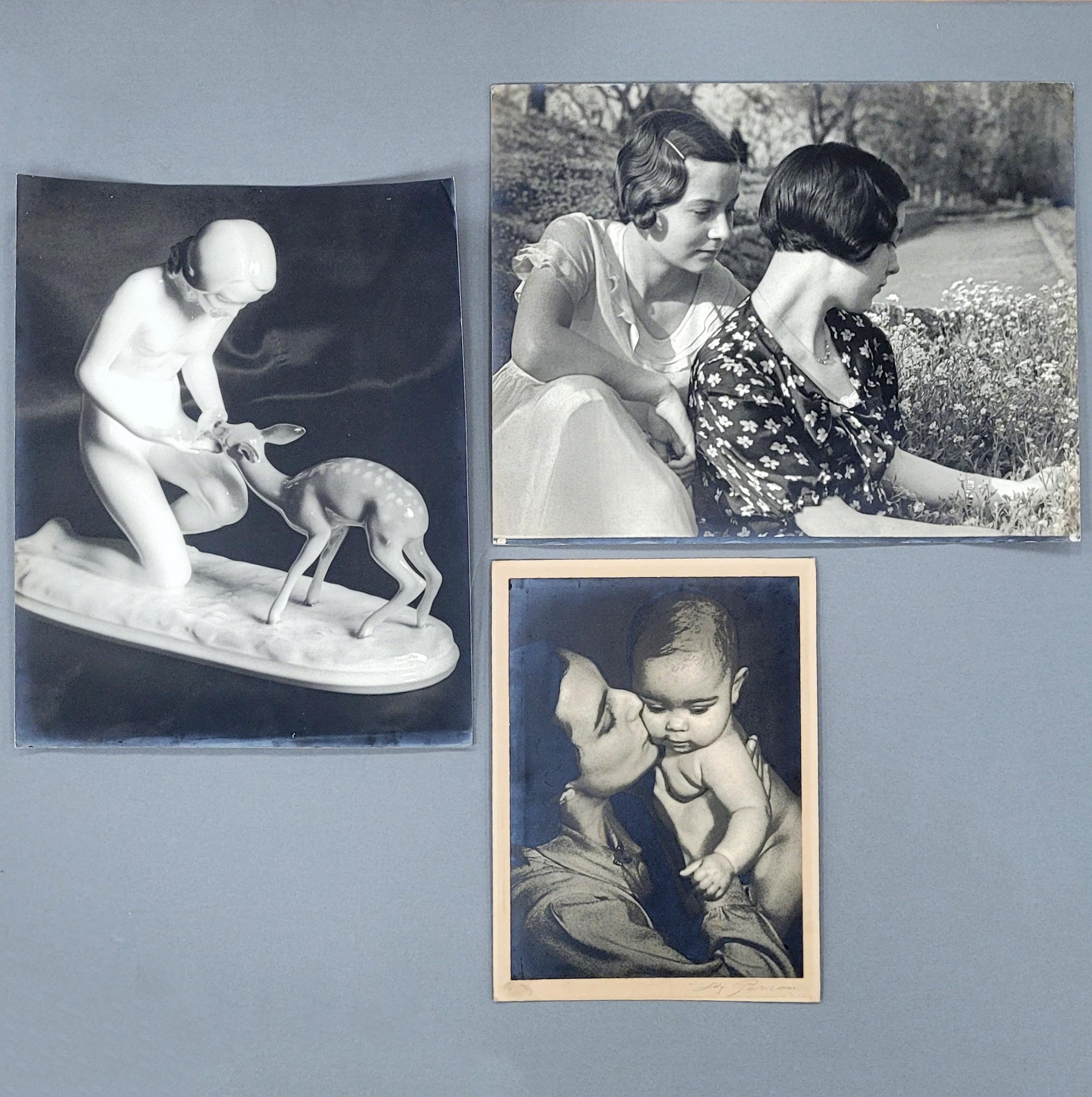 PERSON, Alfred (1885-1976): Mutterglück / Freundinnen / Porzellanfigur „Gute Freunde“3 Silbergelantineabzüge, um 1930-35, aufgezogen auf Karton (1x), signiert unten rechts (1x), verso mit photographischen Angaben (1x), bis zu 48,5 x 61 cm