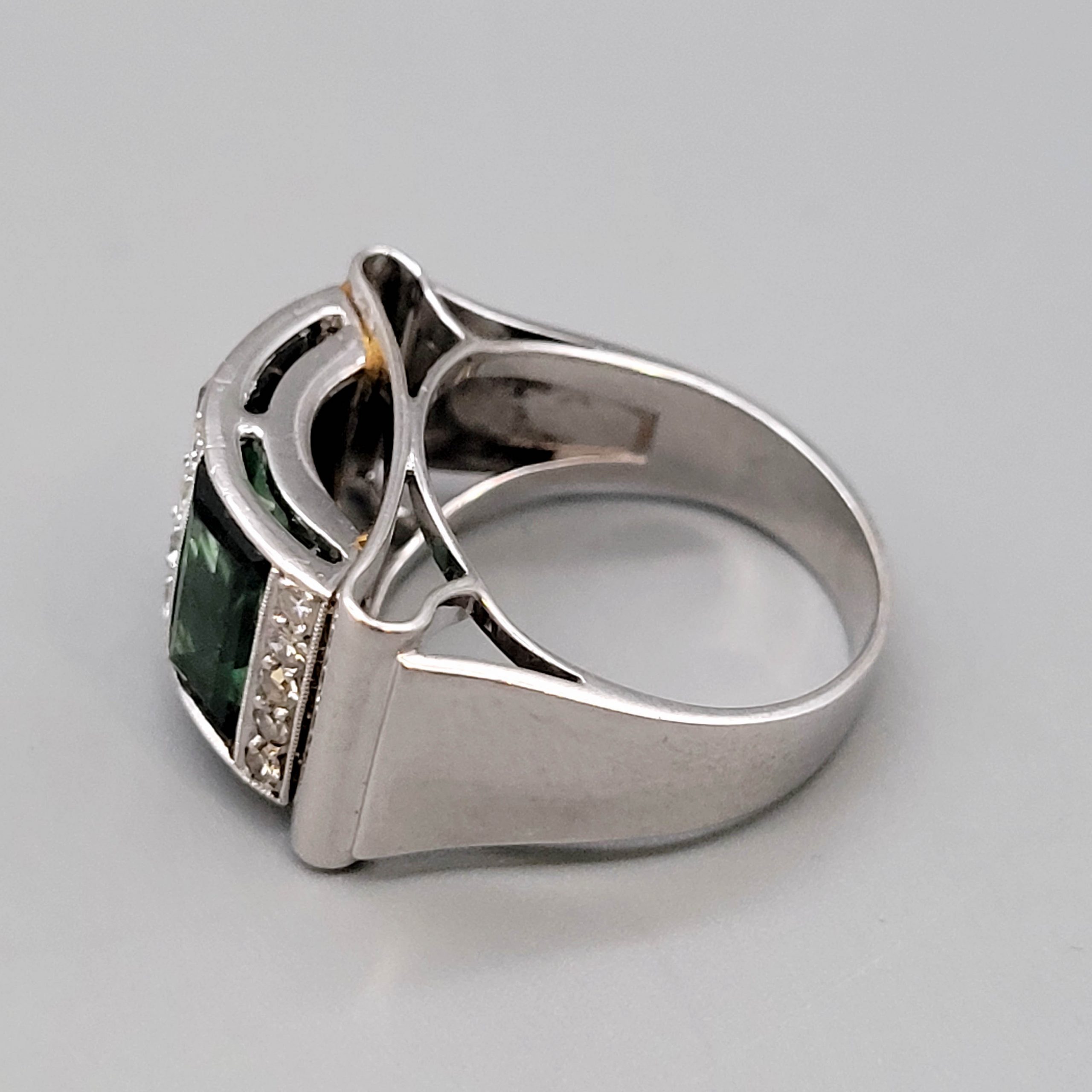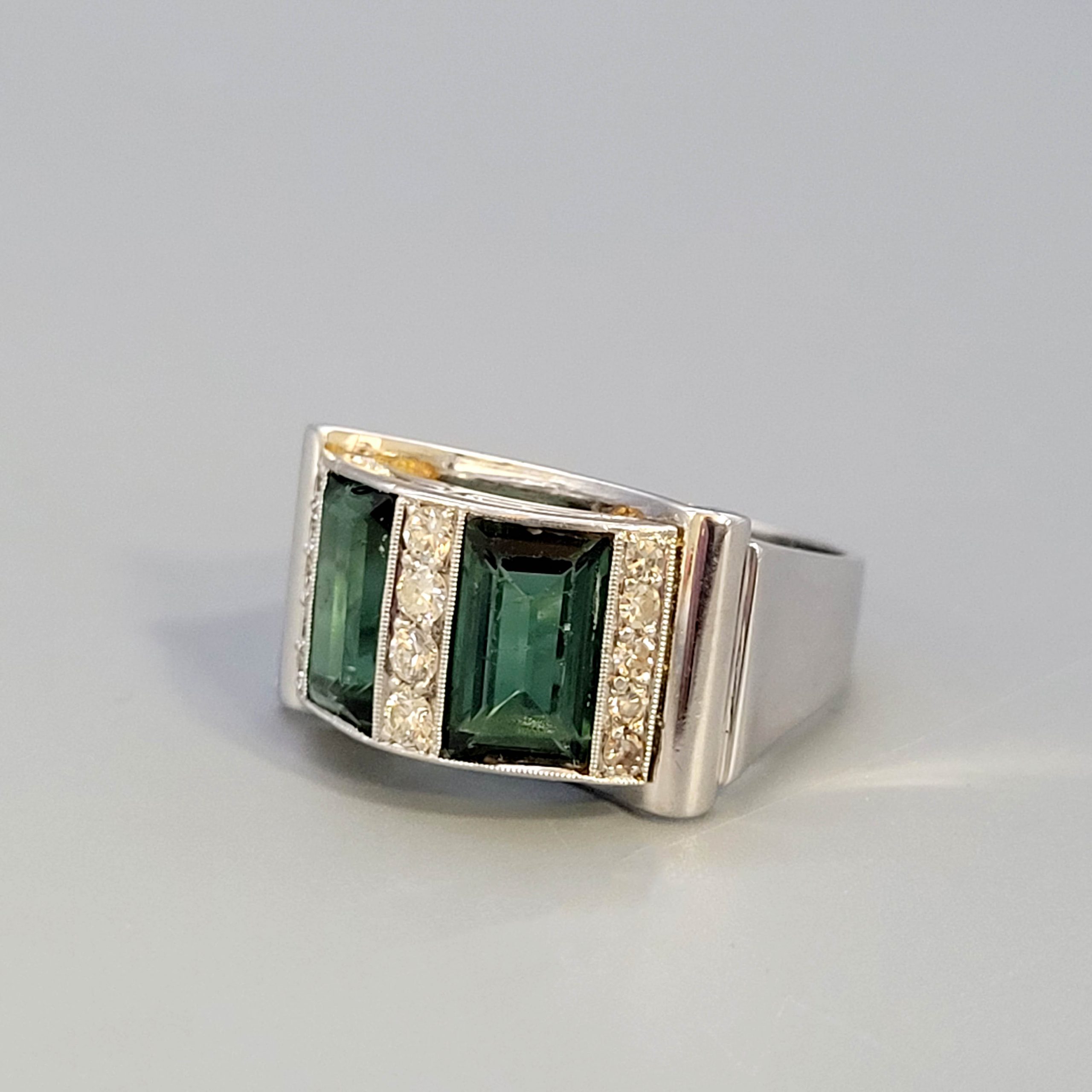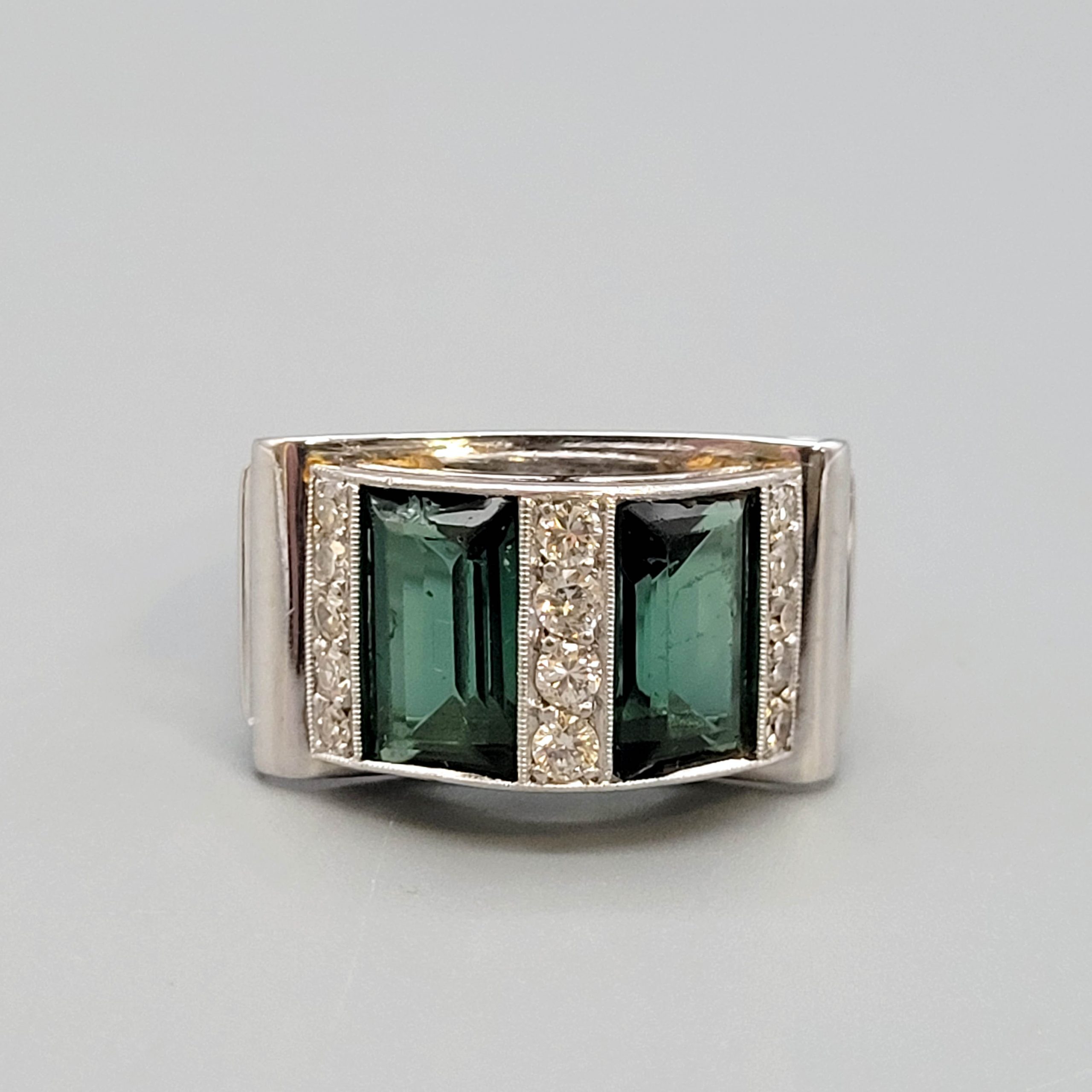 Damenring585er Weißgold, 2 Turmaline (leicht verkratzt), 15 Diamanten (ca. 0,30 ct), Ringgröße 55, Gewicht ca. 9g