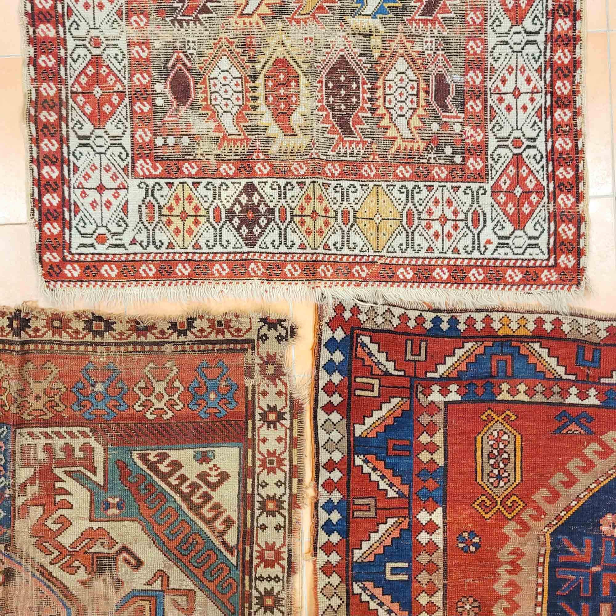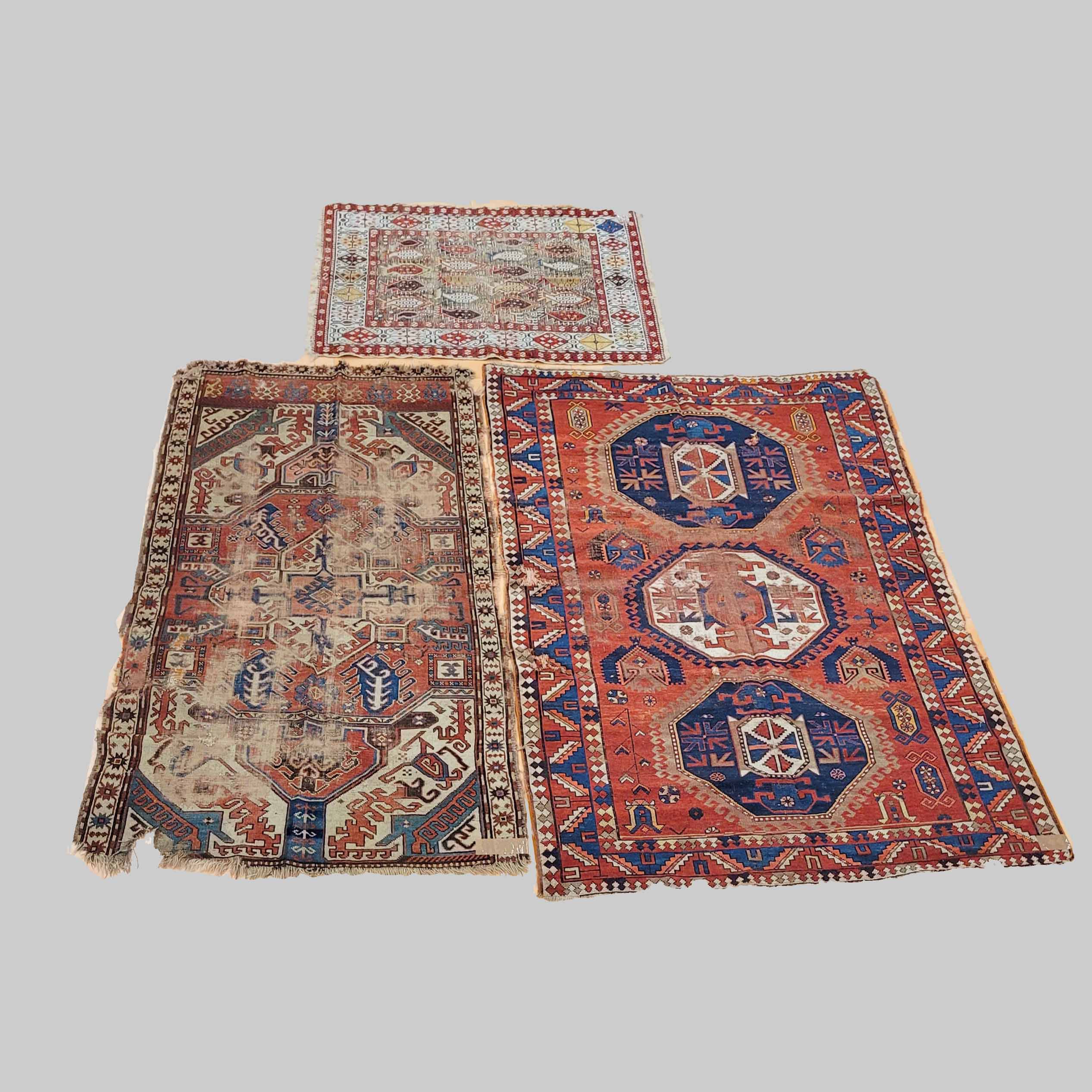 Zwei Kazak und ein Schirwan, um 1900, 226 x 160 cm 215 x 120 cm bzw. 135 x 100 cm, Zustand D