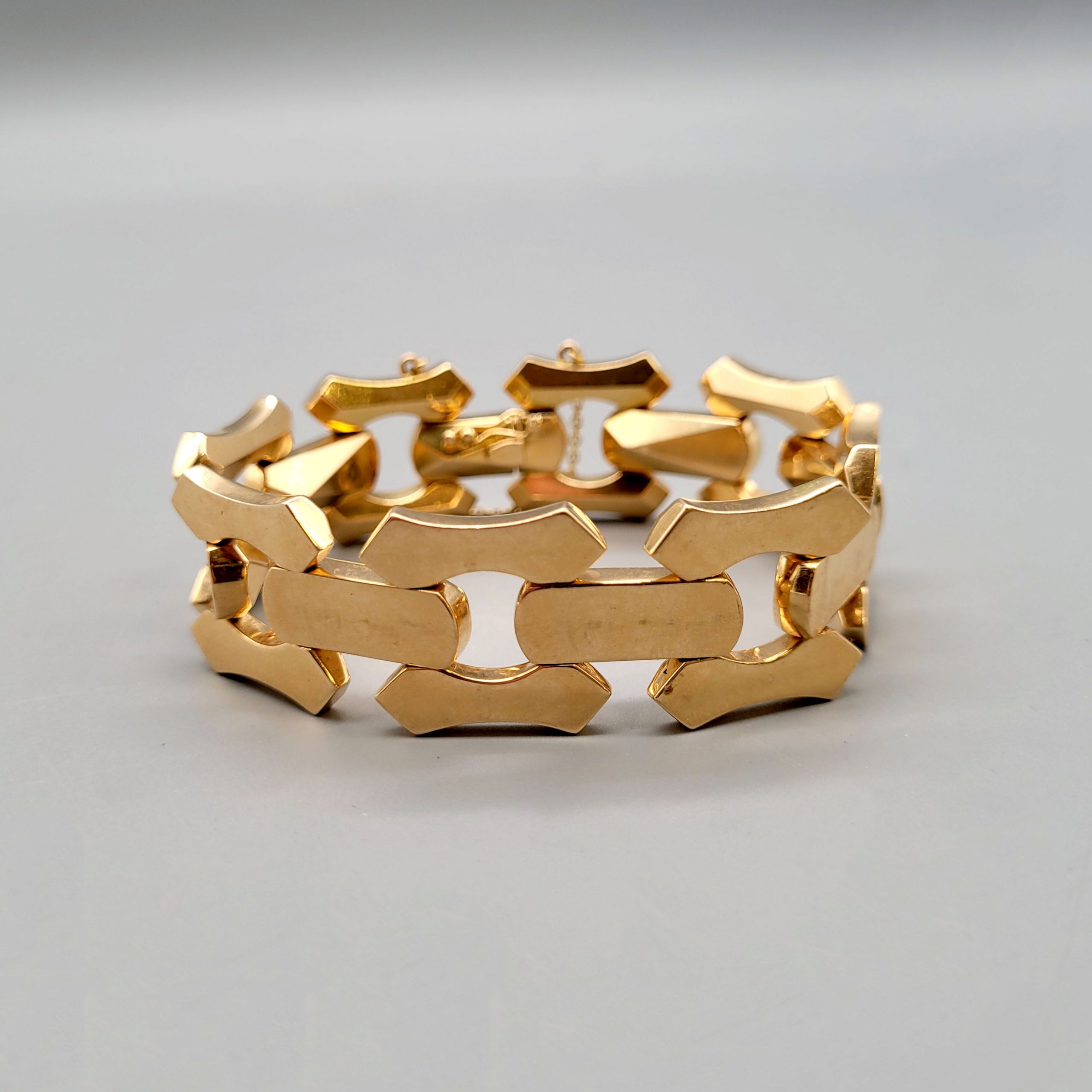 Kettenarmband750er Gelbgold, Italien, Vicenza, Kastenschloss mit Sicherheitskette und Bügel, Durchmesser ca. 6 cm, Gewicht 40,5g