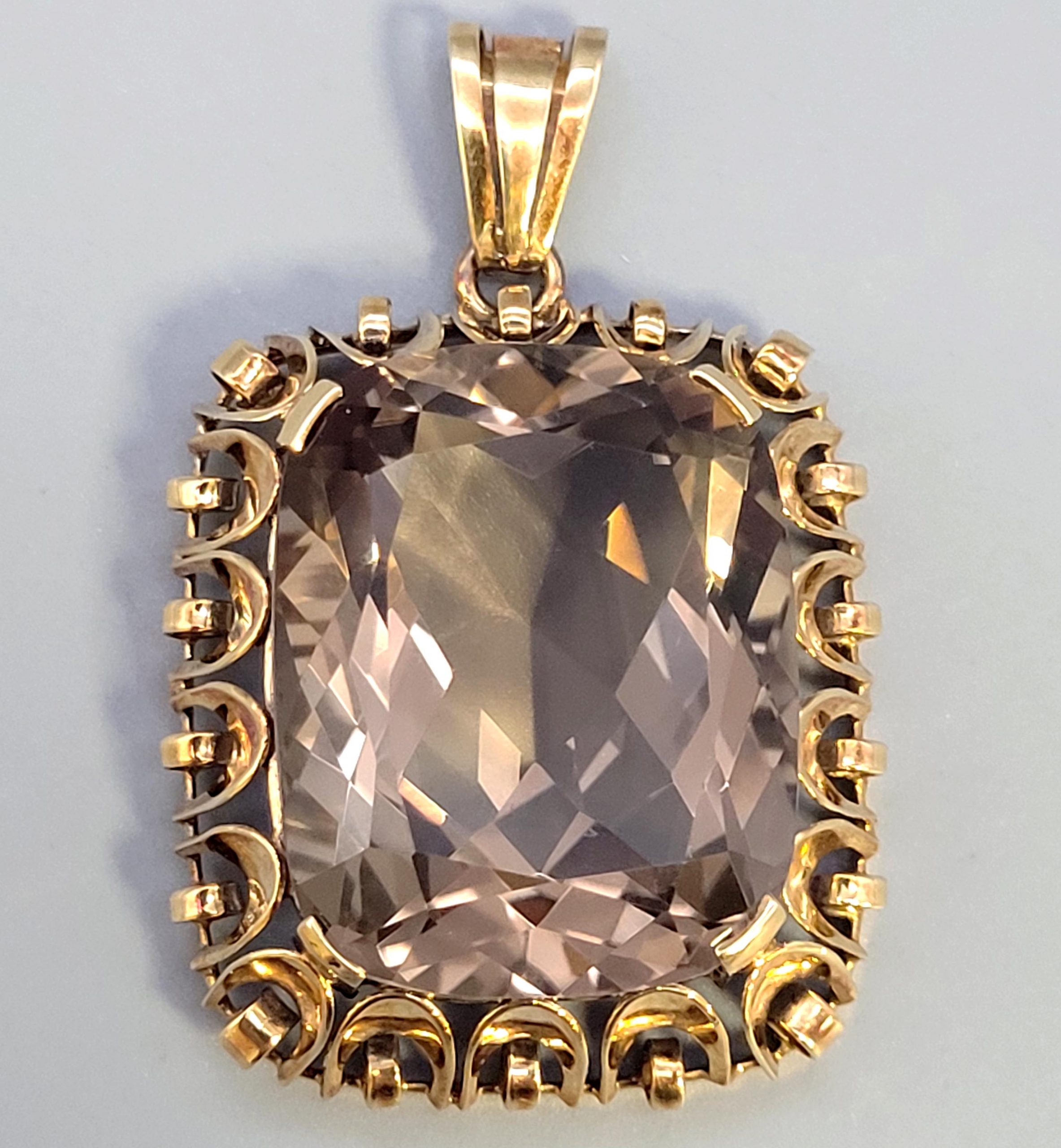 Anhänger585er Gelbgold, Rauchquarz, 3 x 2,5 cm (ohne Aufhänger), Gewicht ca. 12,5g