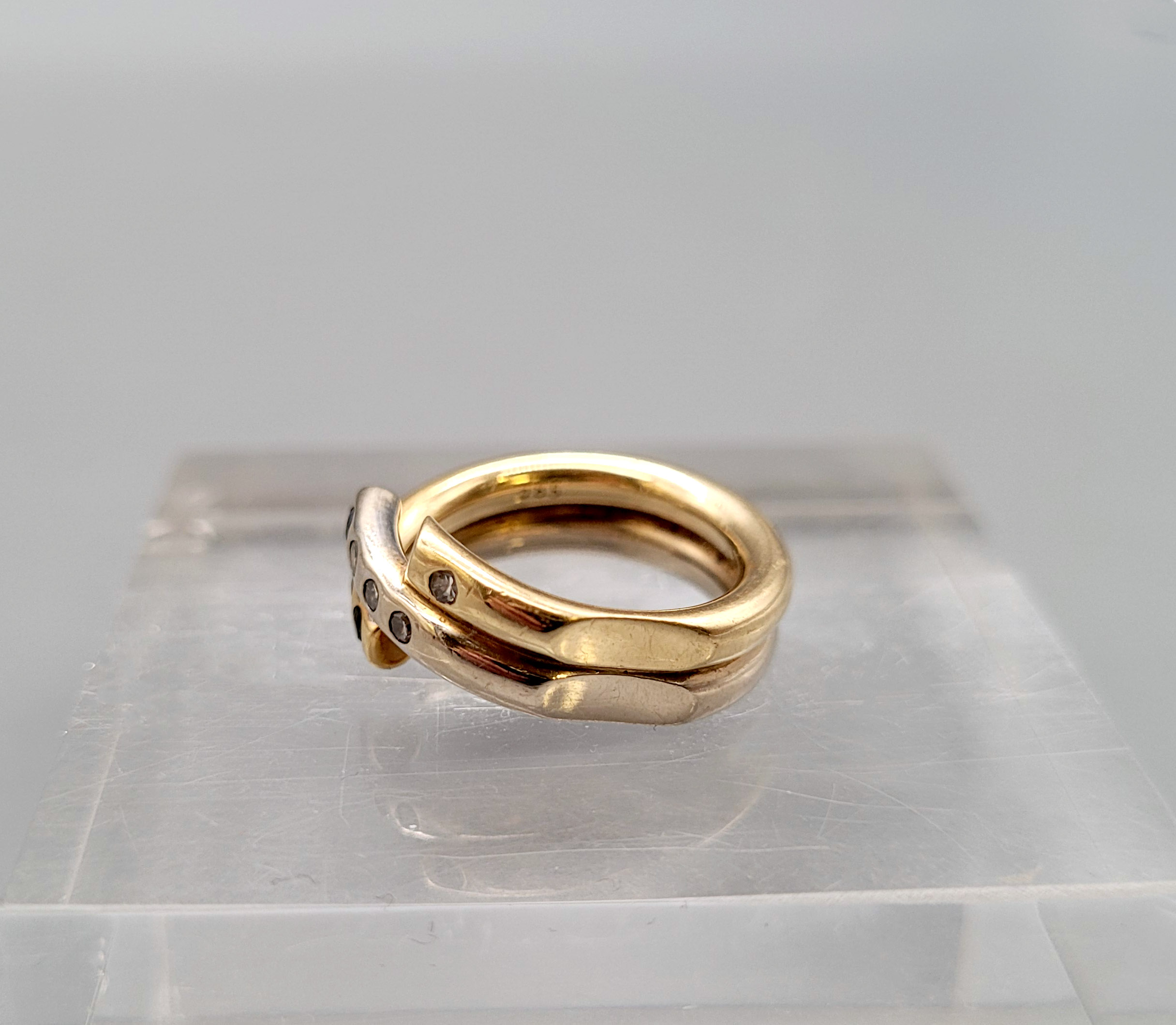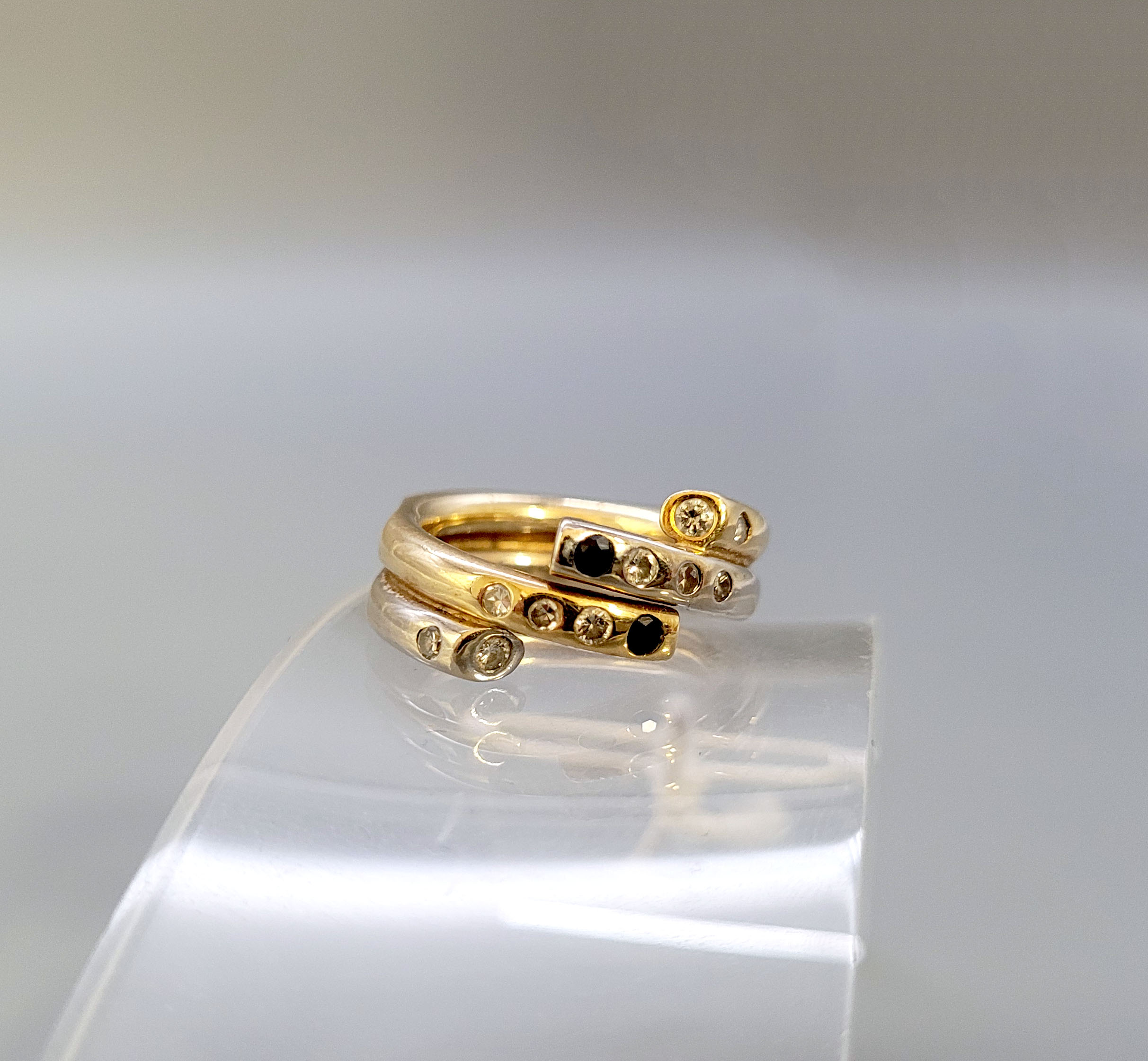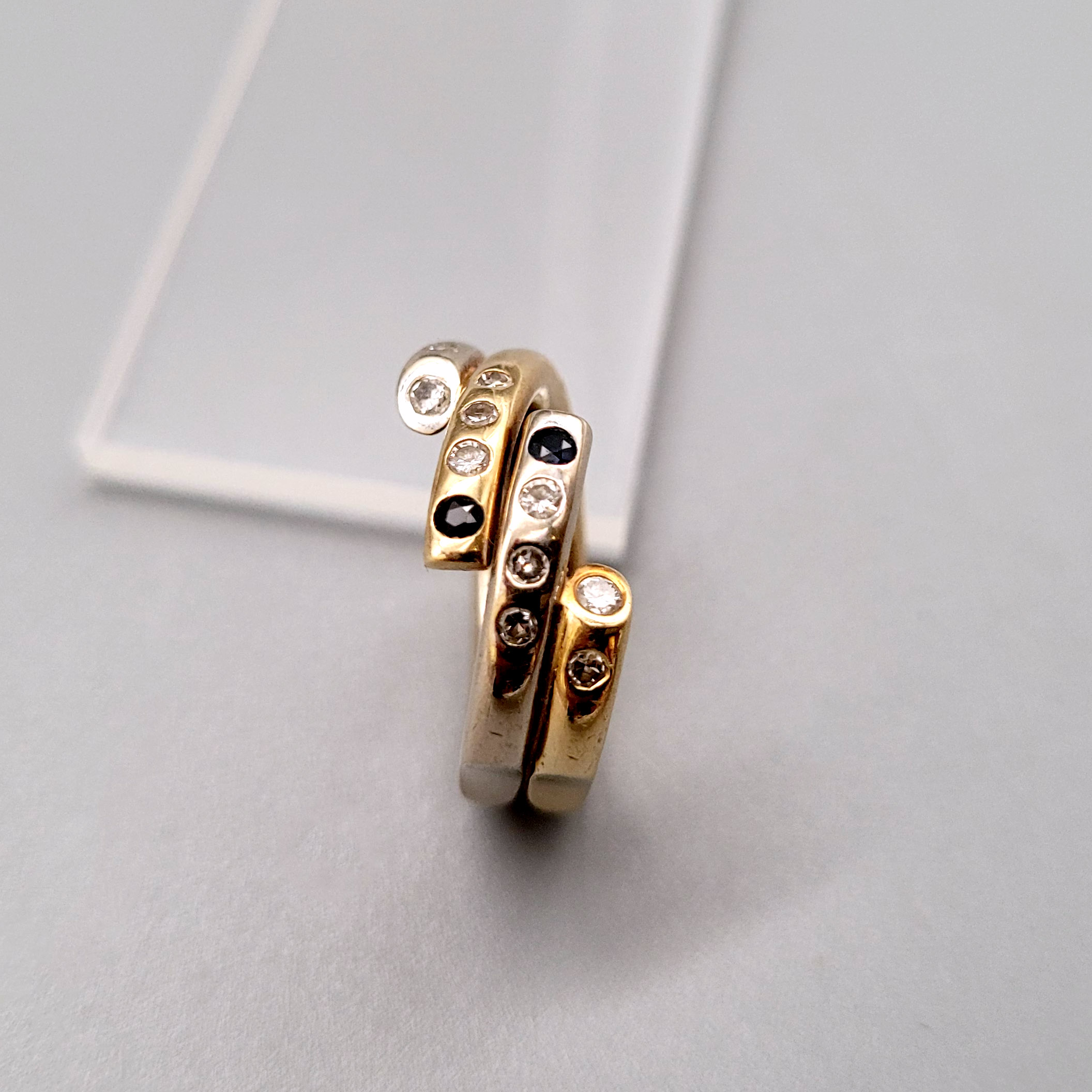 Damenring585er Gelb- und Weißgold, 10 kleine Brillanten (ca. 0,17 ct) und 2 kleine Saphire, Ringgröße ca. 52, Gewicht ca. 10g