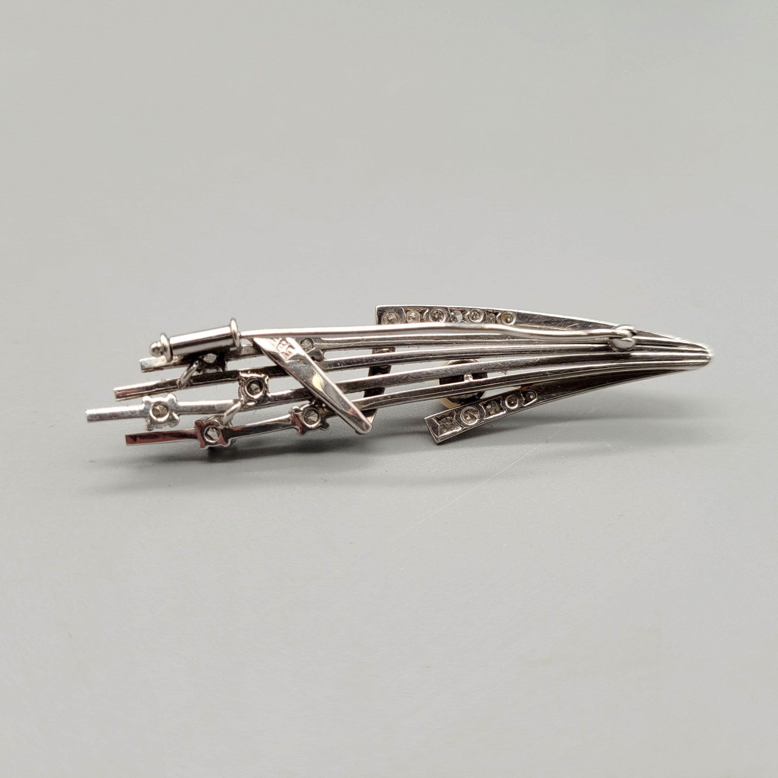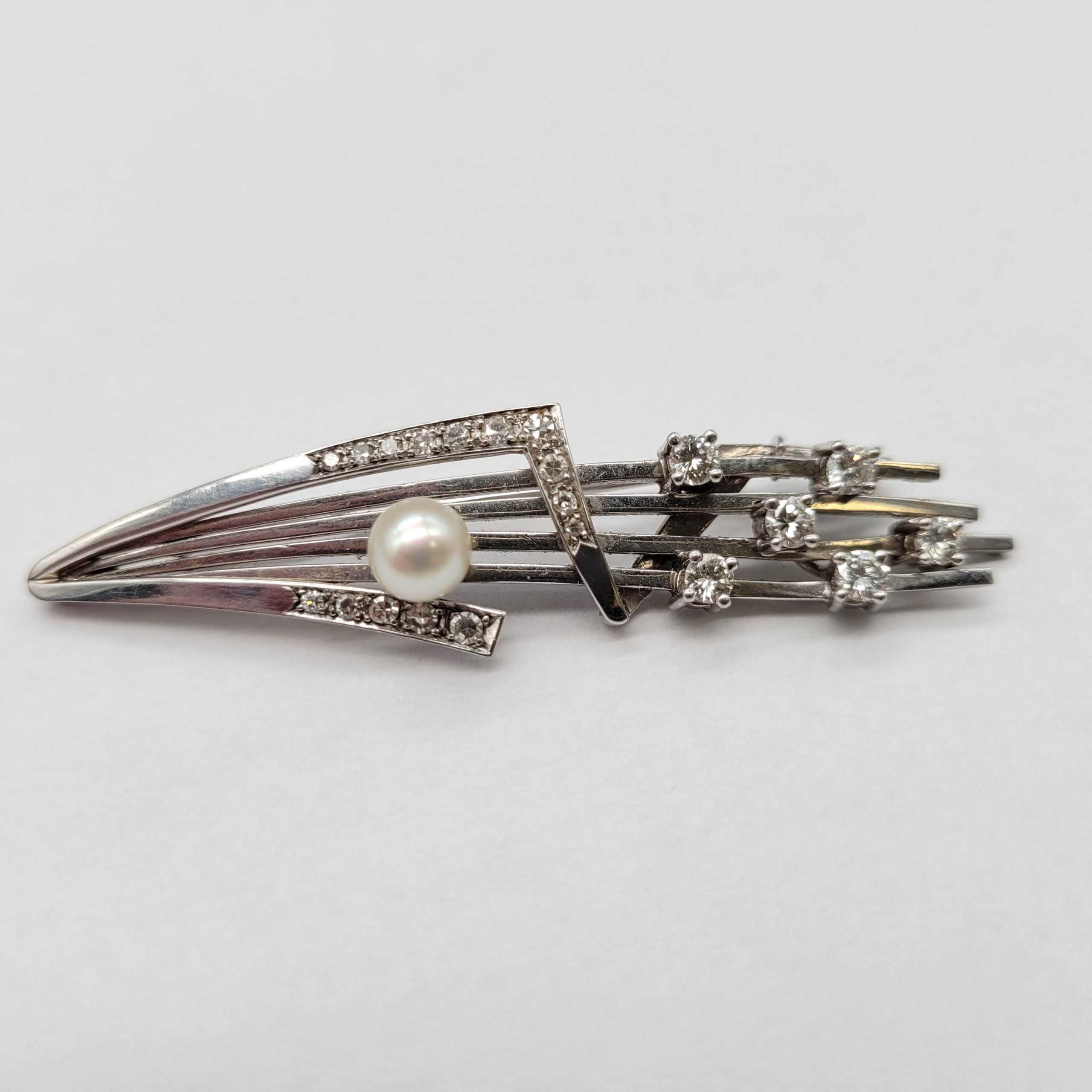 Brosche585er Weißgold, 6 Brillanten (ca. 0,4 ct), Brillantbesatz, Perle, 6 x 1,5 cm, Gewicht 11g