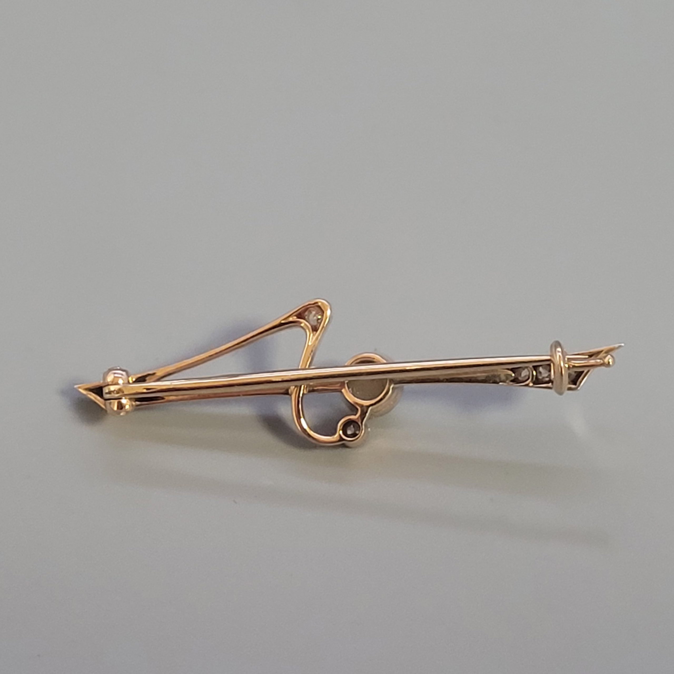 Brosche585er Gelbgold, Zuchtperle, 6 kleine Diamanten, 4 x 1 cm, Gewicht ca. 4,5g