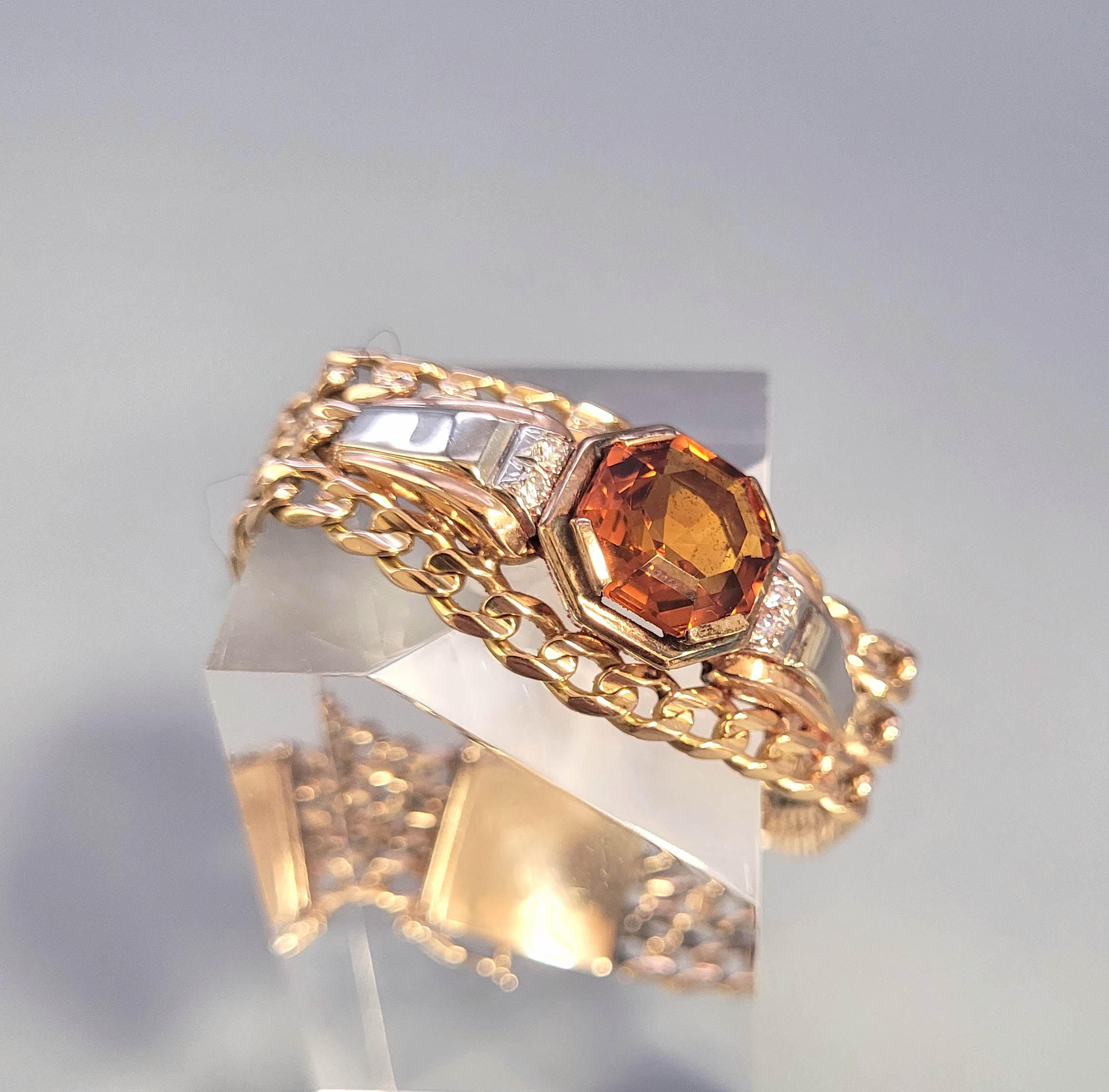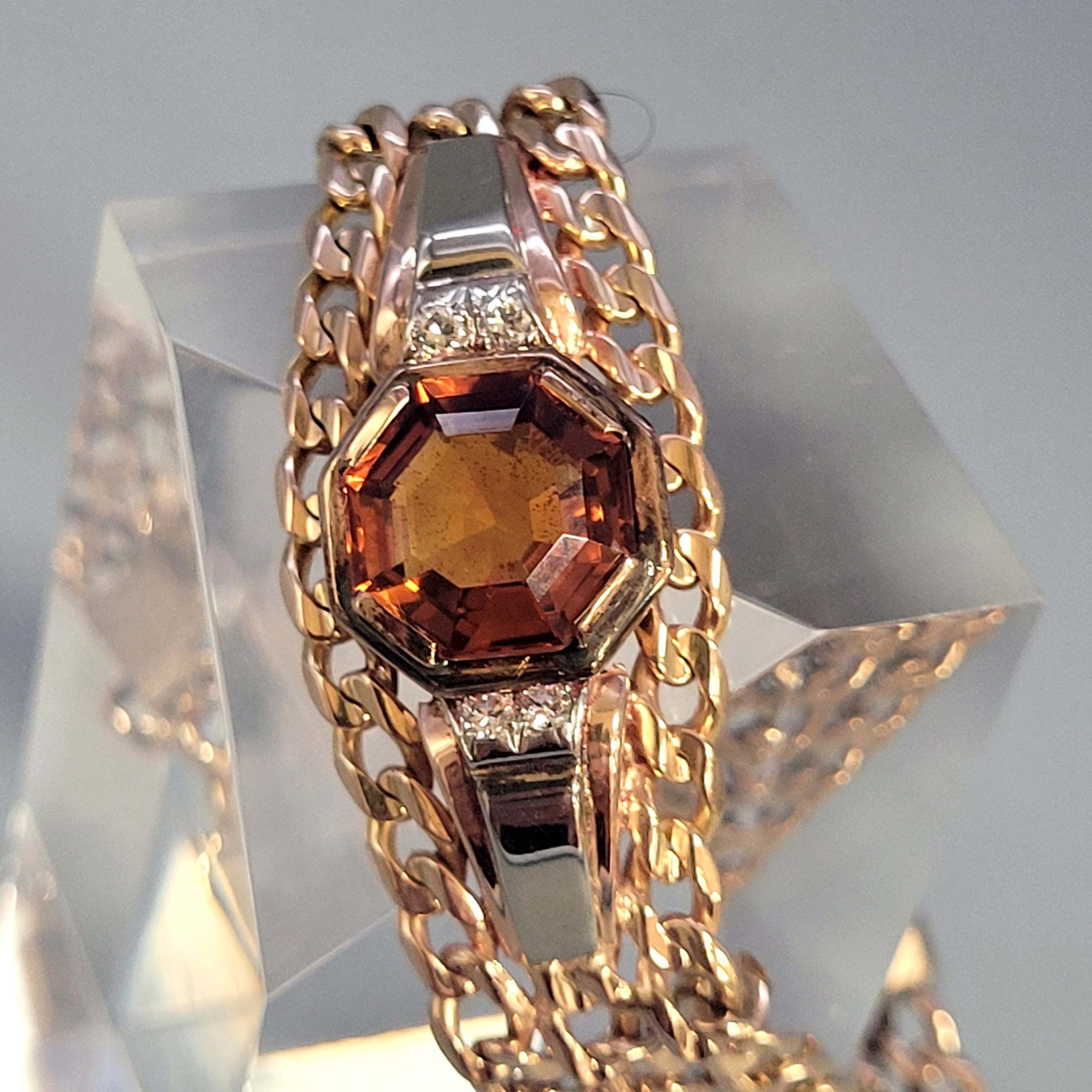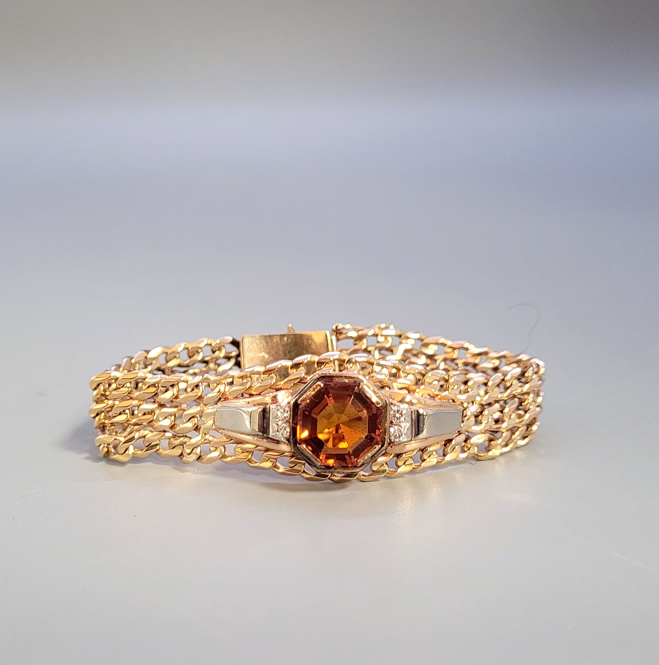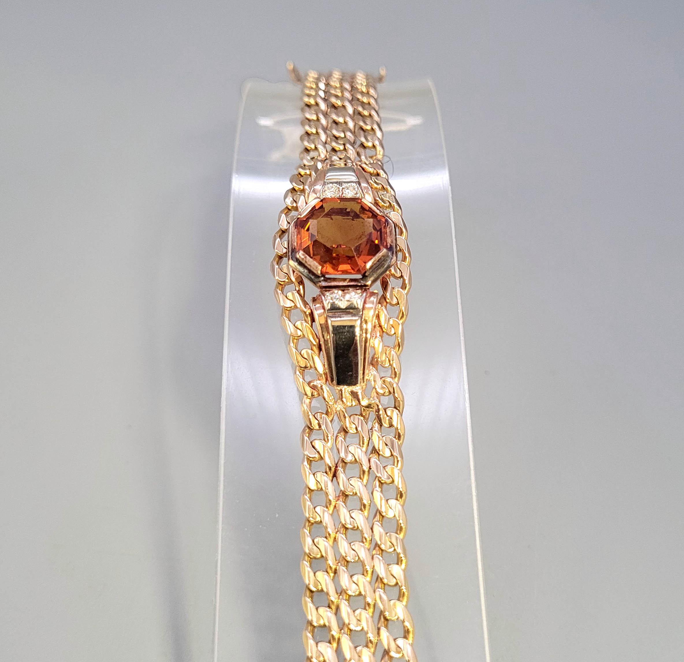 Armband585er Roségold, Citrin, flankiert von 4 Brillanten (ca. 0,10 ct), Kastenschloss mit 2 Sicherheitsbügeln, Länge 17 cm, Gewicht ca. 29g