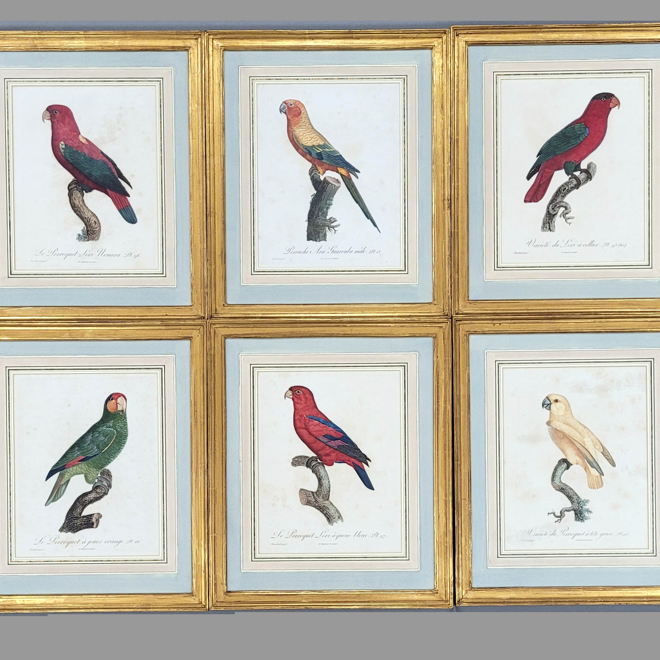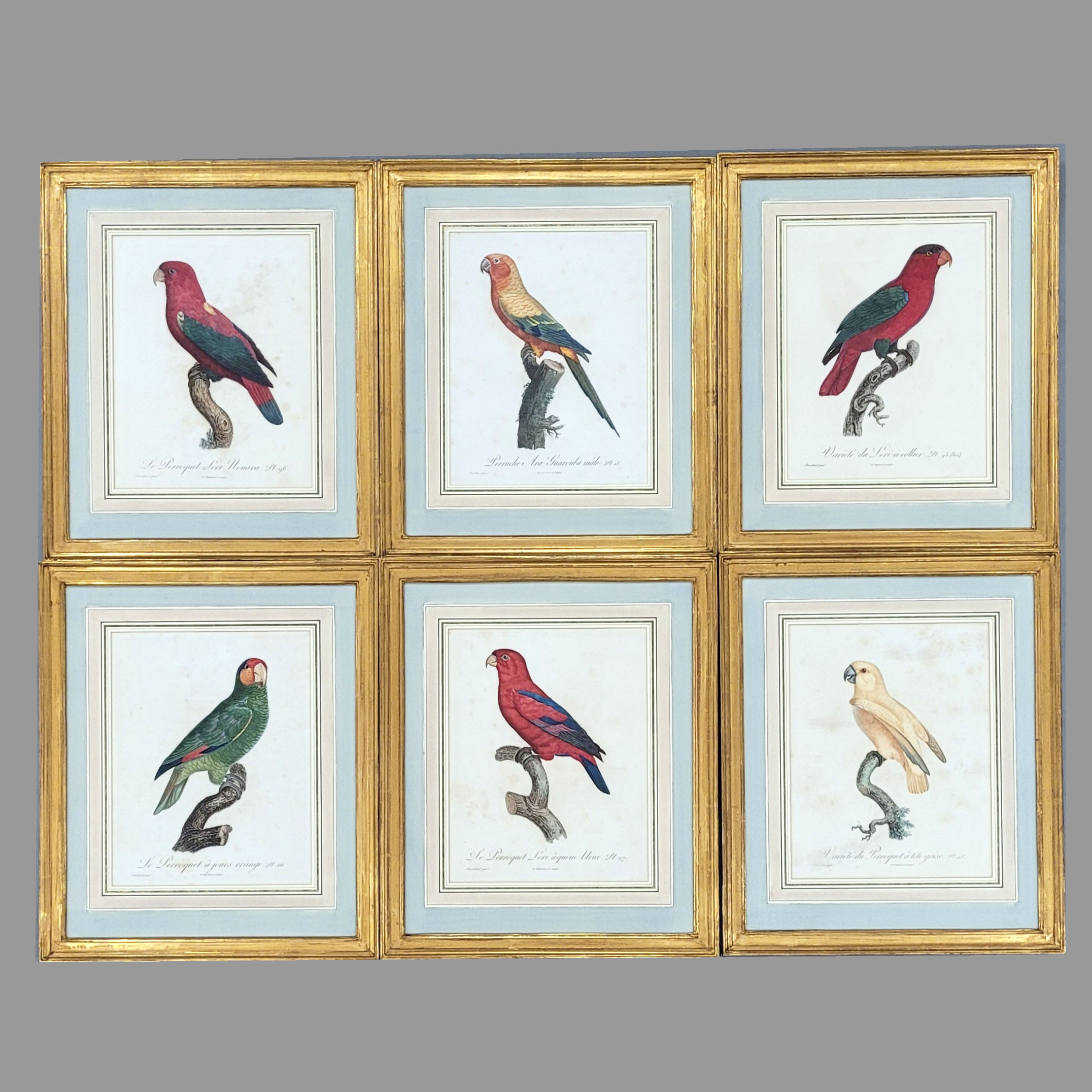BARRABAND, Jacques (1767-1809): Sechs Blatt Papageien-VögelFarbradierungen, aus: LEVAILLANT, Francois, Histoire naturelle des perroquets Vol. I, Paris 1801, 33,5 x 26,5 cm, gerahmt unter Glas und Passepartout
