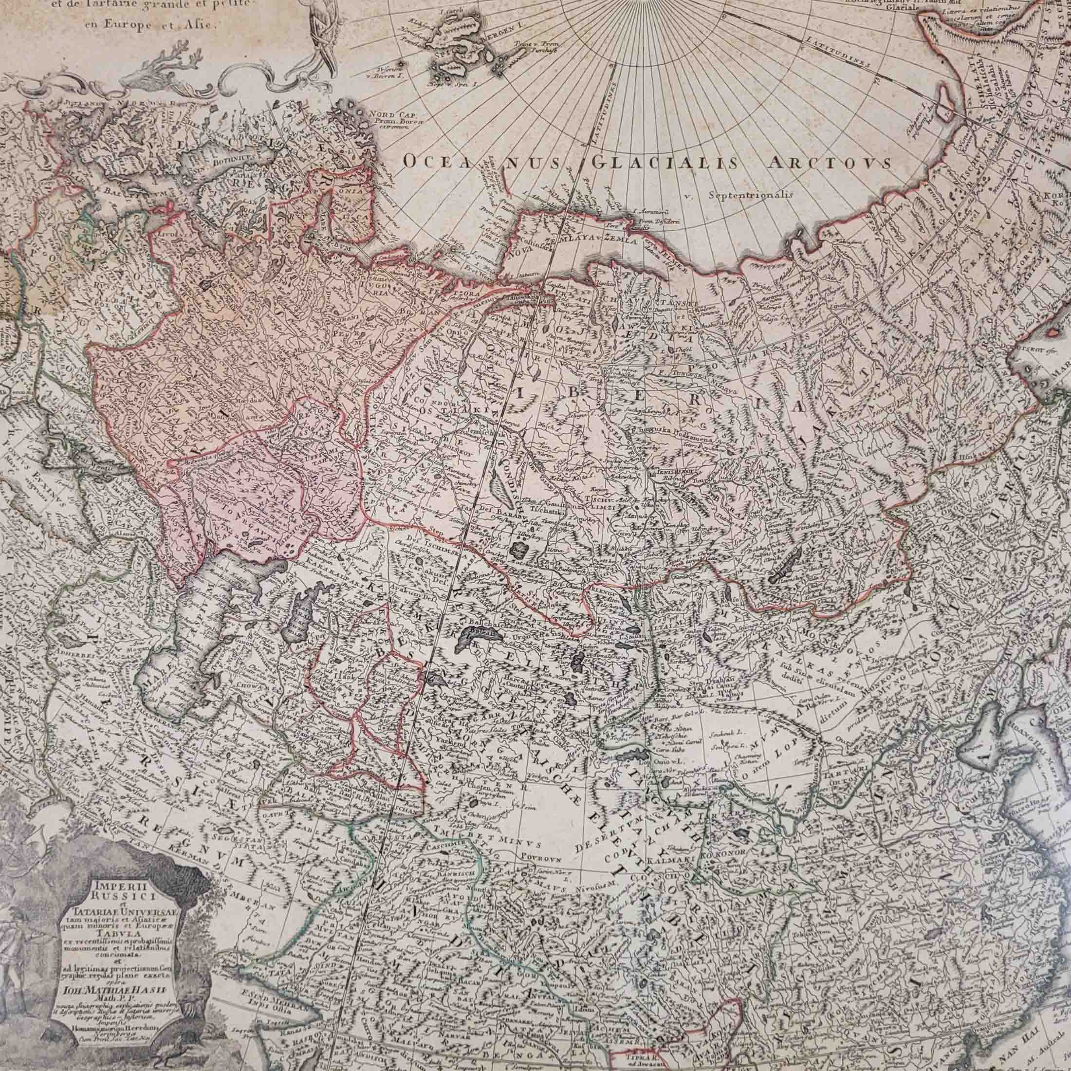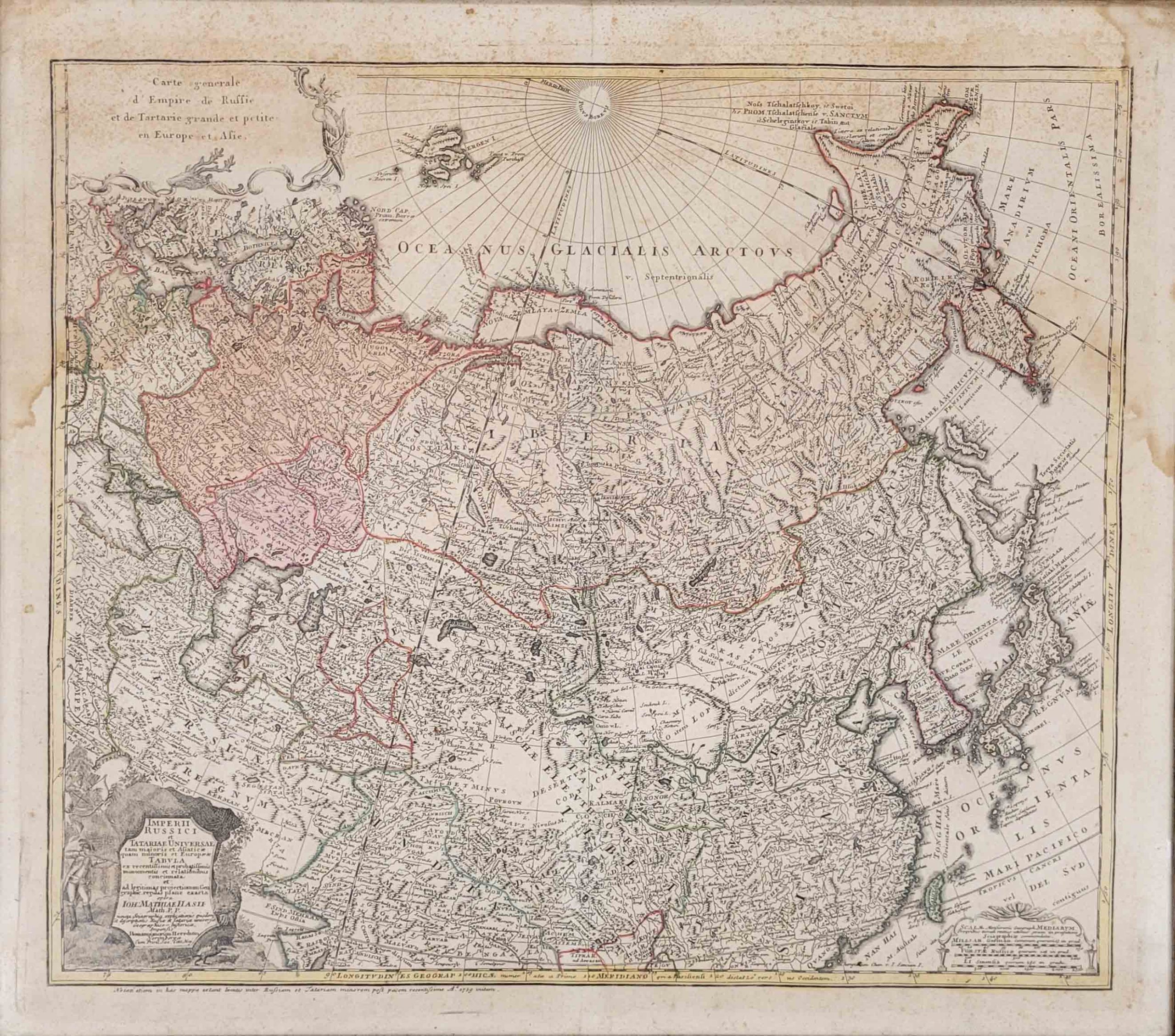 HASE, Johann Matthias (1684-1742): Imperii RussiciKupferstich, Homann Erben, altkoloriert, 53 x 59,5 cm, gerahmt unter Glas (stärker stockfleckig)