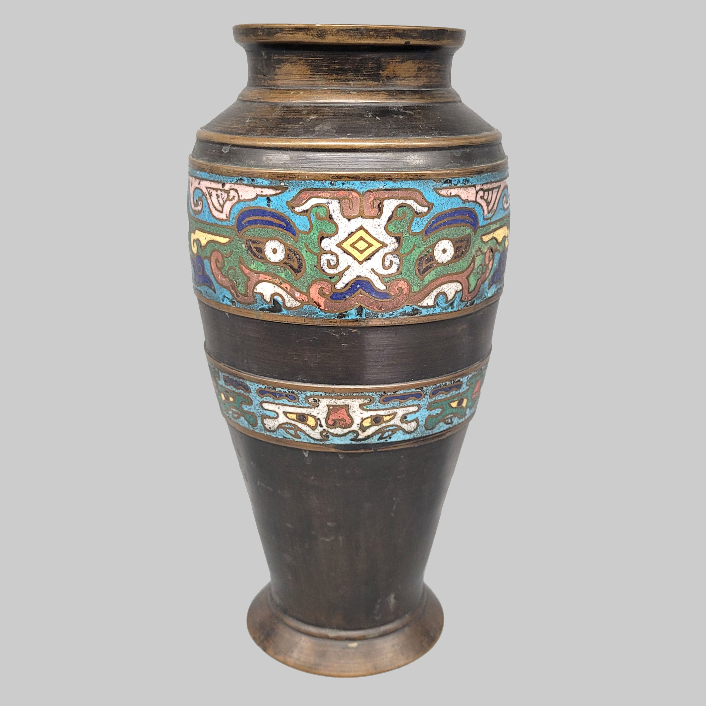 VaseBronze, zweizoniger Dekor in Cloisonné-Technik, bodenseitig gemarkt, Japan, Meiji-Zeit, um 1900, Höhe 25 cm