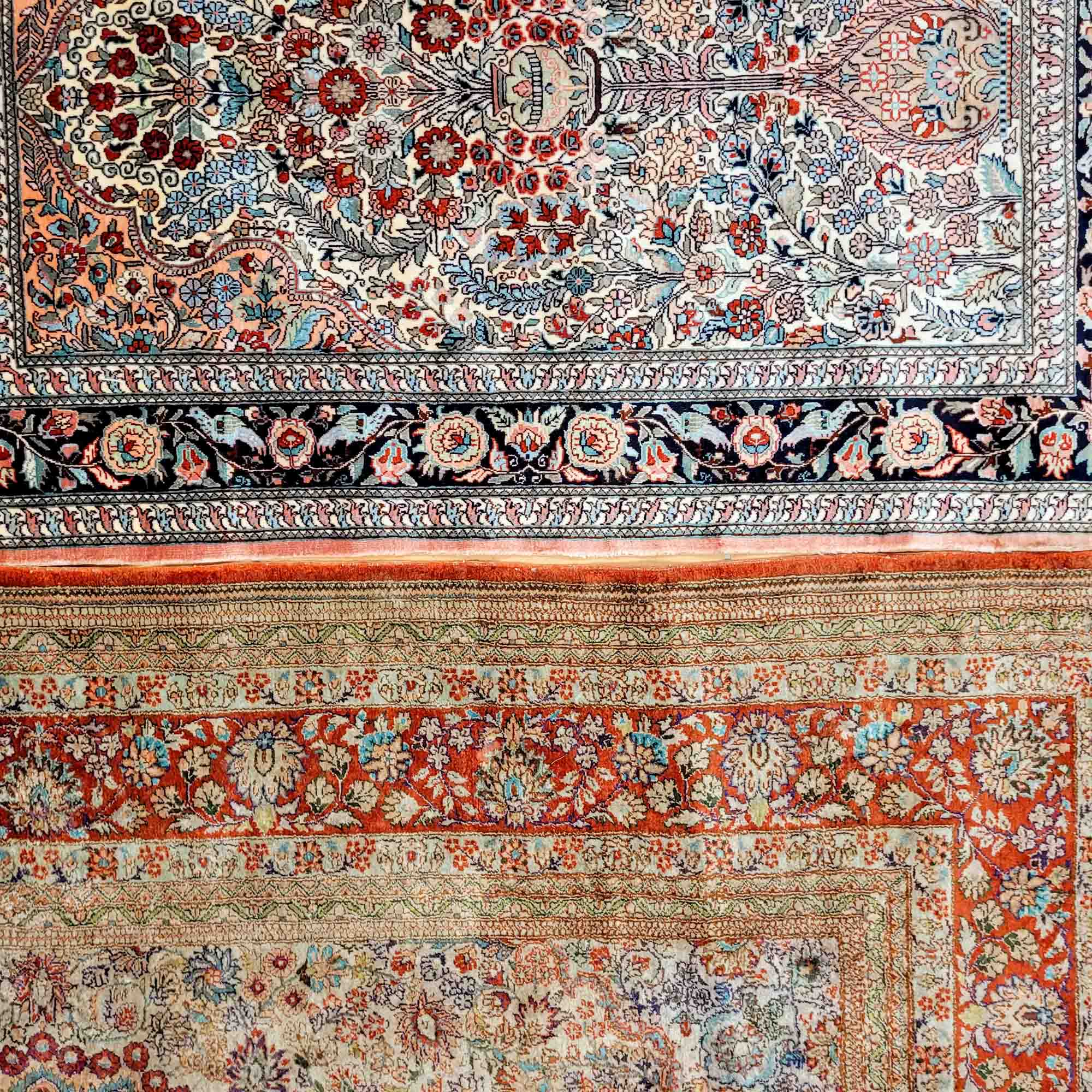 Kayseri, Seide, 153 x 93 cm, Zustand Cund Teppich China, Seide, 92 x 62 cm, Zustand B