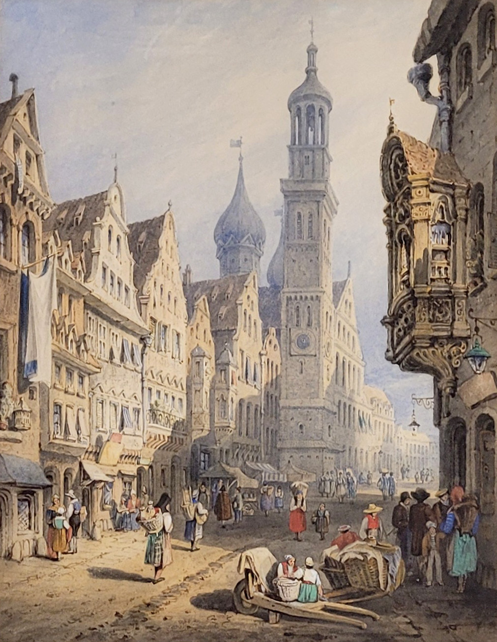 PROUT, Samuel (1783-1852): AugsburgAquarell, Deckweiß auf Papier, 47 x 36 cm, gerahmt unter Glas und Passepartout
