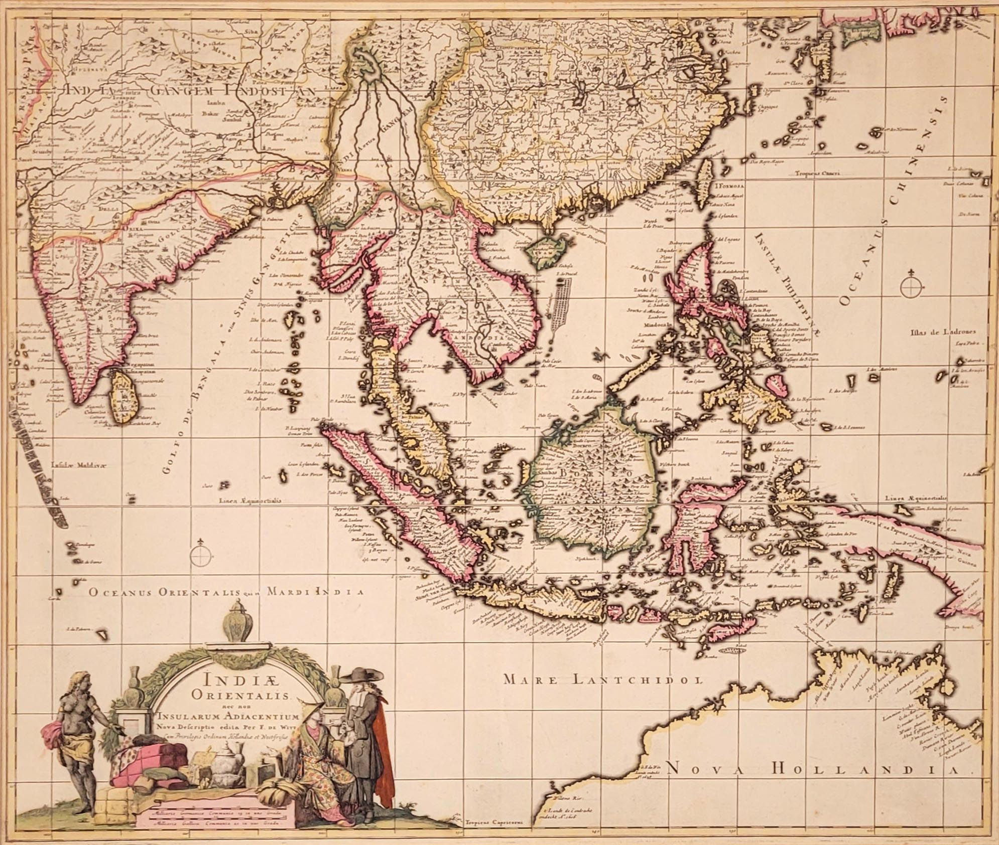 WIT, Frederik de (1629-1706): Indiae orientalisKupferstich, koloriert, 51 x 61,5 cm, gerahmt unter Glas und Passepartout
