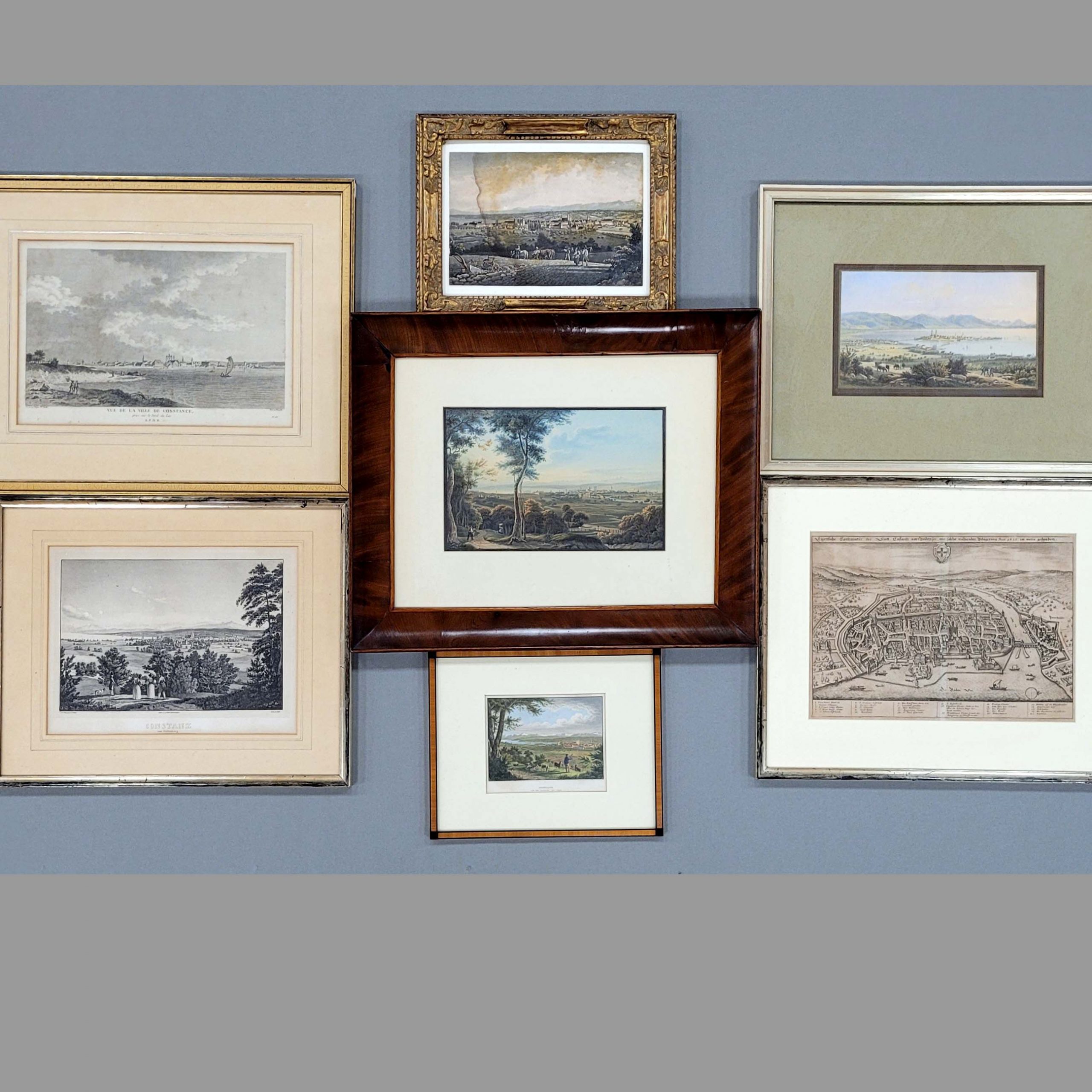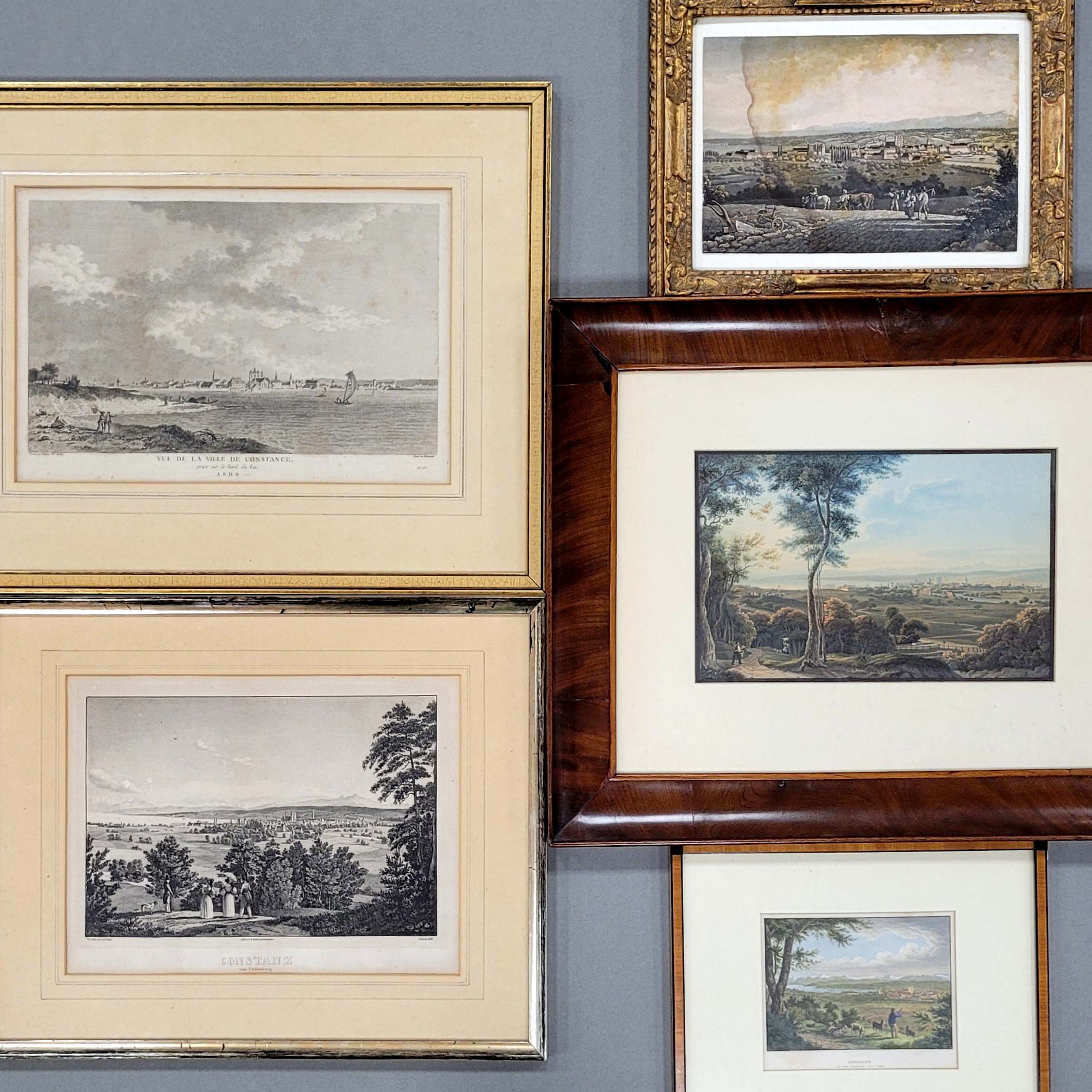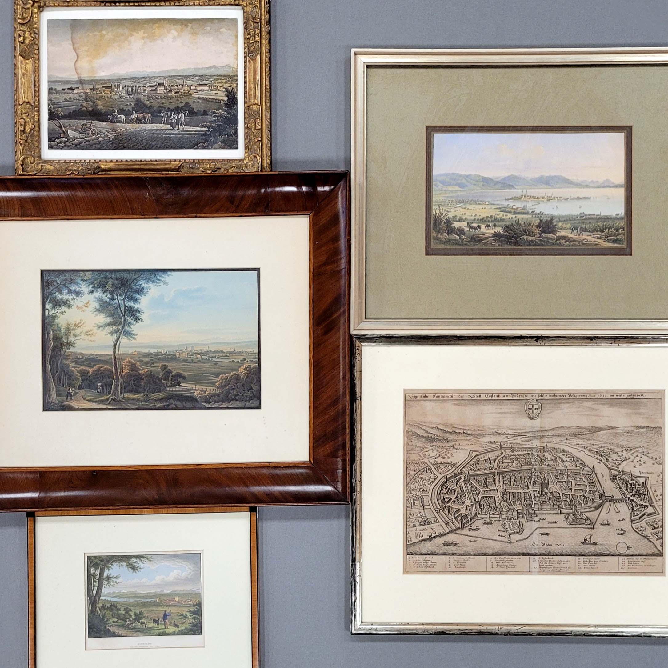 Konvolut Ansichten von KonstanzArbeiten des 17.-19. Jahrhunderts, verschiedene Techniken und Zustände, bis zu 25 x 35 cm, alle gerahmt unter Glas und Passepartout