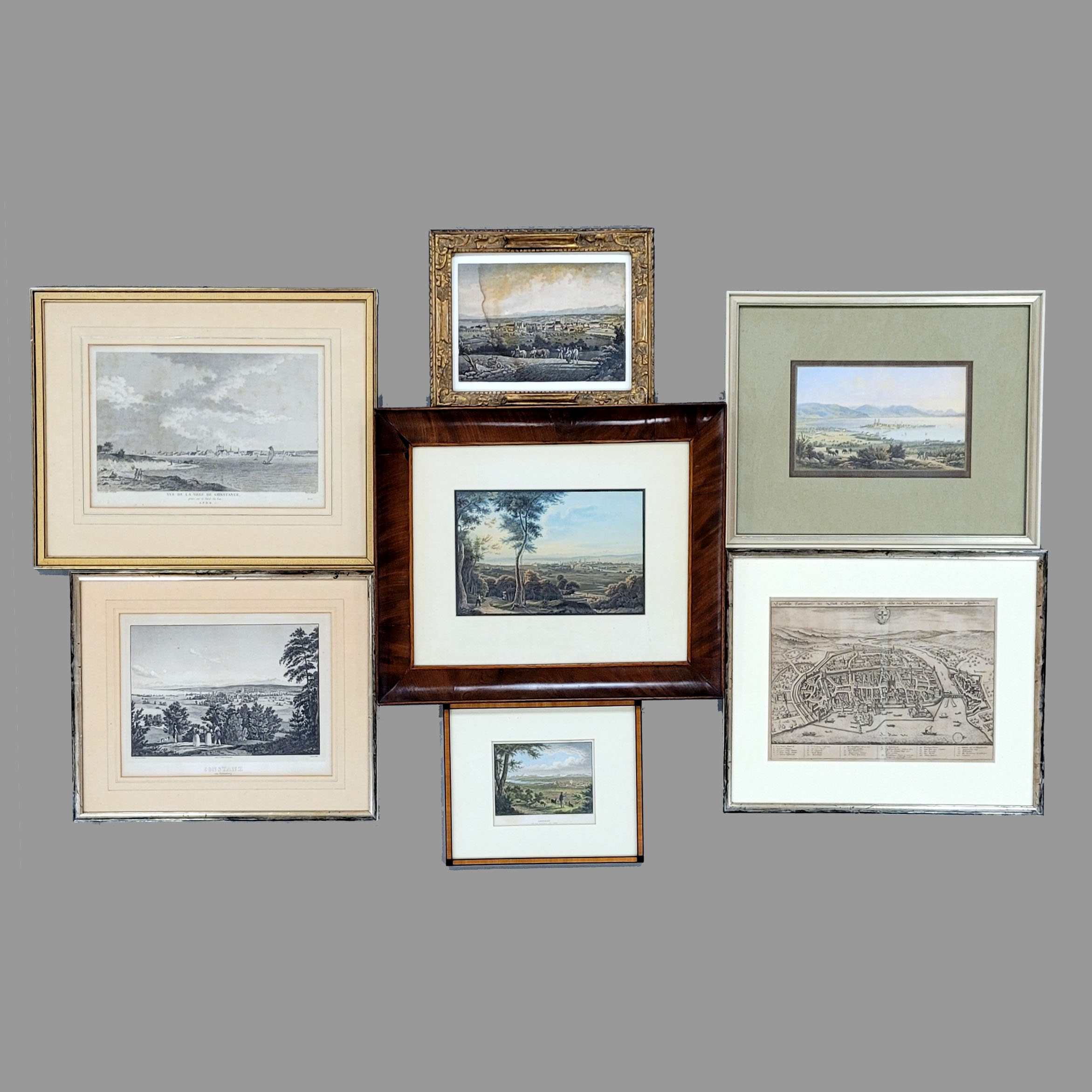 Arbeiten des 17.-19. Jahrhunderts, verschiedene Techniken und Zustände, bis zu 25 x 35 cm, alle gerahmt unter Glas und Passepartout