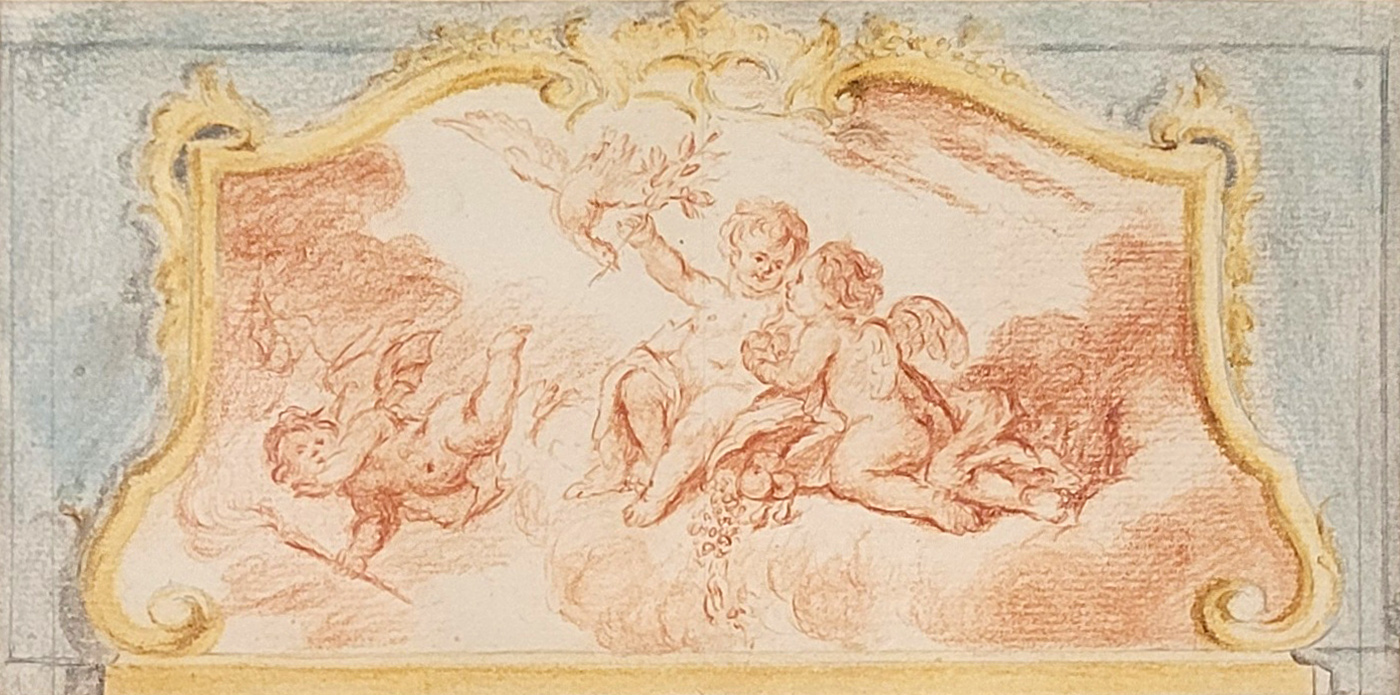 NIEDERLÄNDISCHER MEISTER (18. Jh.): Entwurf einer Wanddekoration mit drei Putten als Jahreszeitenallegorie